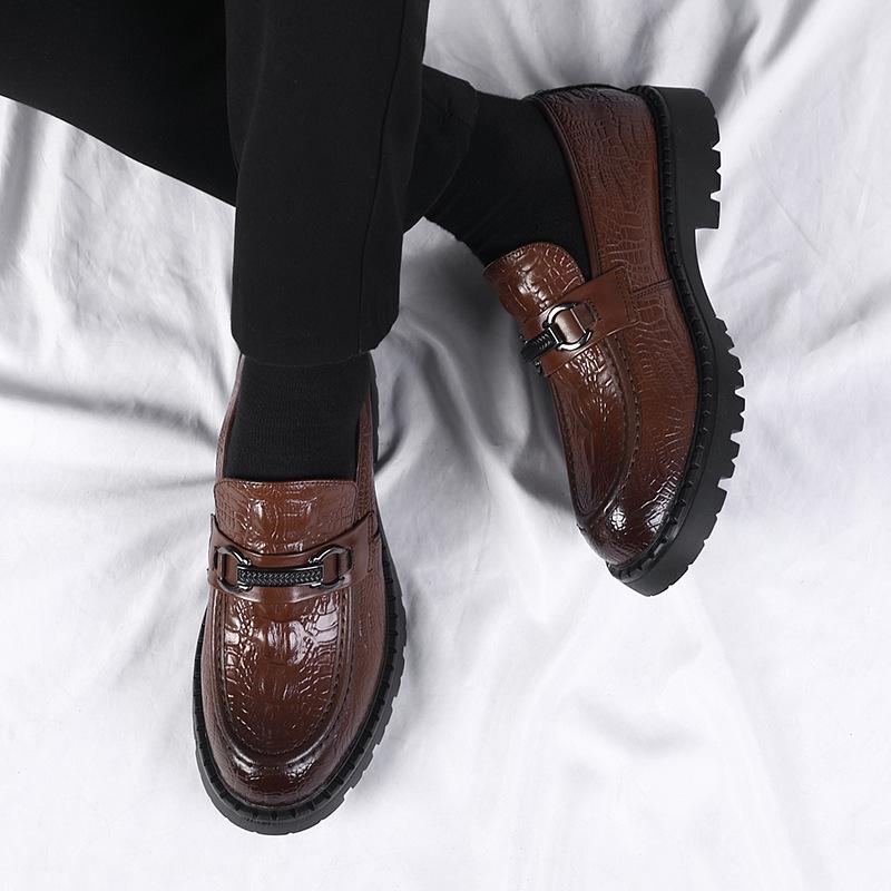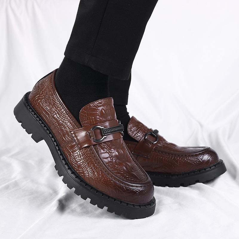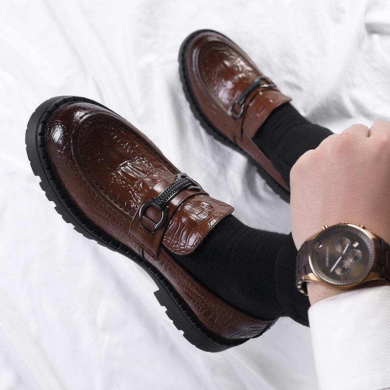 Zapatos Casuales de Cuero Moda Hombre Negro Versátil Moderno Británico Primavera Brogues de Cuero Genuino Zapatos Casuales Negocios
