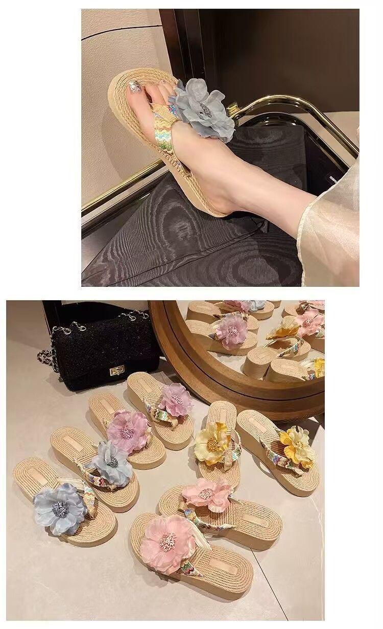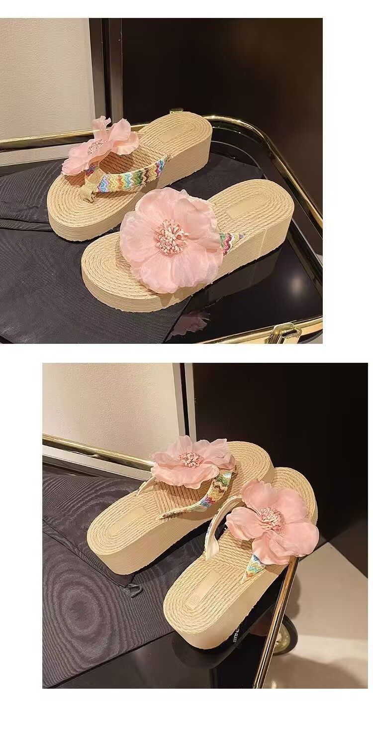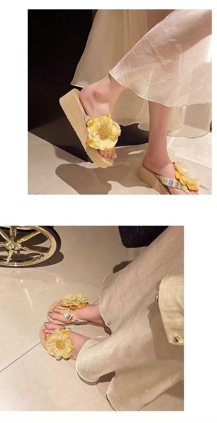 Chanclas de playa antideslizantes de suela gruesa para mujer verano 2025 nuevo estilo de hada para combinar con vestidos chanclas florales de moda