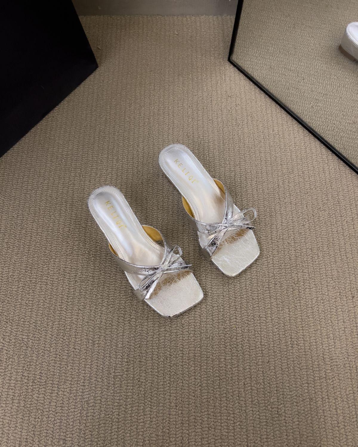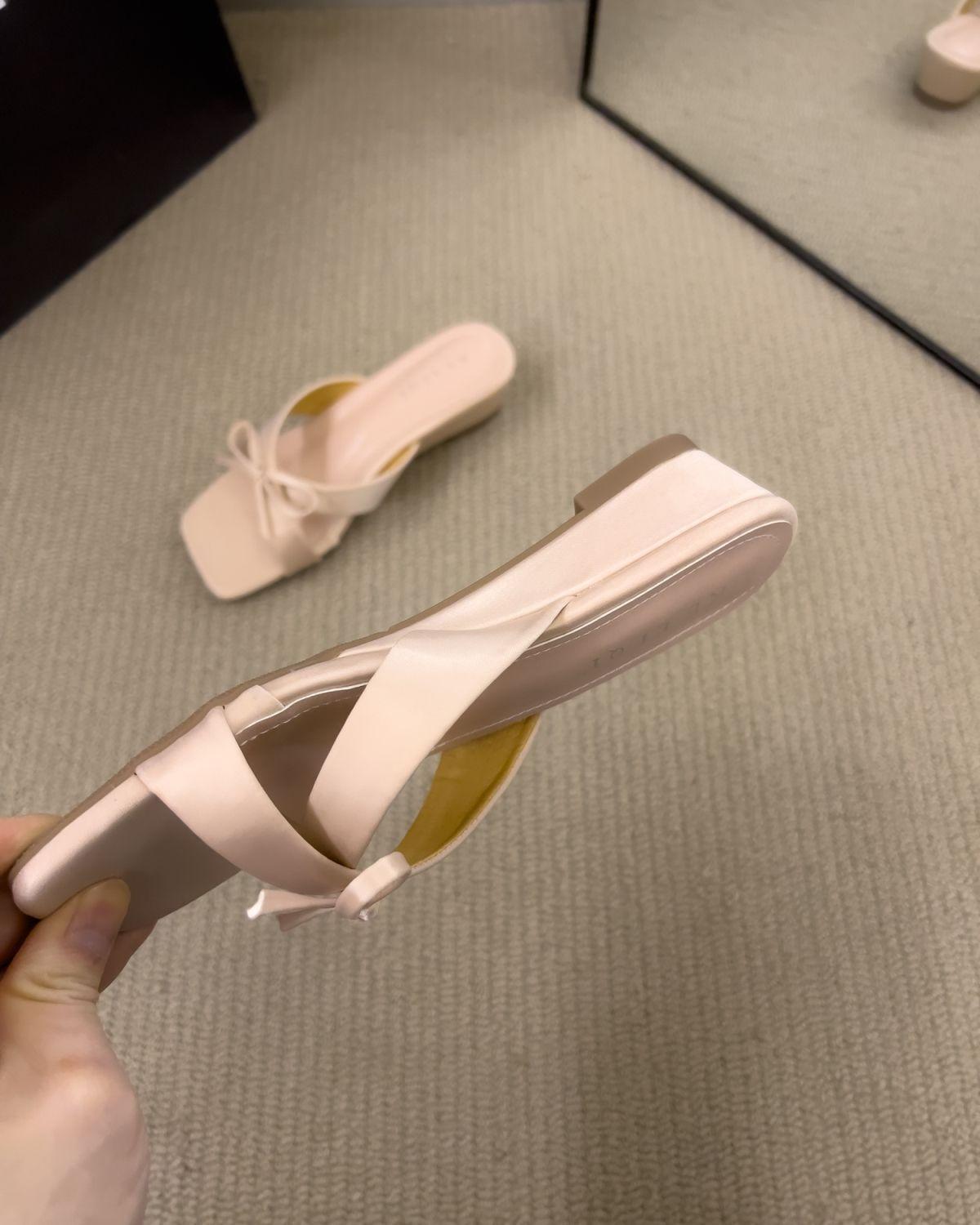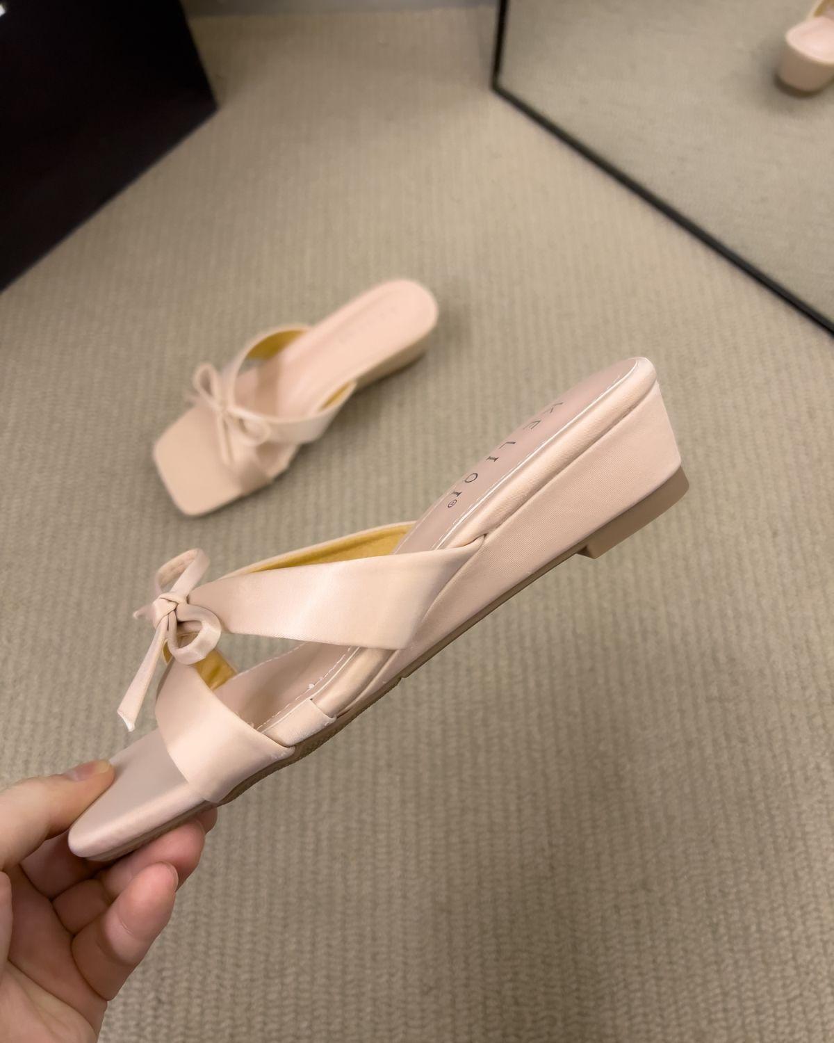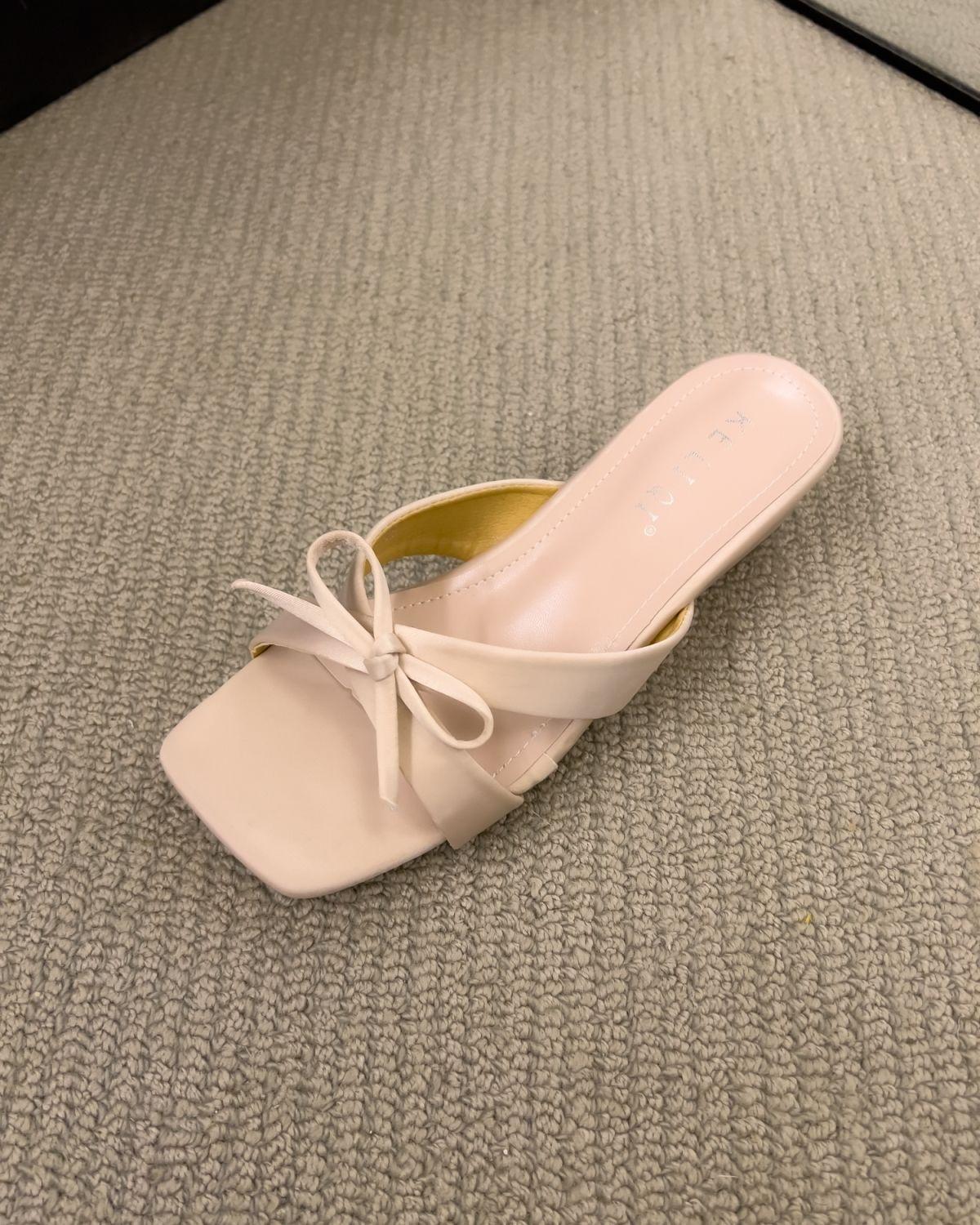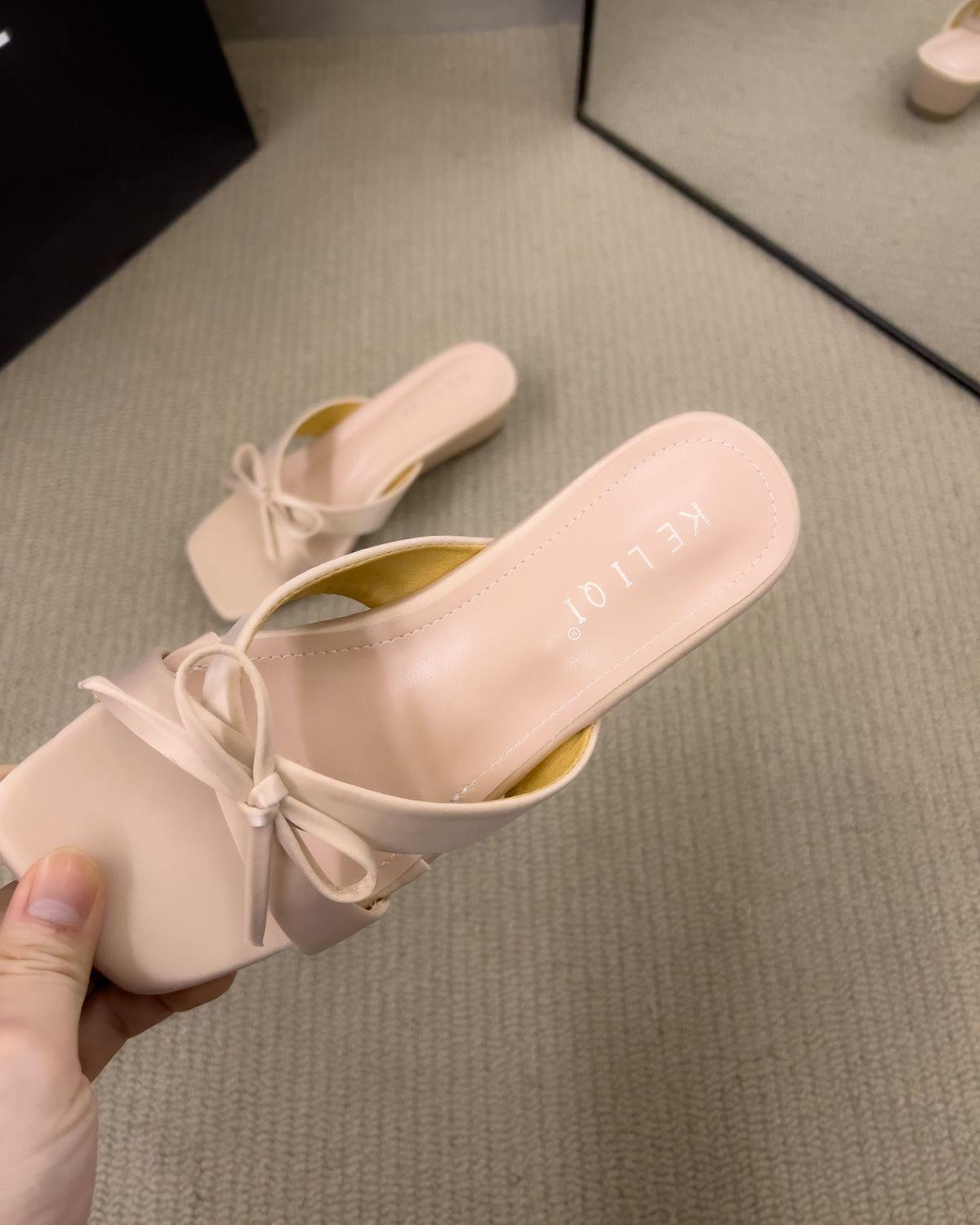 Sandalias de punta cuadrada estilo hada con falda para mujer para exteriores 2025 nuevo verano lazo cruz una tira pantuflas mujer