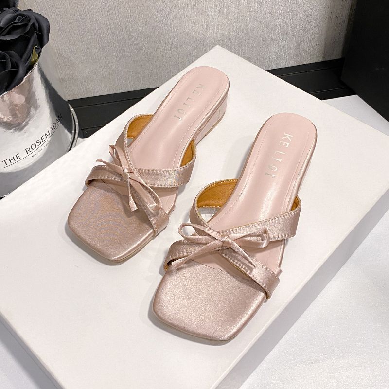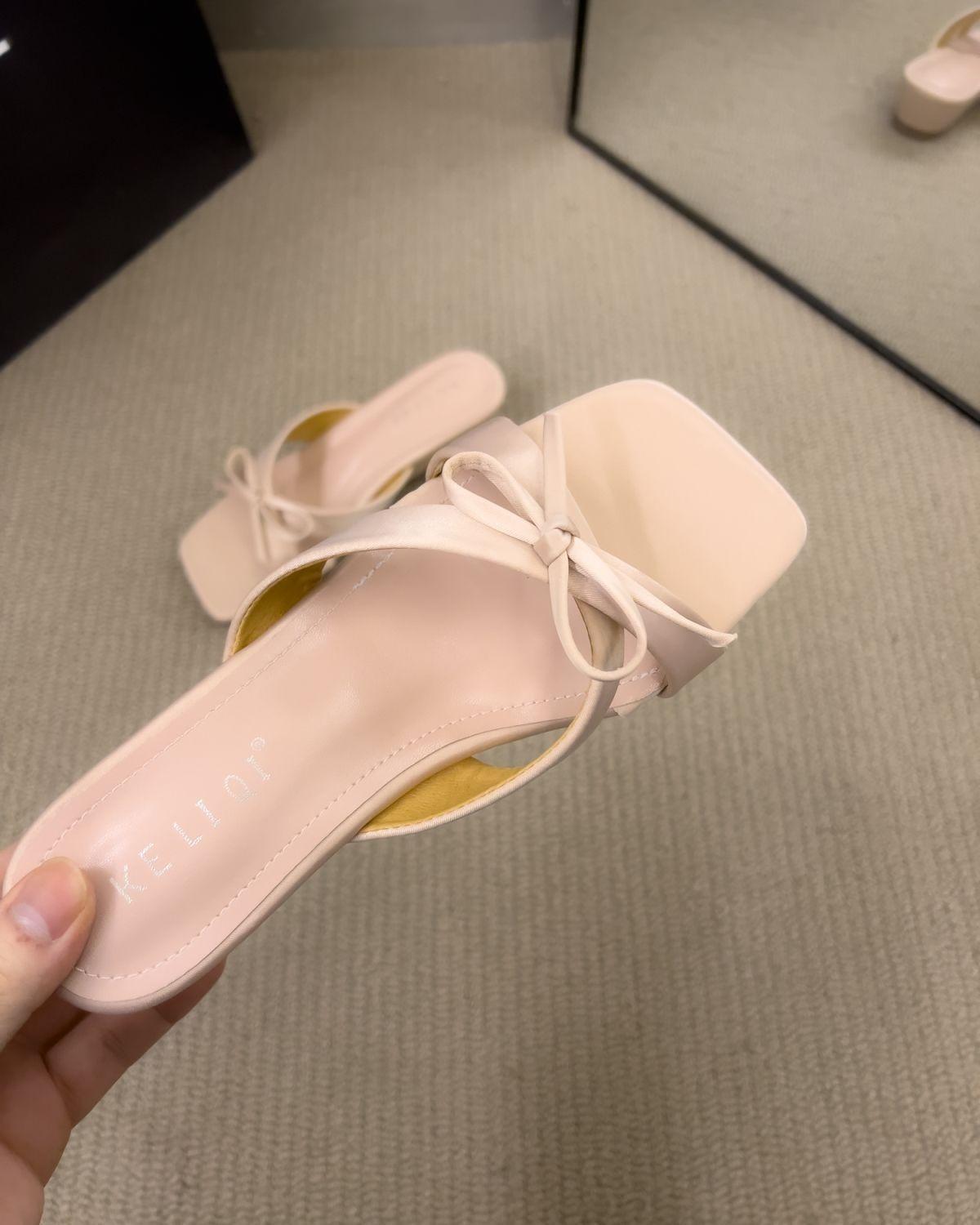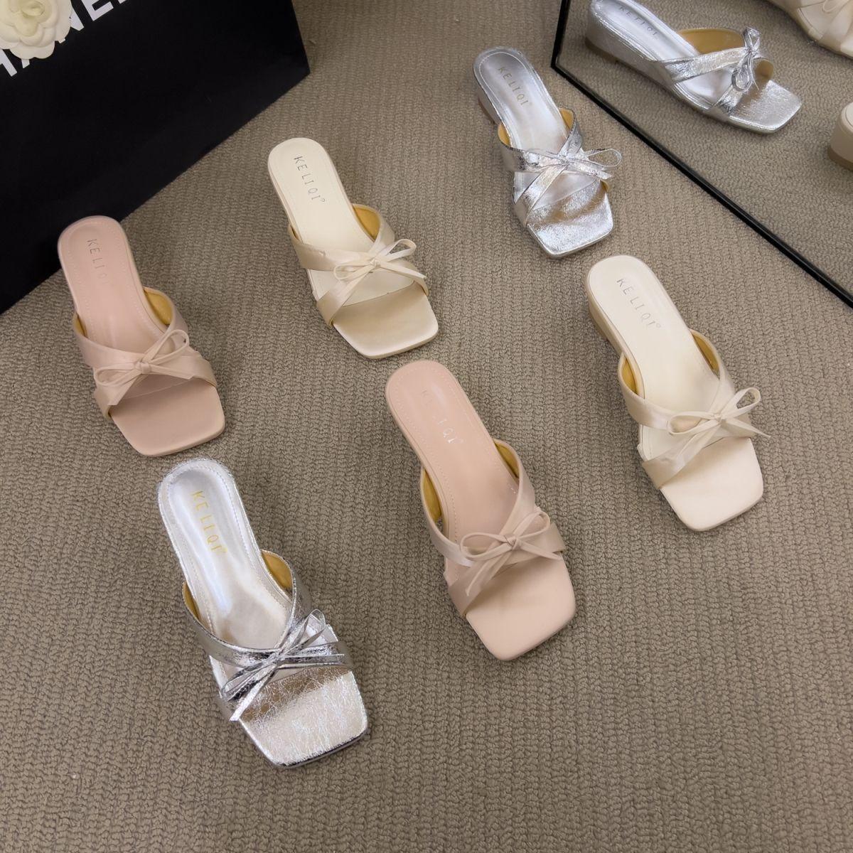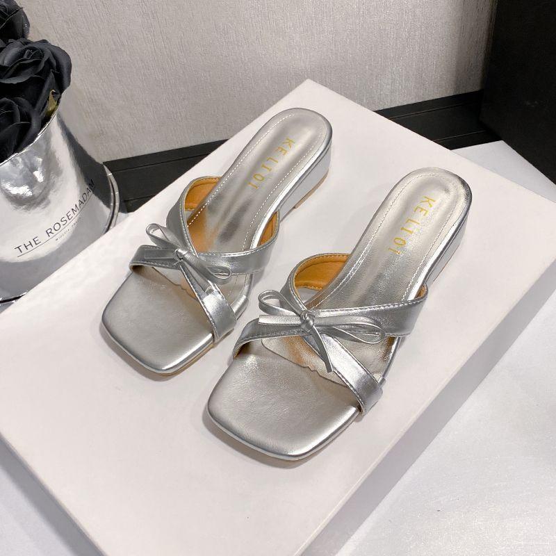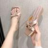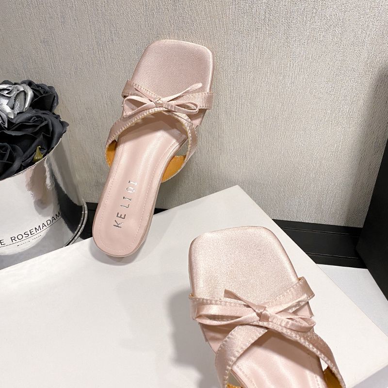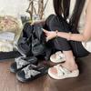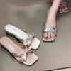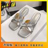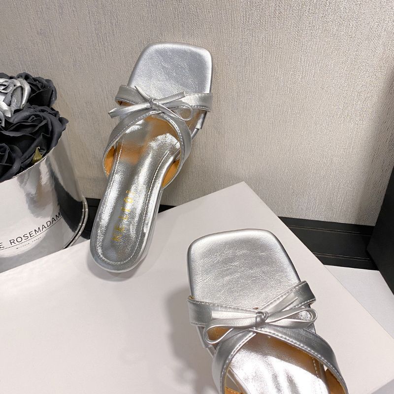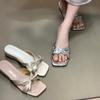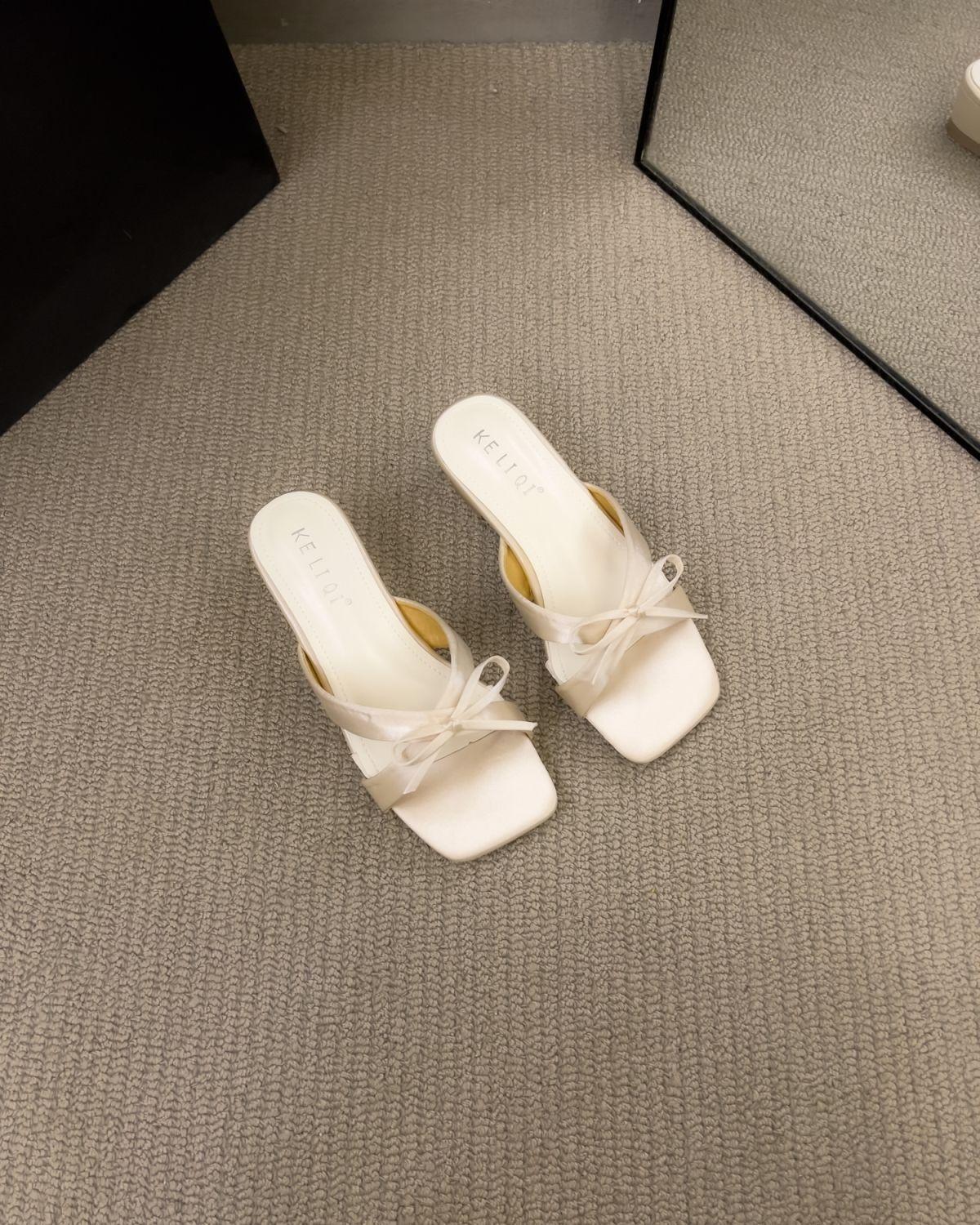 Sandalias de punta cuadrada estilo hada con falda para mujer para exteriores 2025 nuevo verano lazo cruz una tira pantuflas mujer