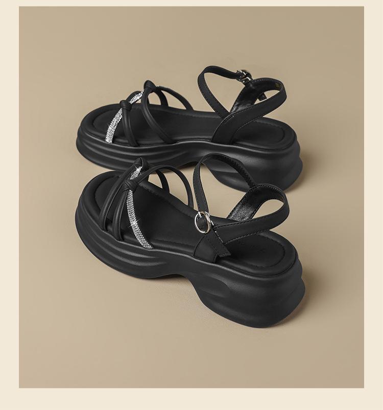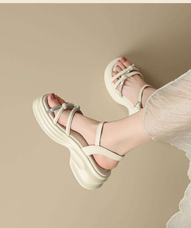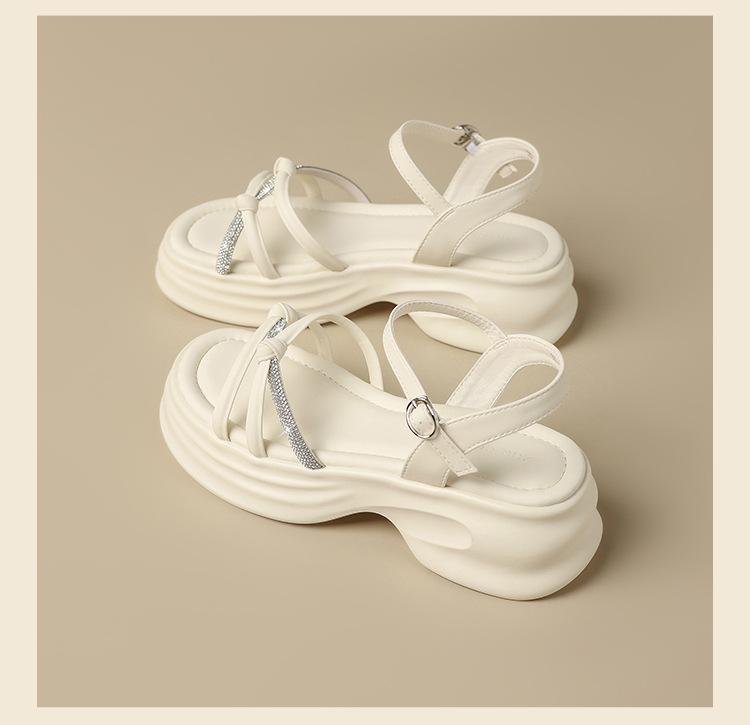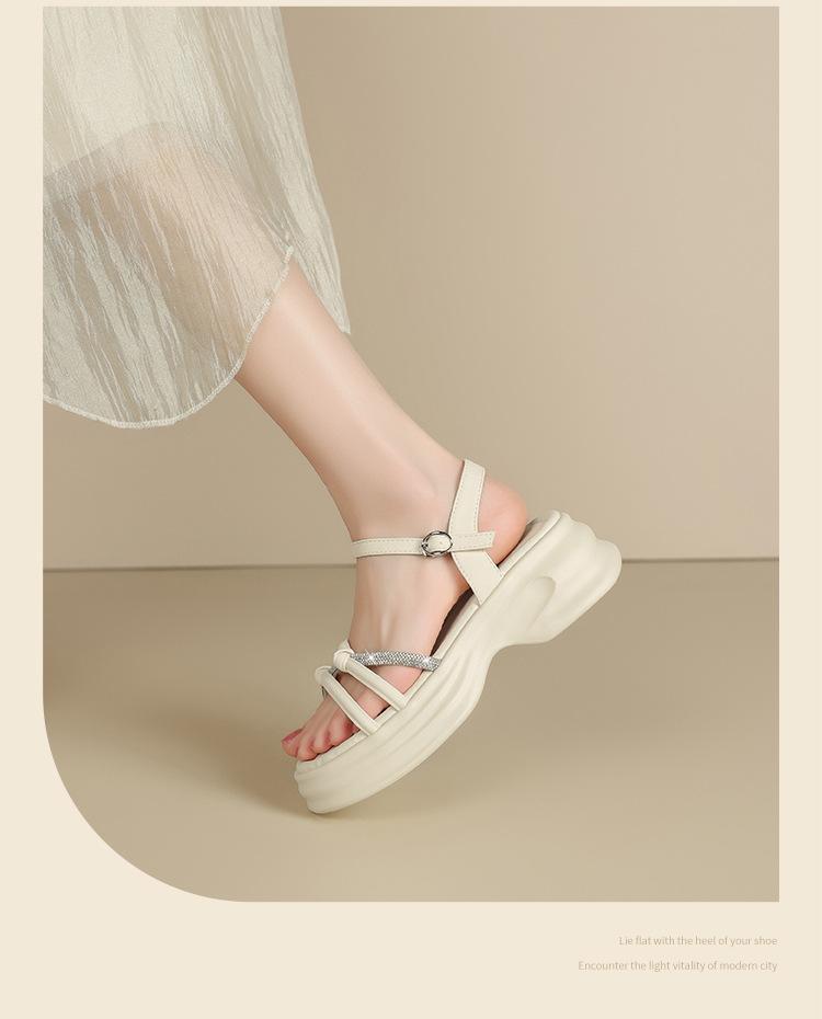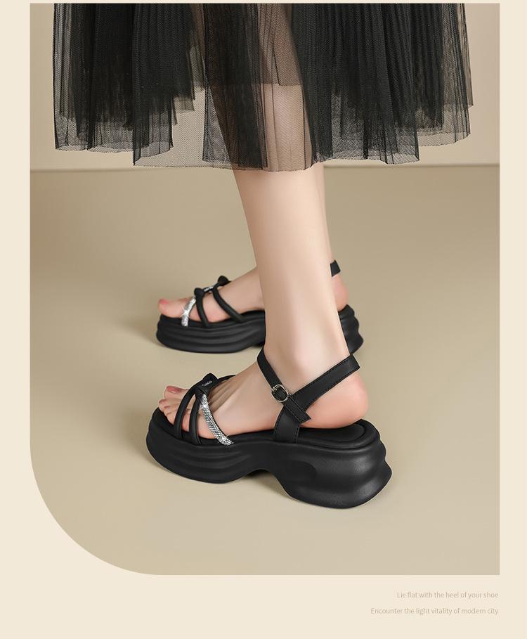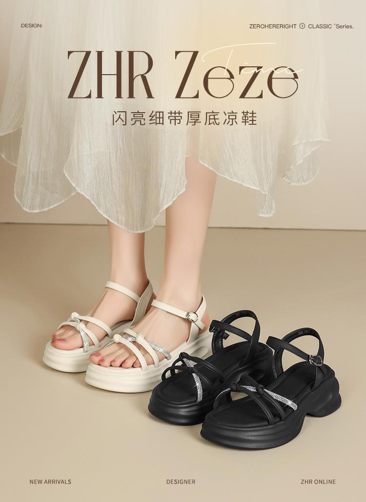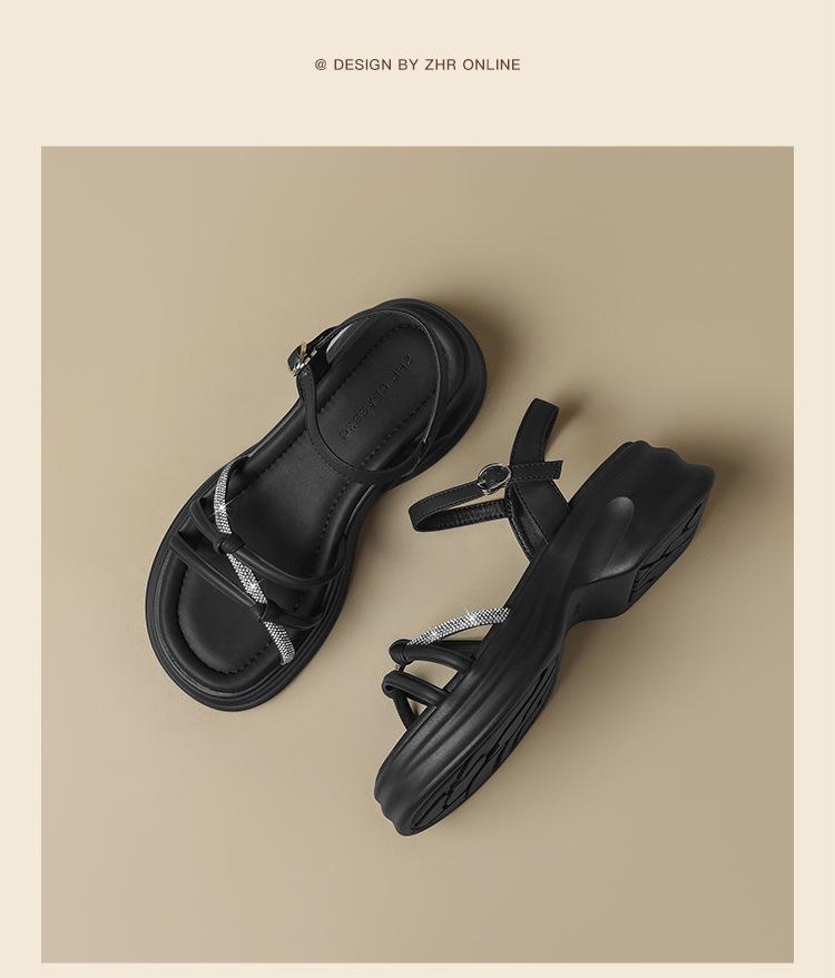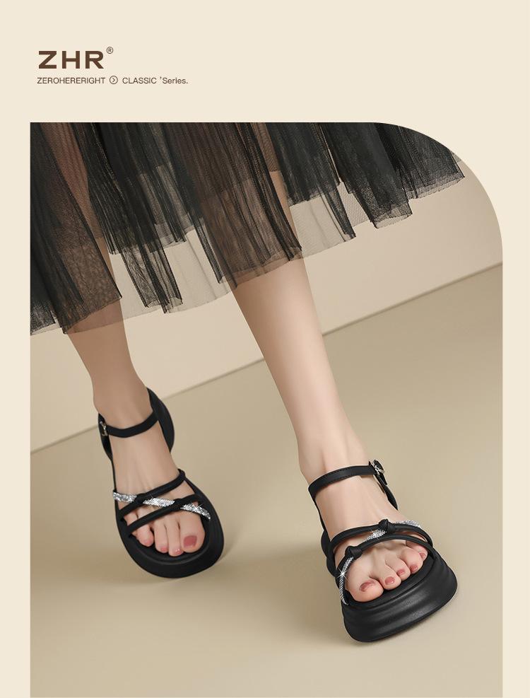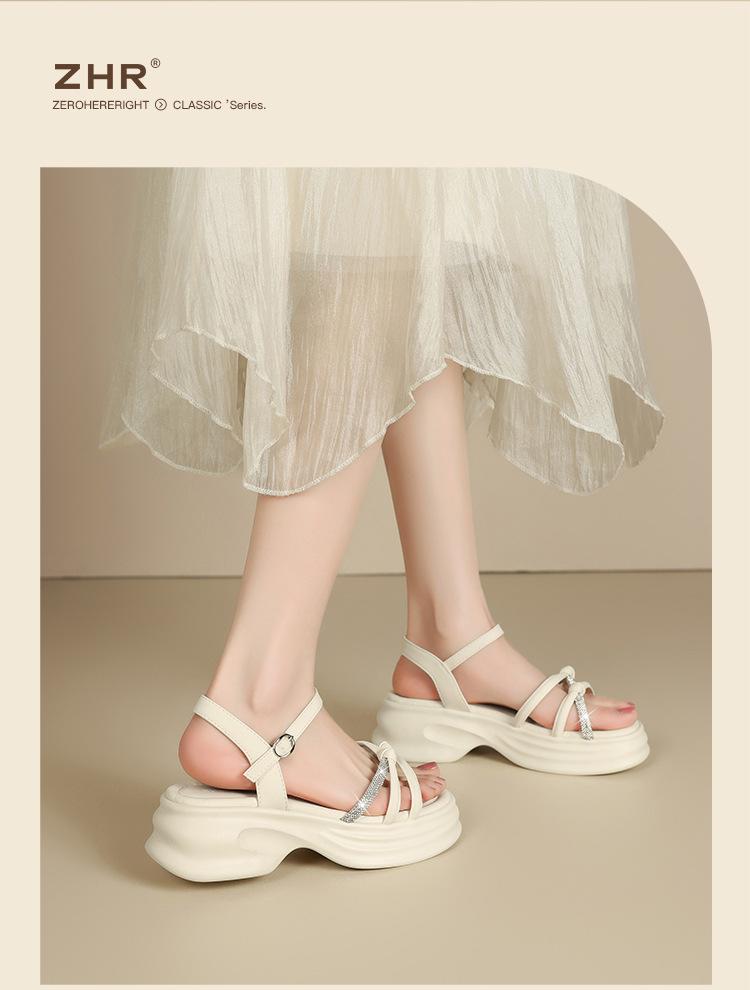 Sandalias de plataforma ZHR 2025 verano nuevo plataforma suela suave altura creciente vestido moda pedrería versátil antideslizante romano
