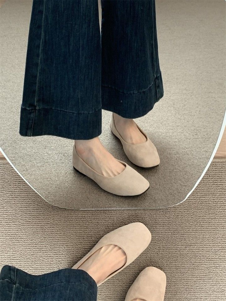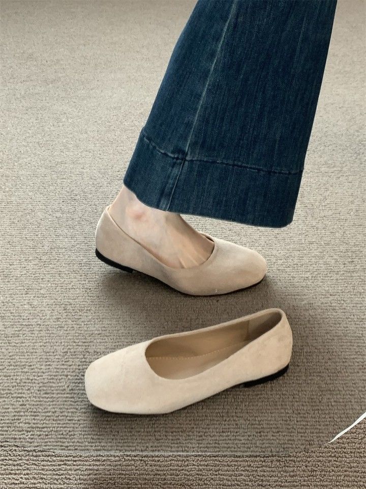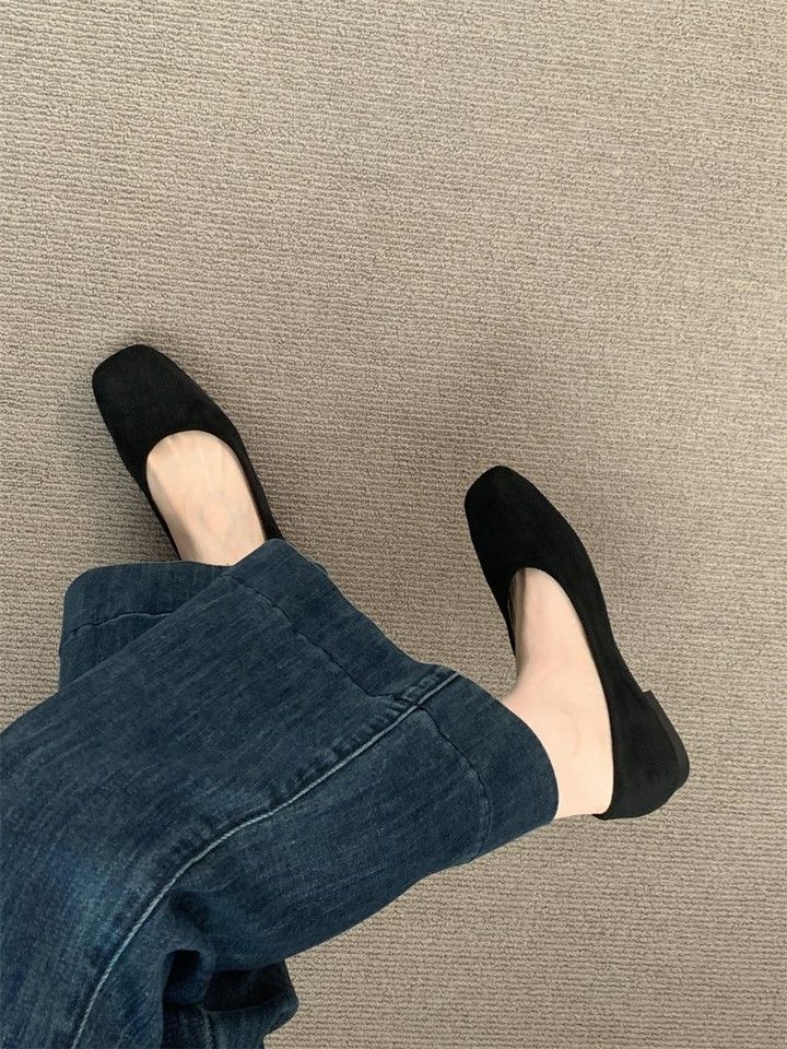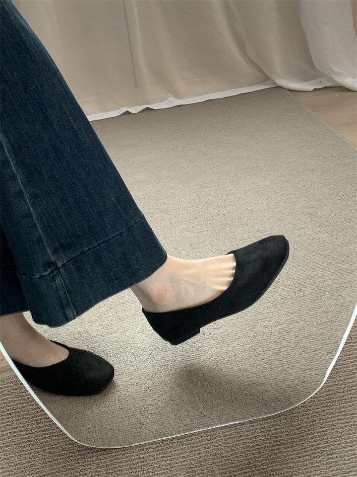 Zapatos Planos Versátiles para Mujer 2025 Primavera y Otoño Nuevos Punta Redonda Negros para Trabajo Gamuza Bajos