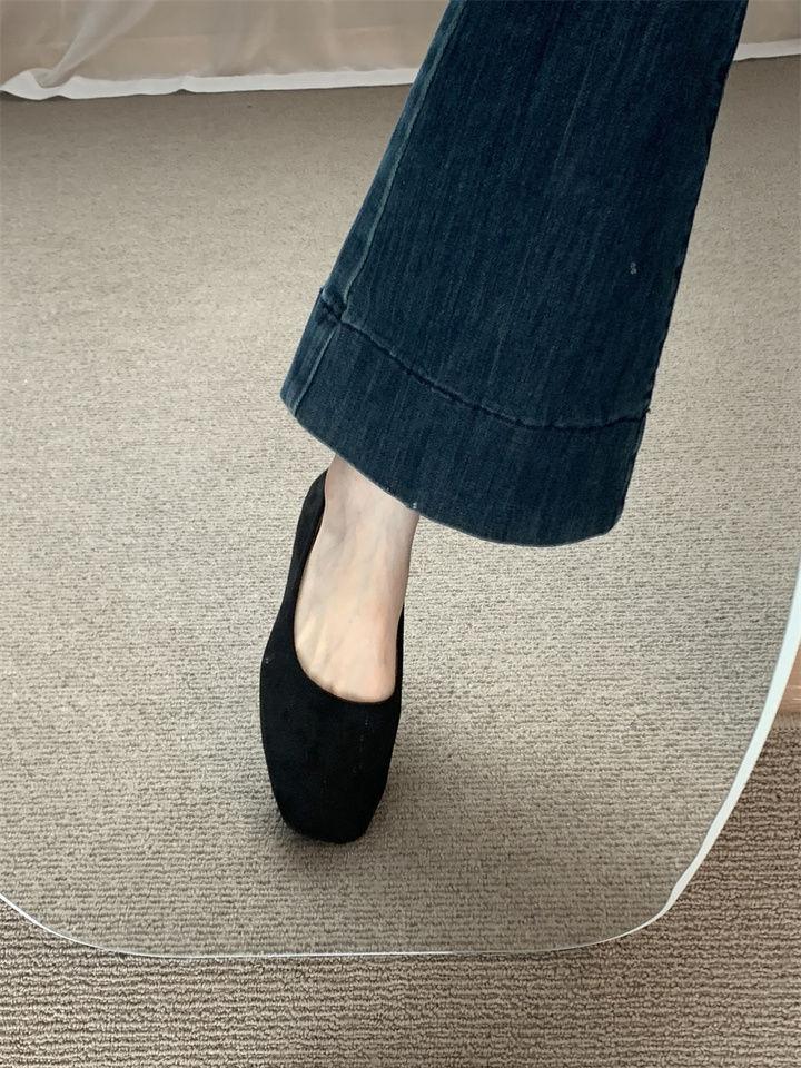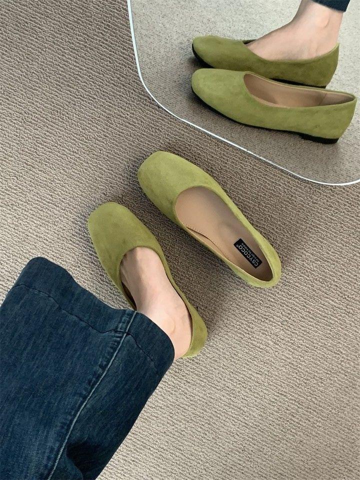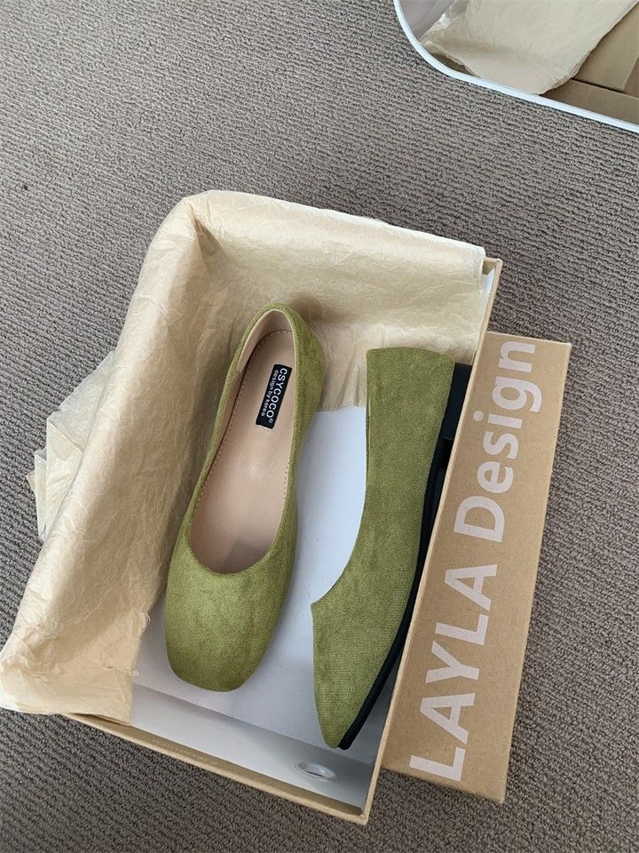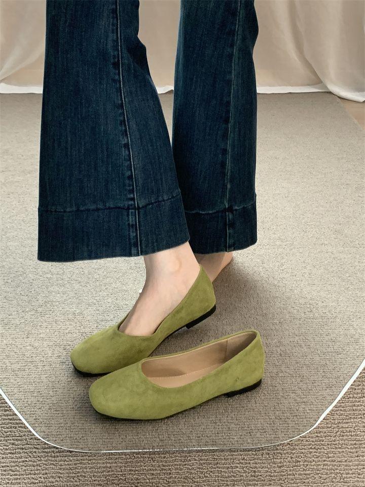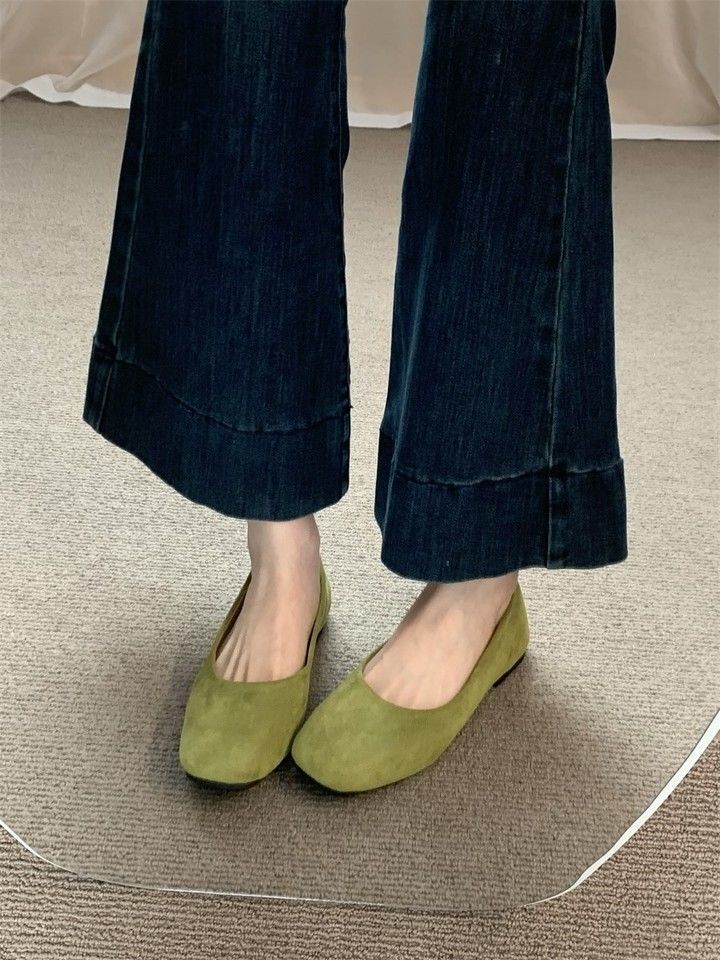 Zapatos Planos Versátiles para Mujer 2025 Primavera y Otoño Nuevos Punta Redonda Negros para Trabajo Gamuza Bajos