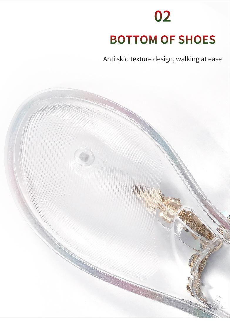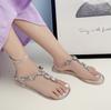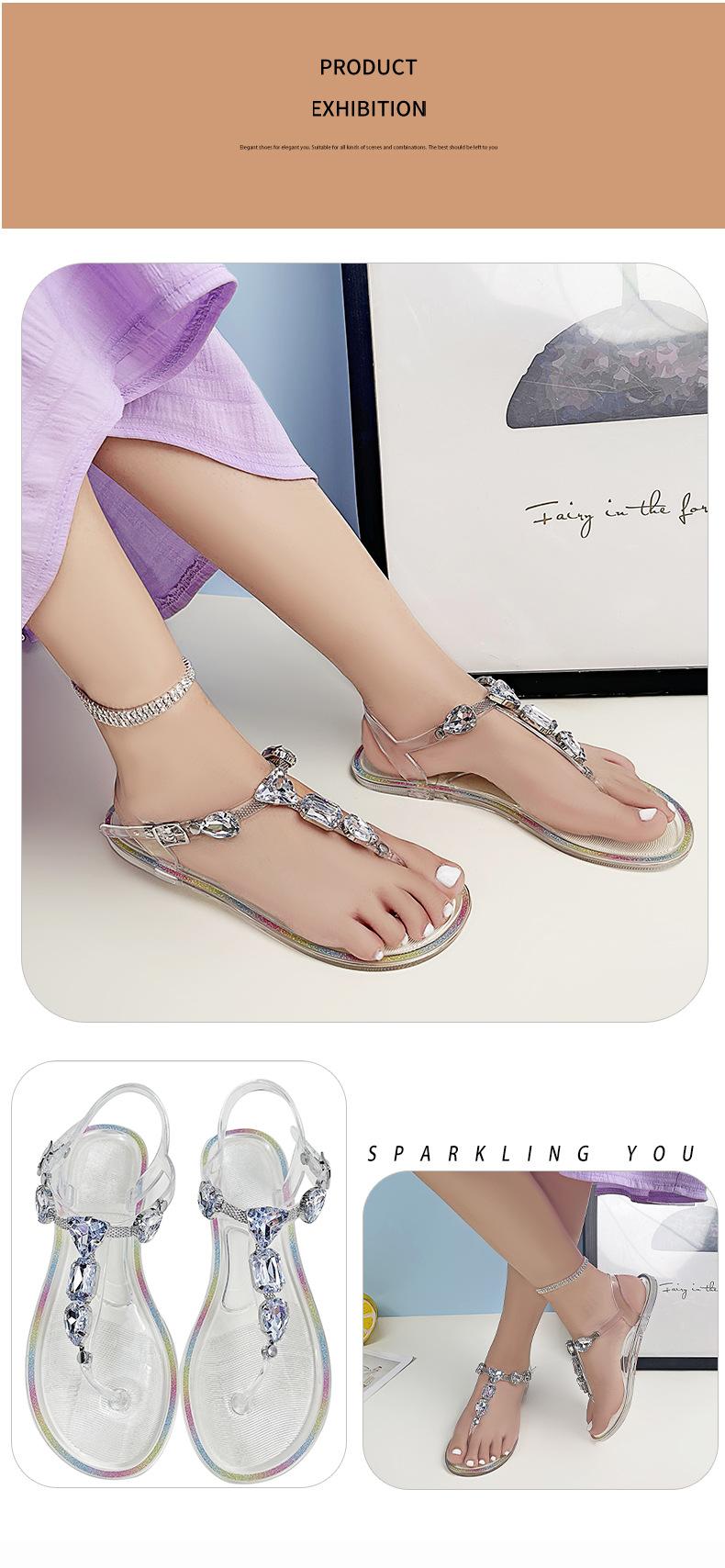 Temu Envío Directo de Una Pieza Calzado Transparente de Verano de Venta Caliente Sandalias de Gelatina con Pedrería Sandalias Planas de PVC para Mujer para Playa al Aire Libre