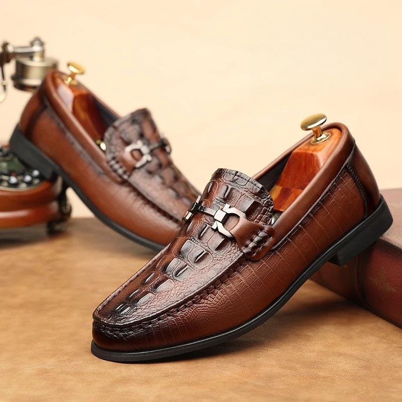 Zapatos Nuevos para Hombre 2025 Otoño Transpirables Tendencia Mocasines Patrón Cocodrilo Británico Negocios Formal Zapatos Casuales de Cuero para Hombre