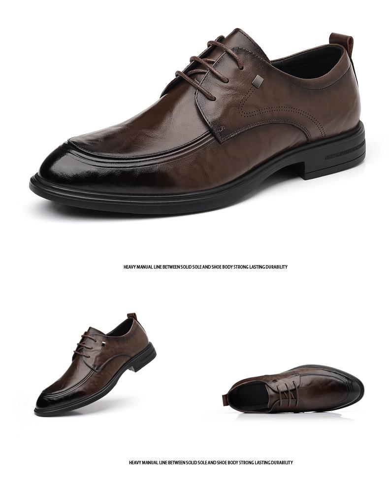 Zapatos de Cuero Casuales de Negocios para Hombre Nuevos con Cordones Punta Puntiaguda Cuero Genuino Zapatos para Hombre Suela Suave Transpirables Zapatos Individuales Hombre