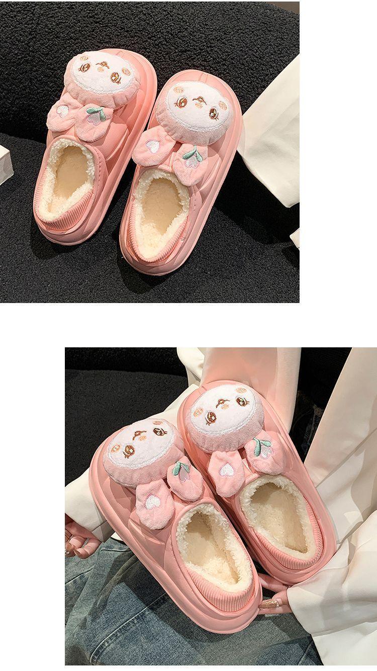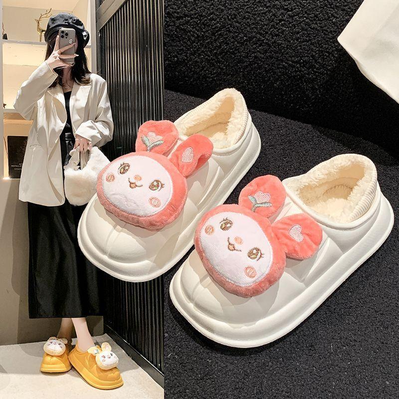 Pantuflas de Algodón Versátiles Mujer 2025 Invierno Cálidas Dibujos Animados Lindas Hogar Exterior Planas Antideslizantes Pantuflas de Algodón Mujer