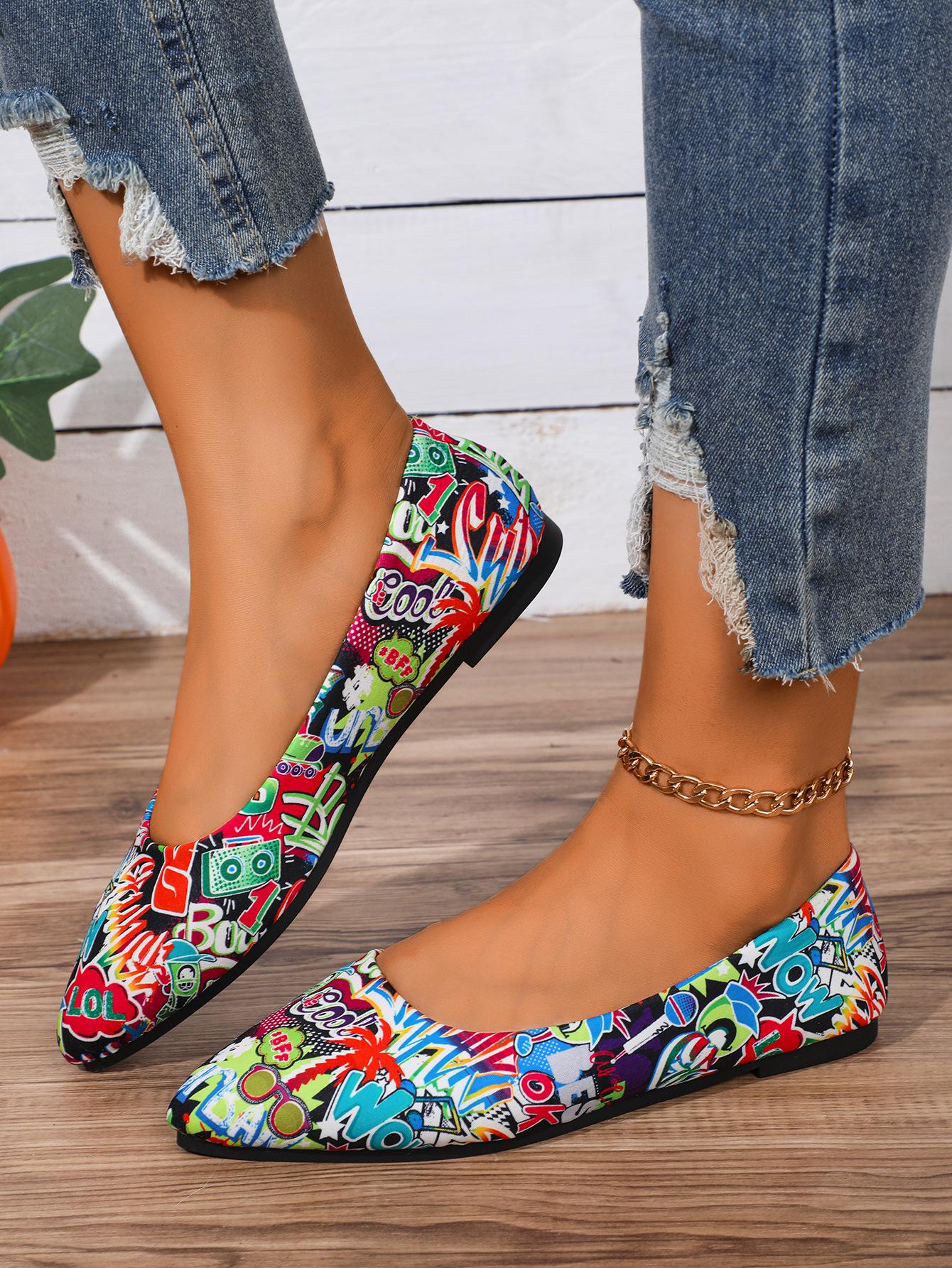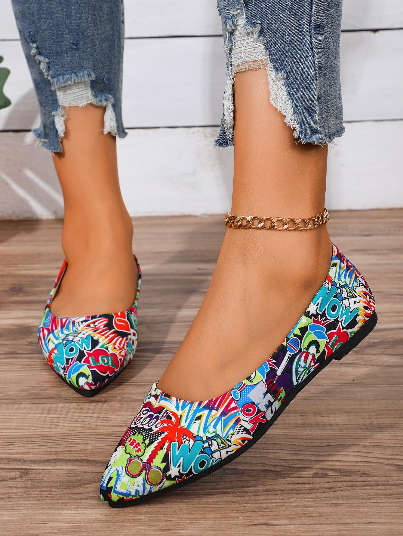 Nueva Moda Transfronteriza Colorida Punta Afilada Zapato Plano de Boca Baja Individual para Mujer Talla Grande Moda Casual Versátil Mocasines Planos