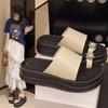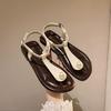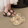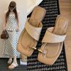 2025 Nuevas Sandalias de Tanga con Pedrería de Temperamento Francés para Mujer Verano para Exterior Estilo Hada Lazo para el Dedo Pantuflas para Exterior