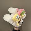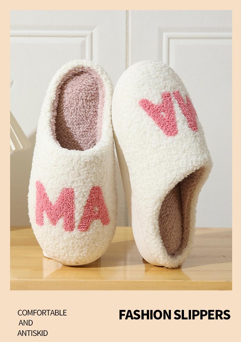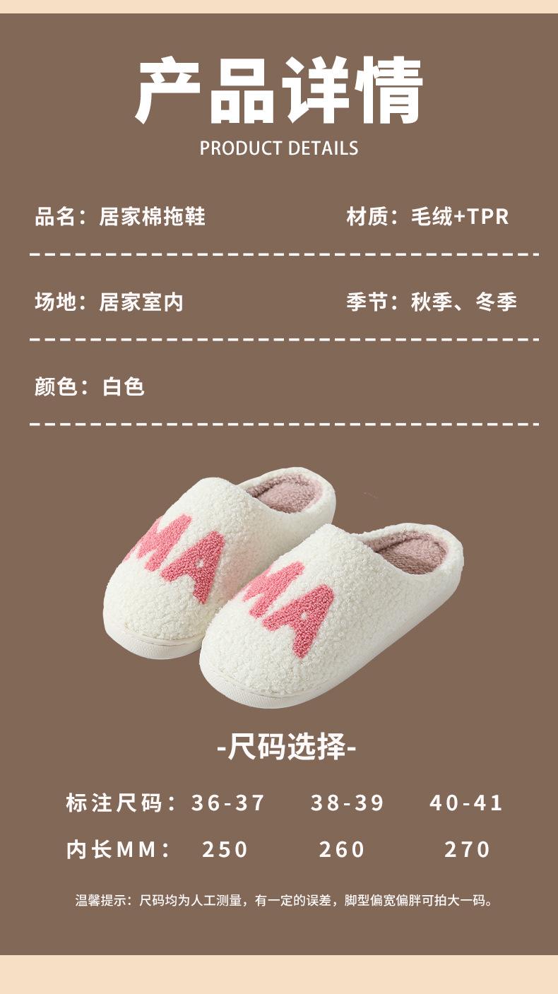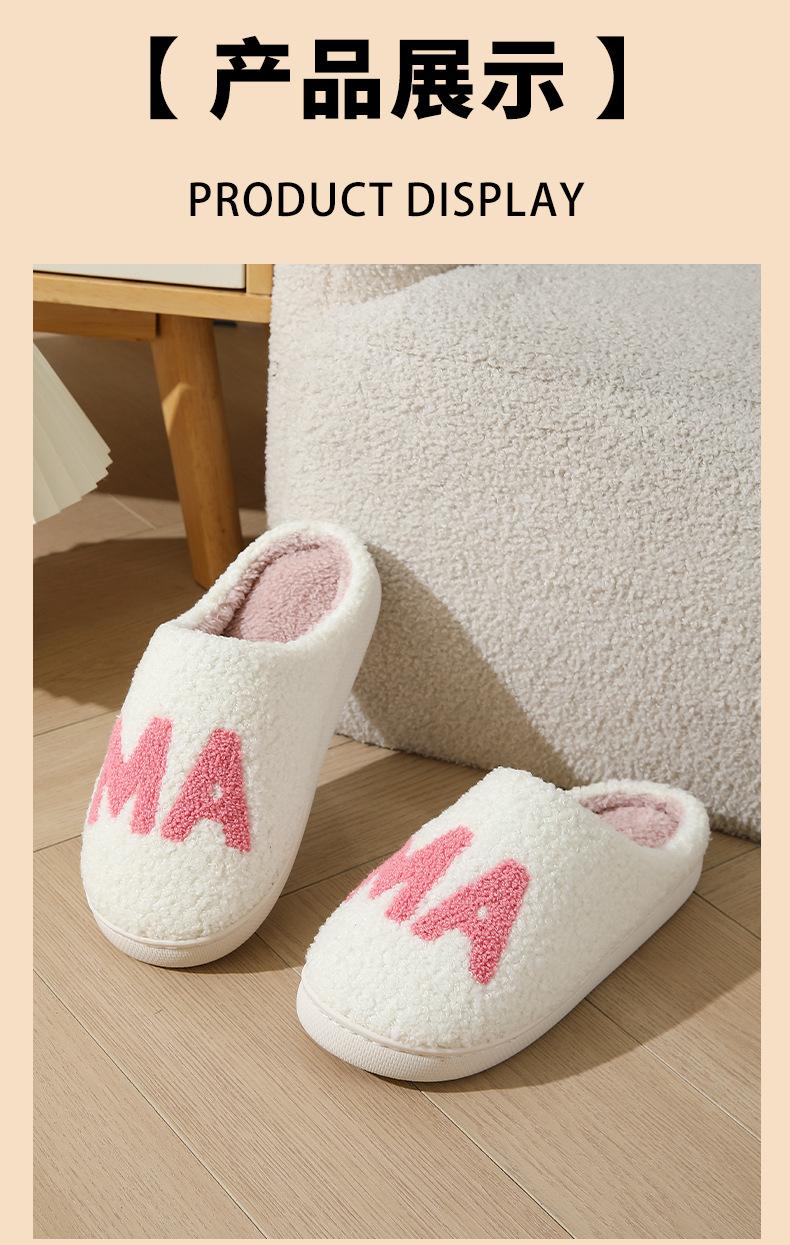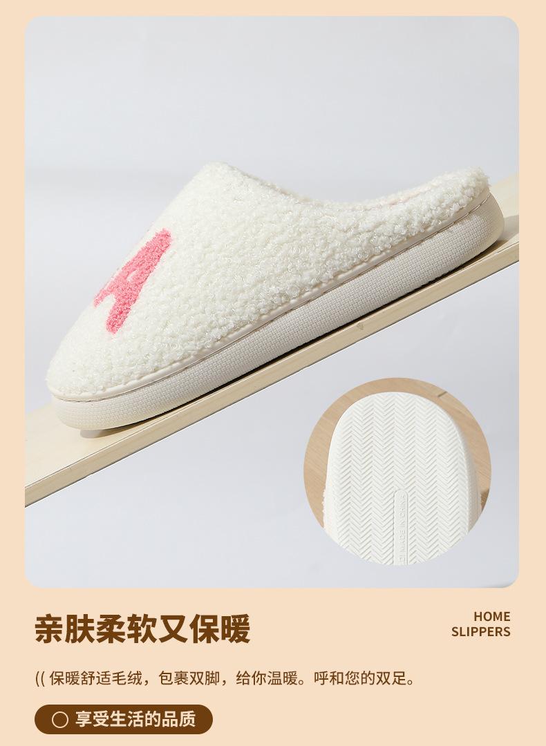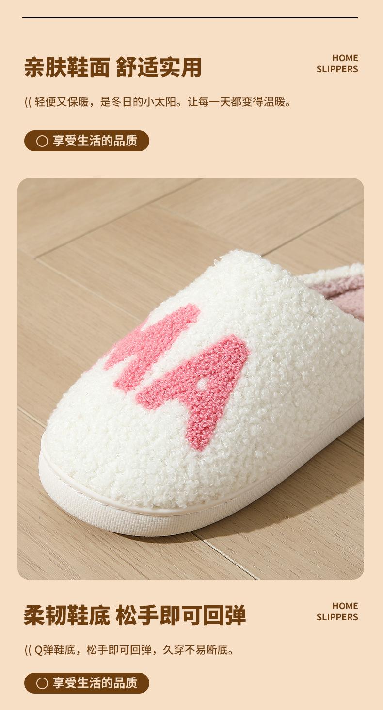 Nuevas Pantuflas de Algodón Cómodas para el Hogar Cálidas de Invierno Bordado de Dibujos Animados Letras Estilo Pareja para Hombre y Mujer Pantuflas de Algodón para Interior