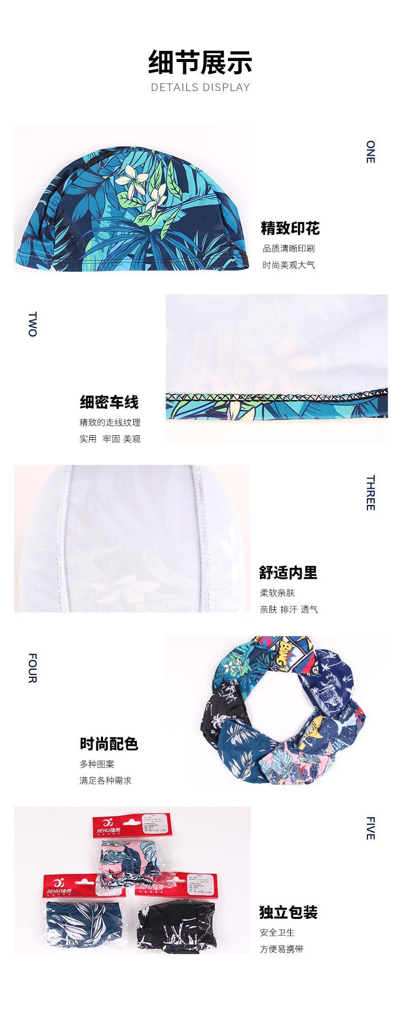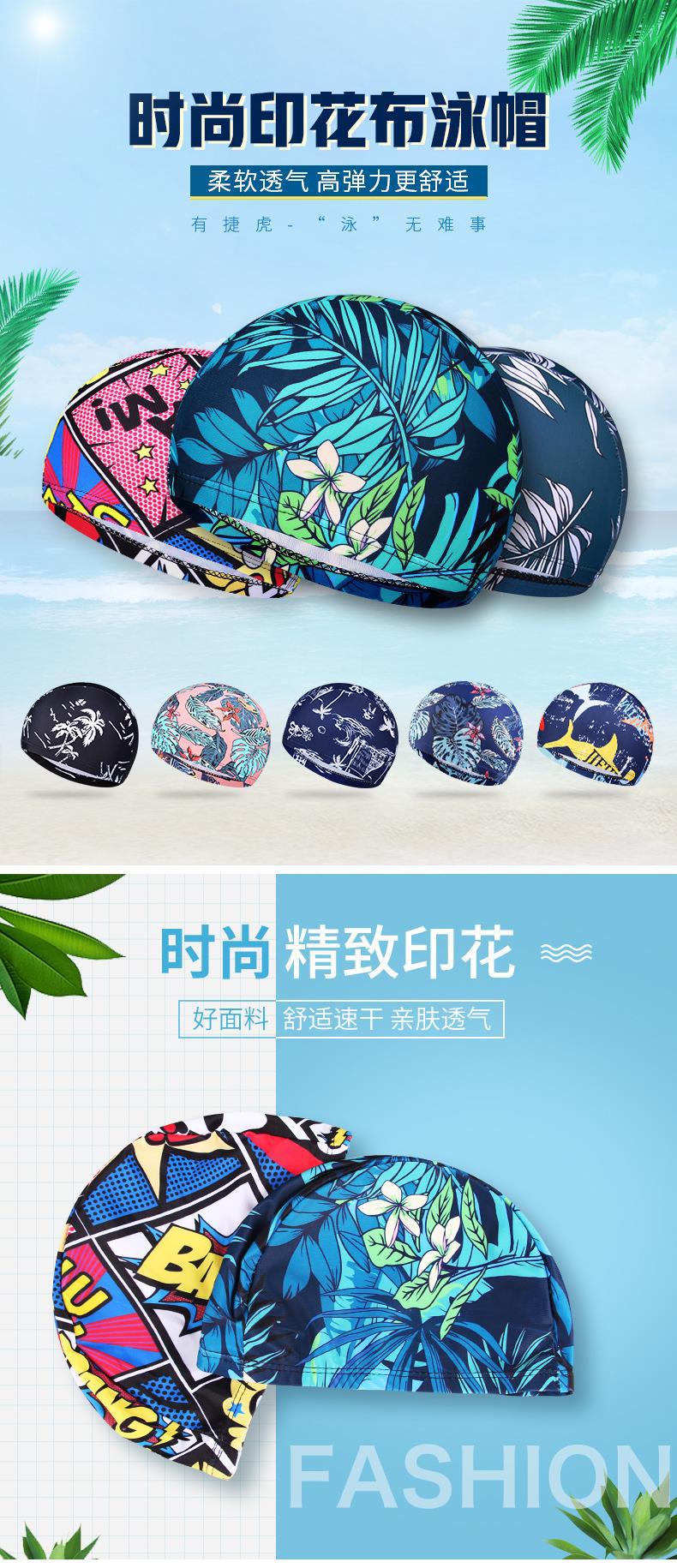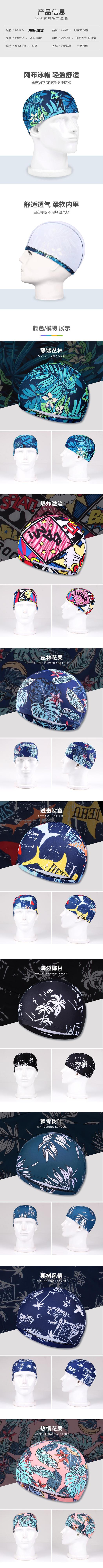 Gorro de natación de tela Jiehu nuevo gorro floral al por mayor rápido secado patrón de moda tejido de punto gorro de natación gorro de natación