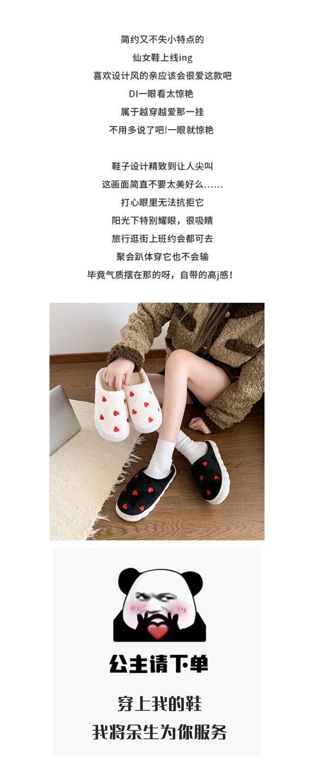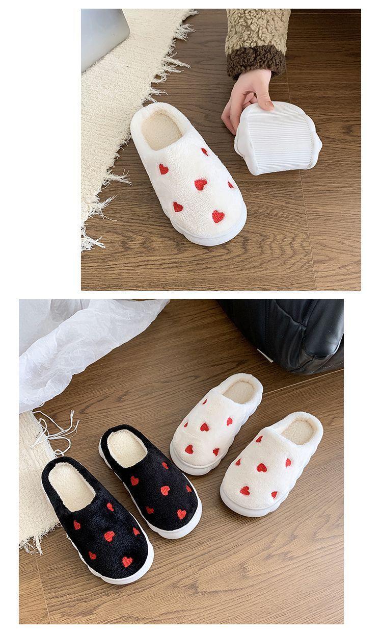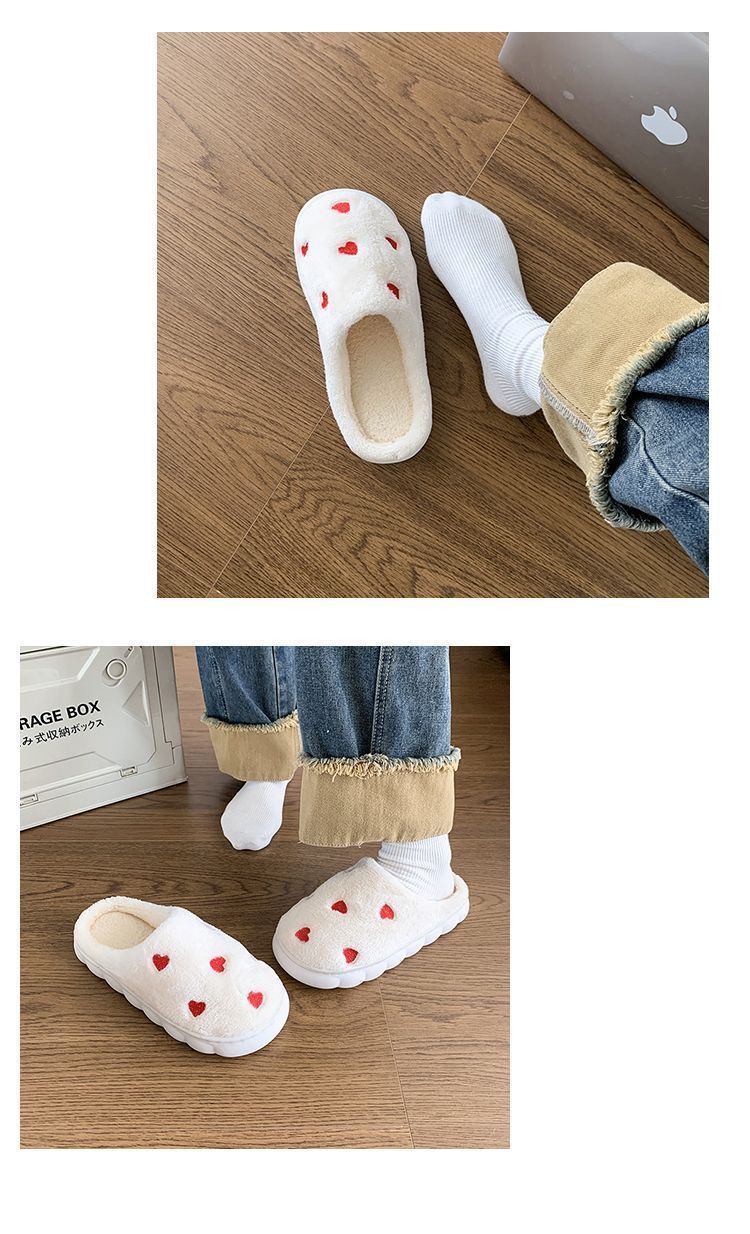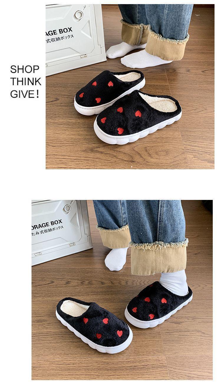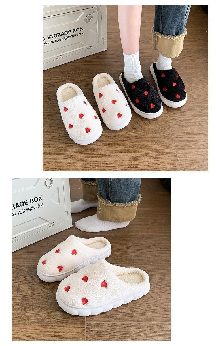 Pantuflas de Felpa Silenciosas Antideslizantes para Interior del Hogar, Pantuflas de Punta Cerrada Versátiles y a la Moda para Chica Corazón, Nuevo Otoño/Invierno 2025