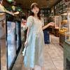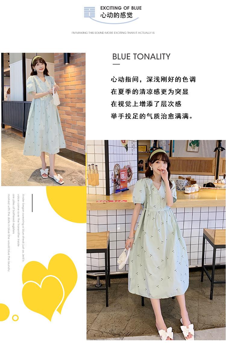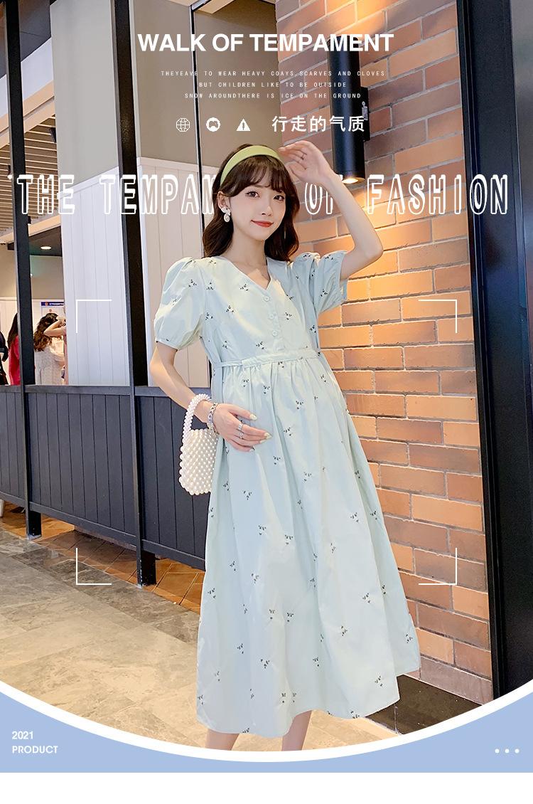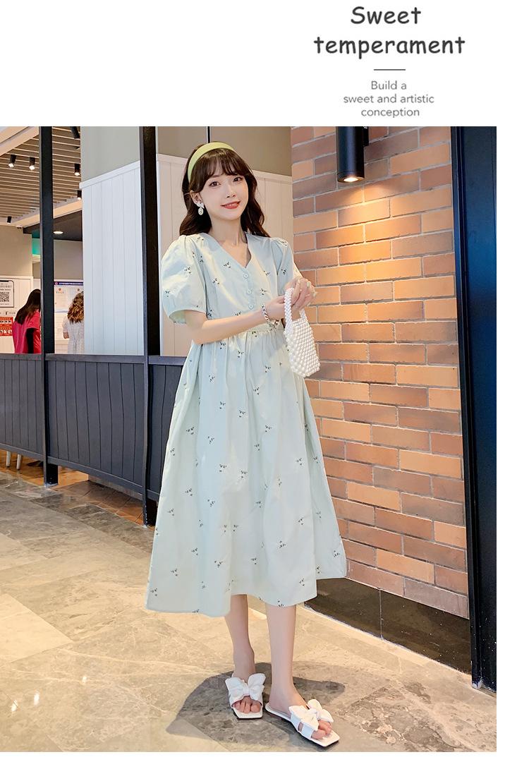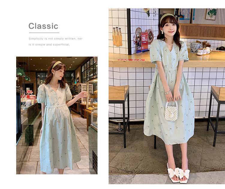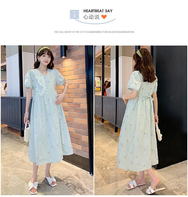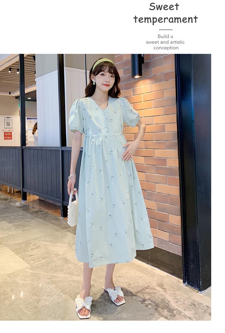 Maternidad 2022 Verano Nuevo Dulce Moda Cuello en V Bordado Suelto Midi Vestido para Mujeres Embarazadas