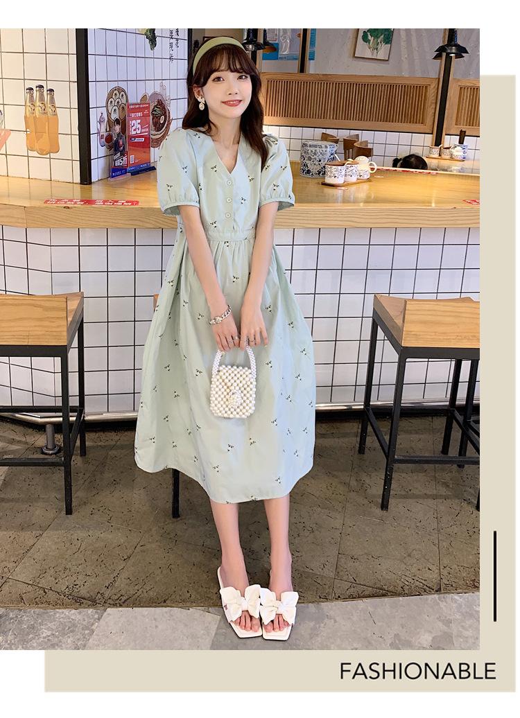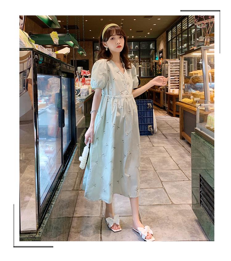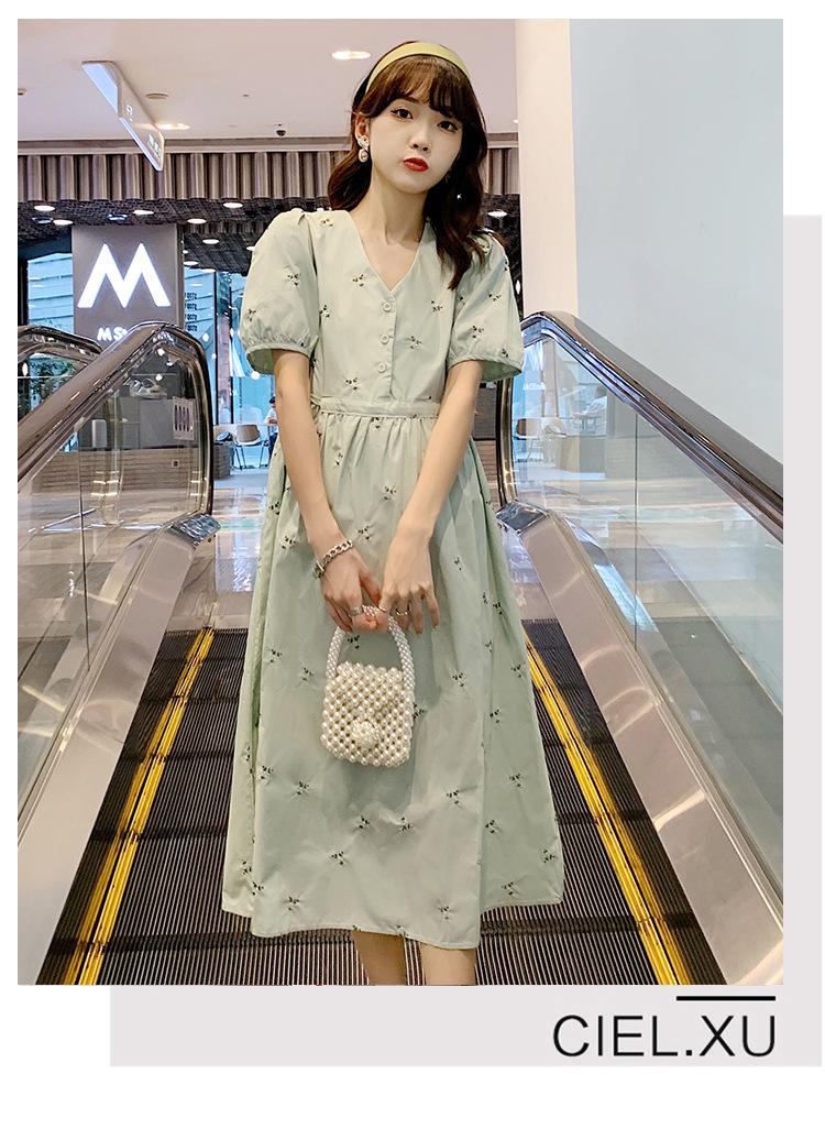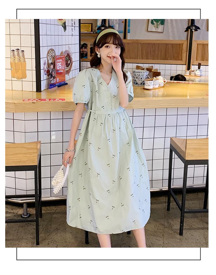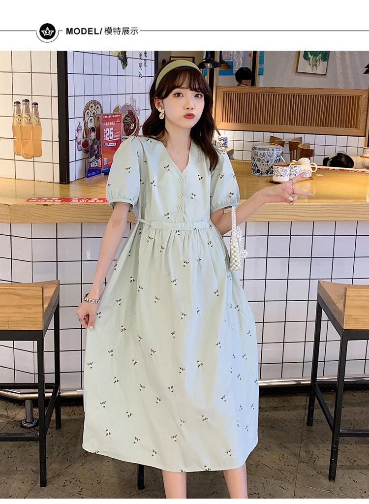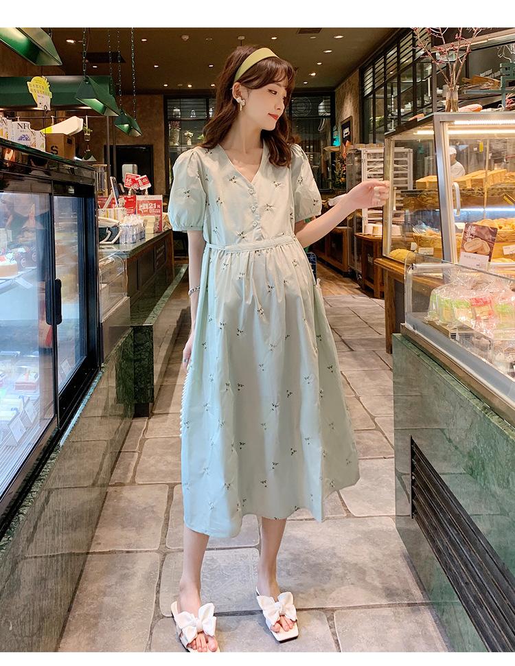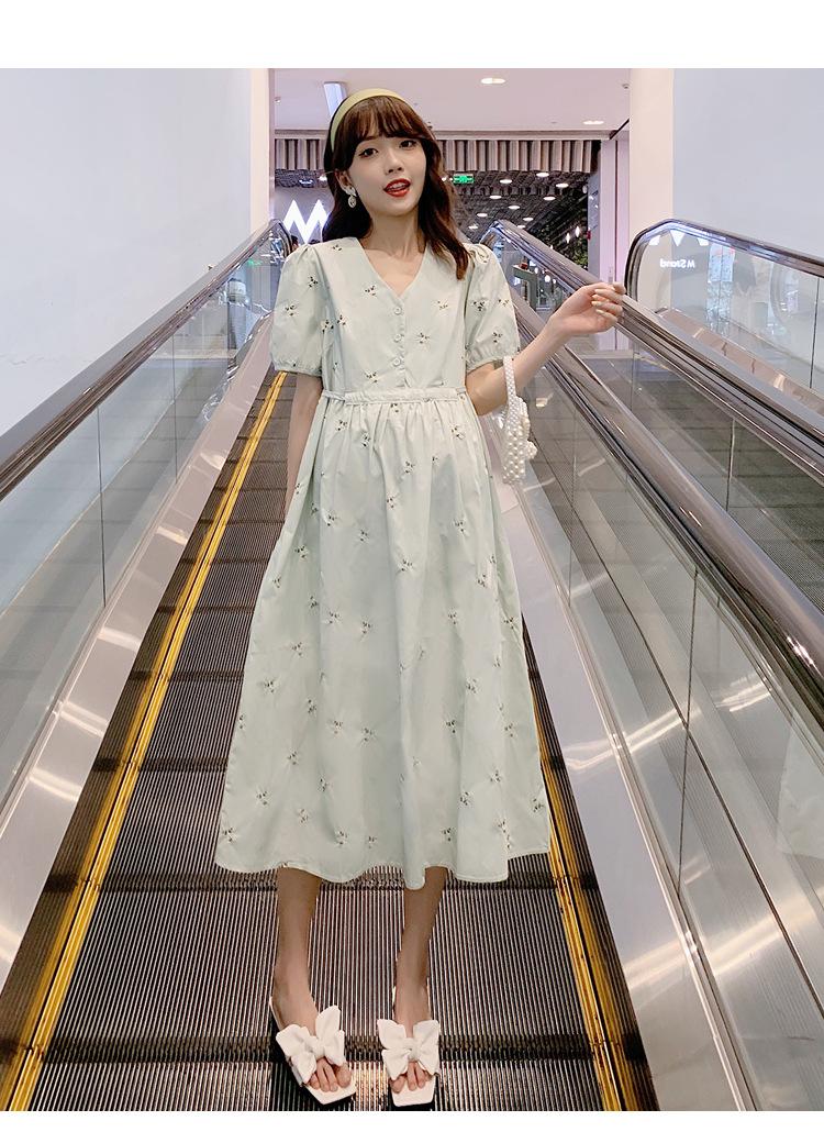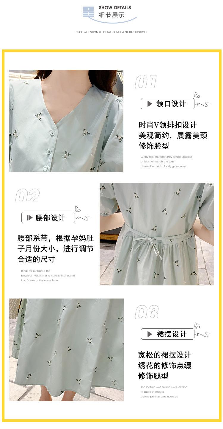 Compra Maternidad 2022 Verano Nuevo Dulce Moda Cuello en V Bordado Suelto Midi Vestido para Mujeres Embarazadas al por mayor en Joom.pro