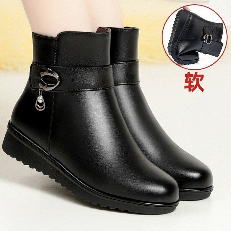 Zapatos de mamá zapatos de algodón antideslizantes suela suave botas de algodón otoño e invierno más terciopelo más botas gruesas botas cortas para mujer botas de cuero para mediana edad y ancianos