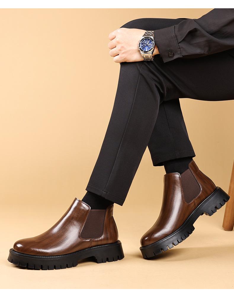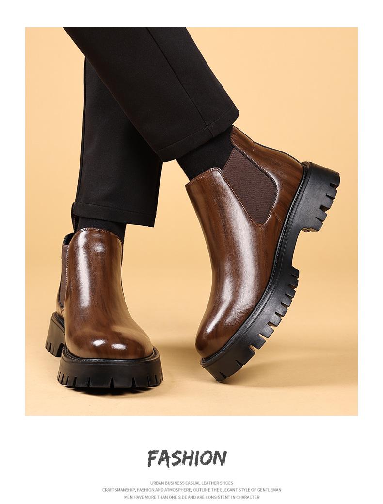 Dropshipping transfronterizo Botas Chelsea hombre 2025 nuevas botas de trabajo británicas suela gruesa botas Martin moda botas de cuero de caña alta