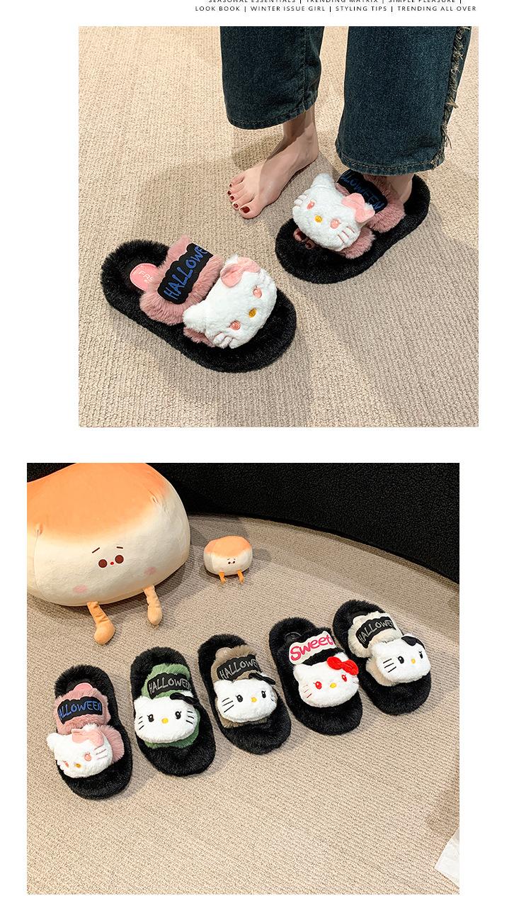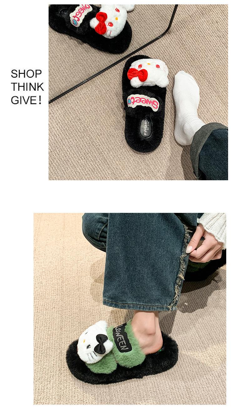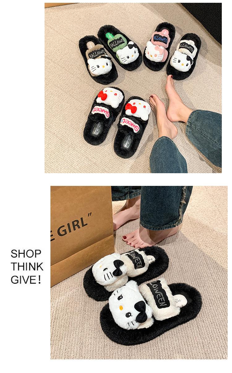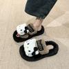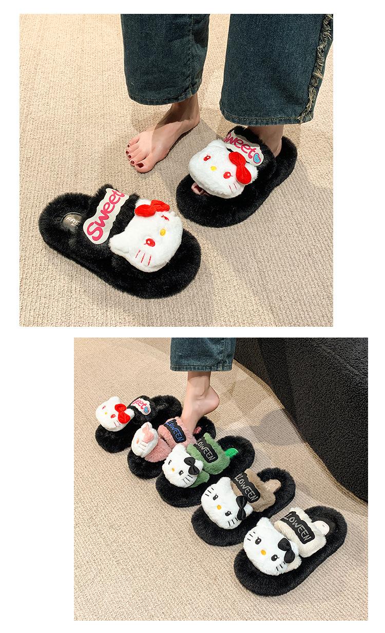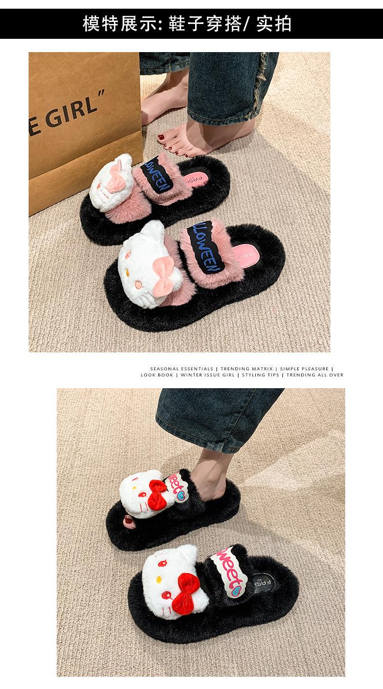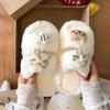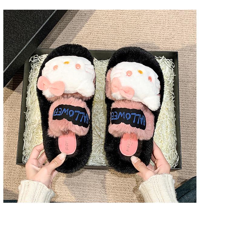 Pantuflas peludas lindas para mujer otoño e invierno para salir 2025 nuevas de suela gruesa cómodas para el hogar ocio de punta abierta versátiles pantuflas de algodón