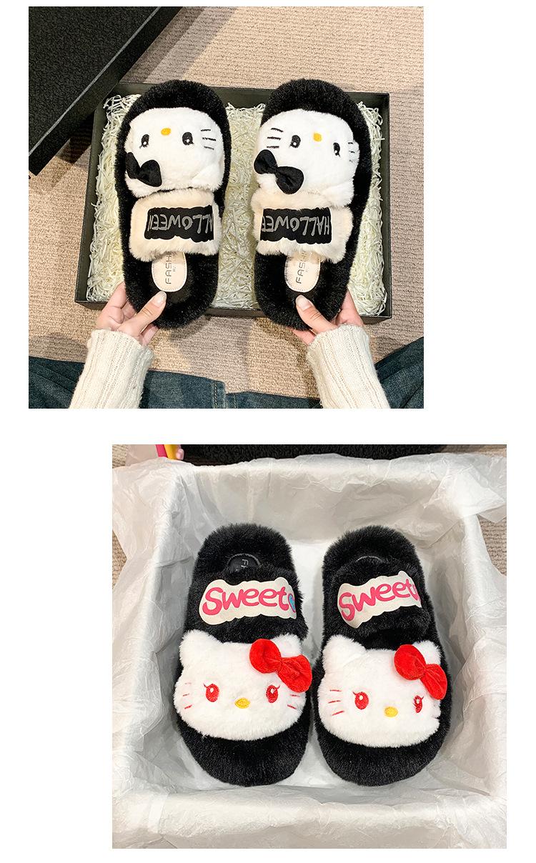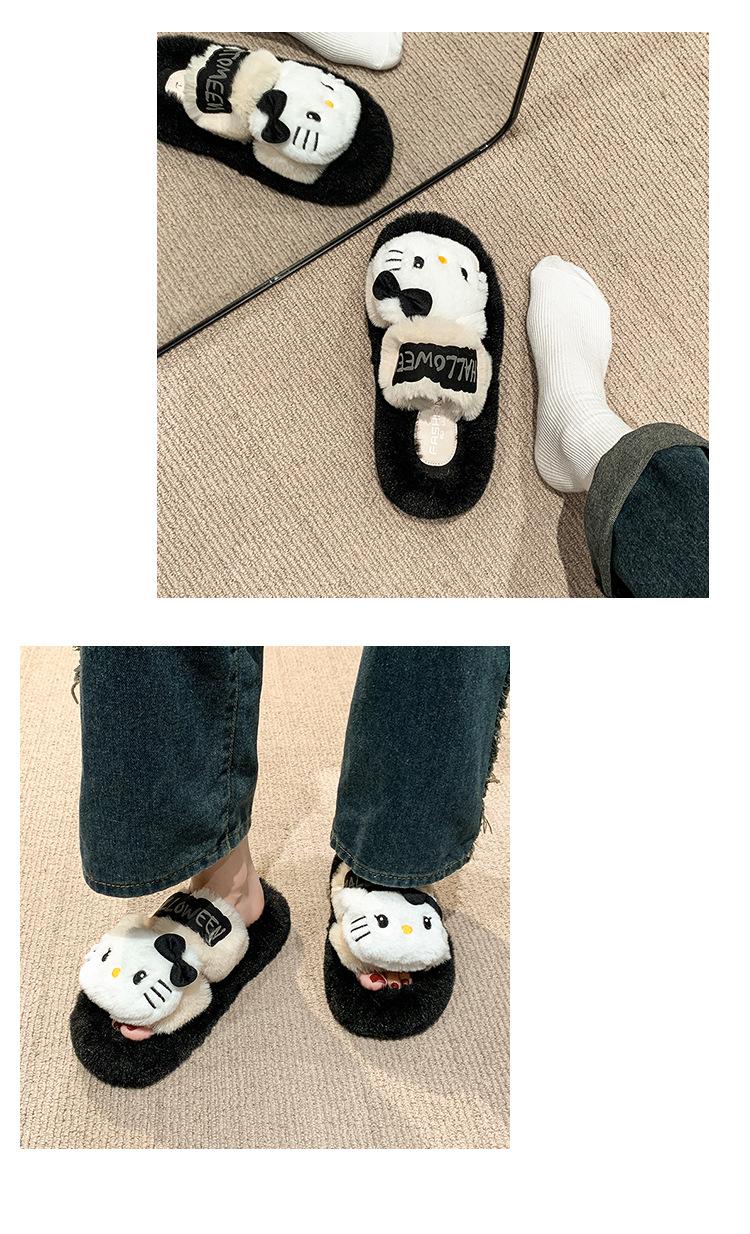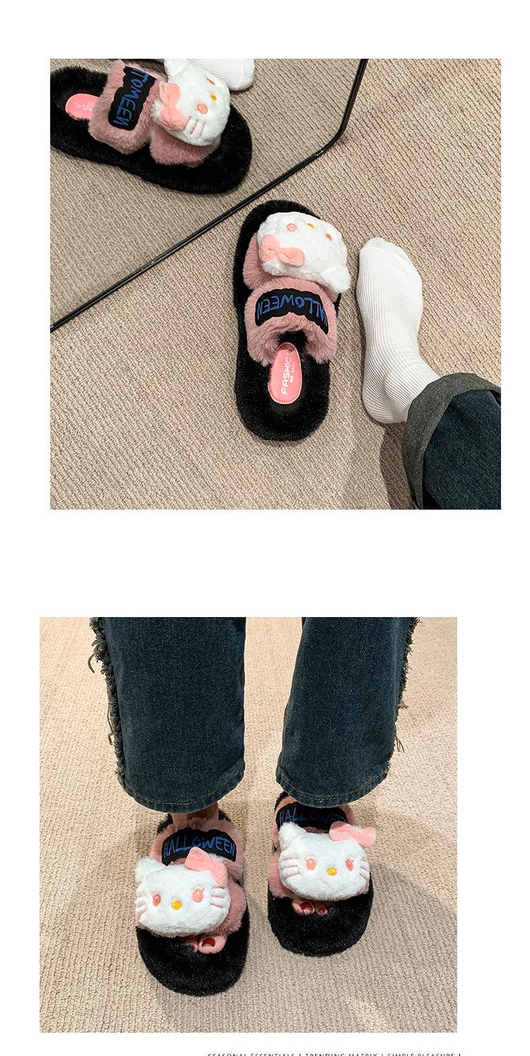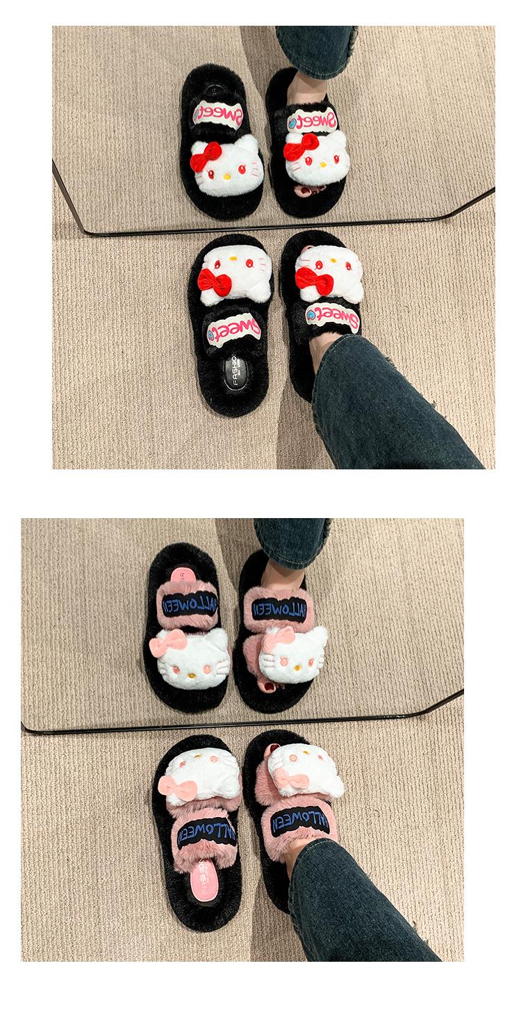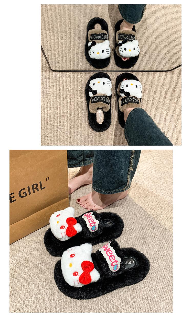 Pantuflas peludas lindas para mujer otoño e invierno para salir 2025 nuevas de suela gruesa cómodas para el hogar ocio de punta abierta versátiles pantuflas de algodón