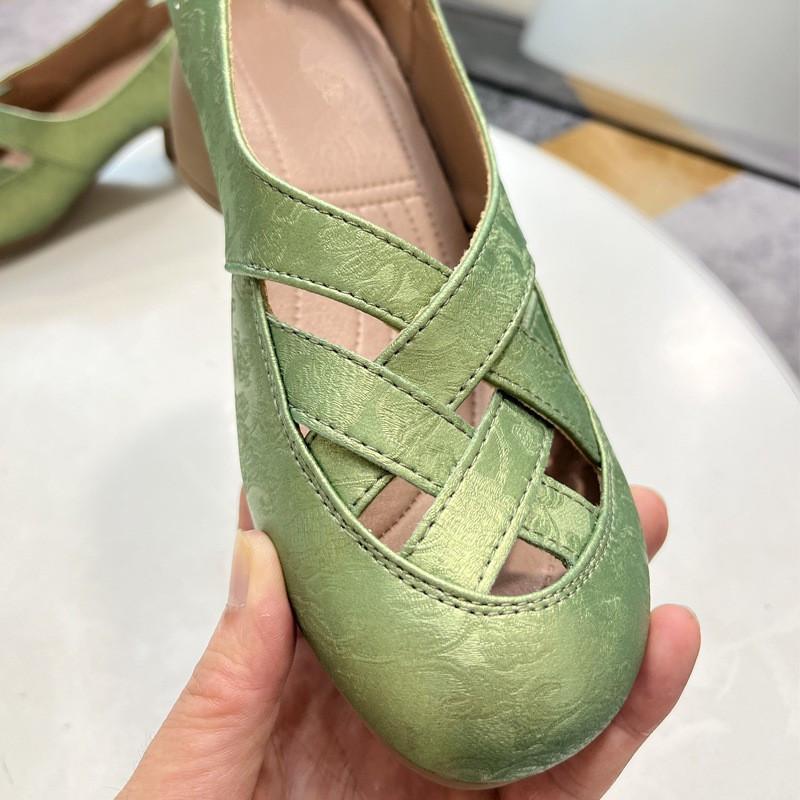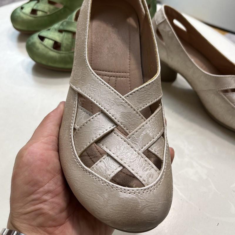 2025 Nuevos Zapatos de Verano y Otoño de Cuero Suave para Mujer Flats Sandalias de Mamá de Cuero Suave Recortes Transpirables Suela Suave Zapatos con Agujeros