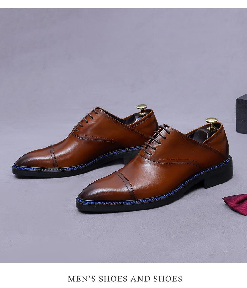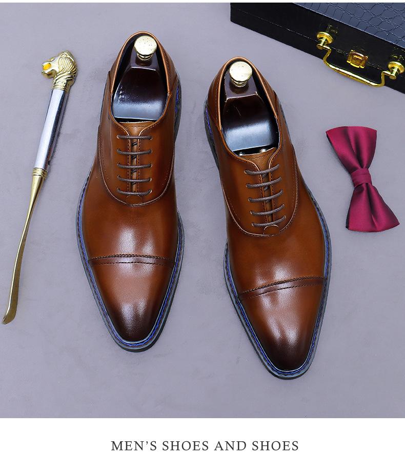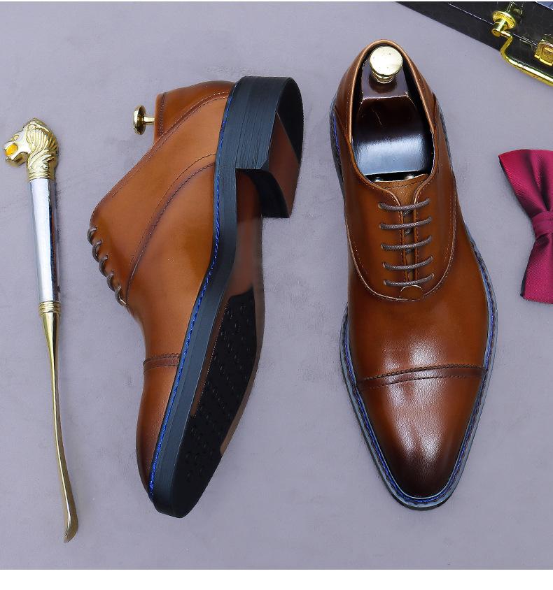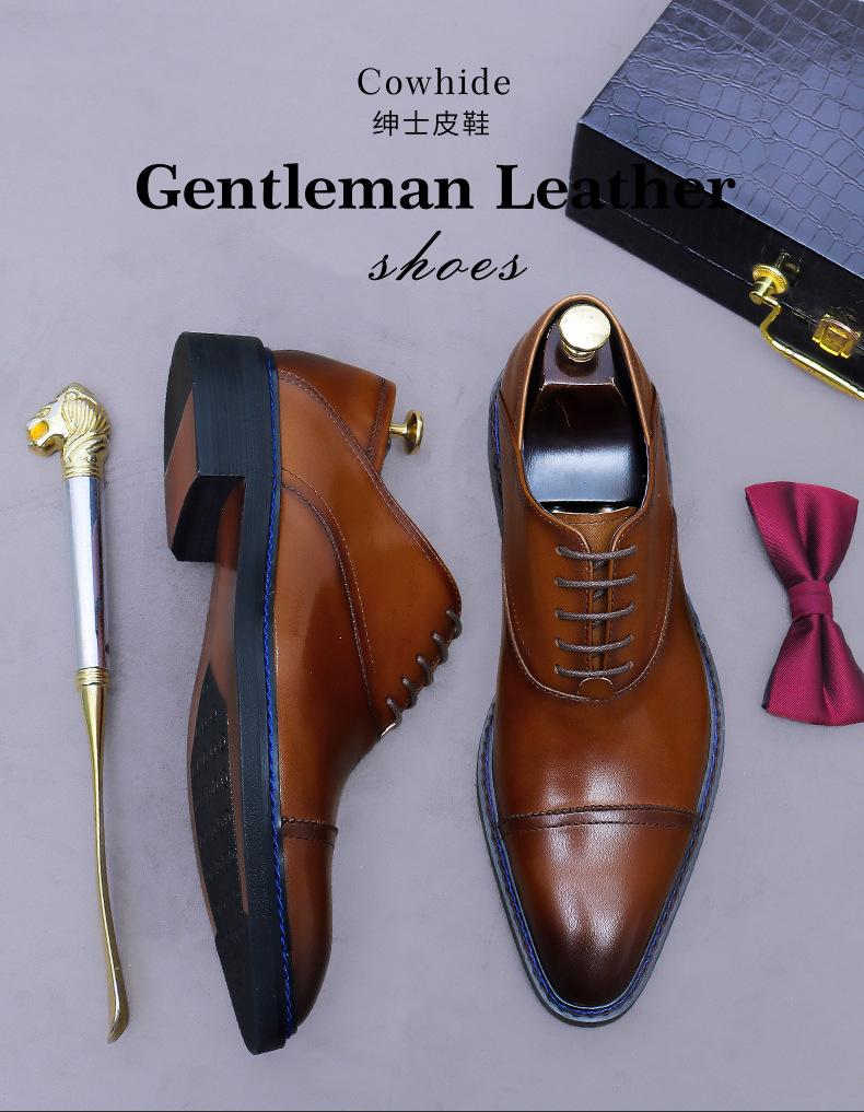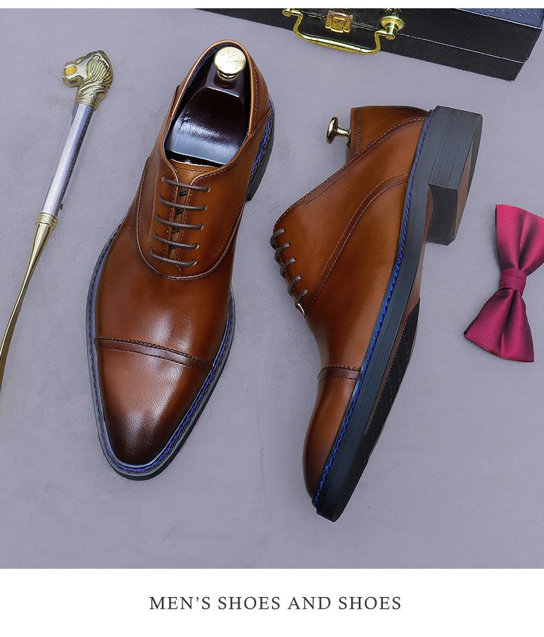 Zapatos de cuero formales de negocios de alta gama para hombre, zapatos de boda retro de moda para hombre de tres piezas de cuero vacuno genuino