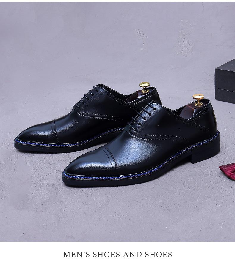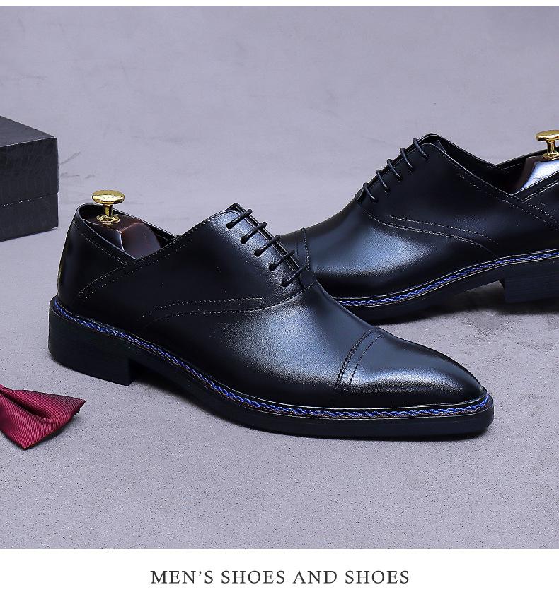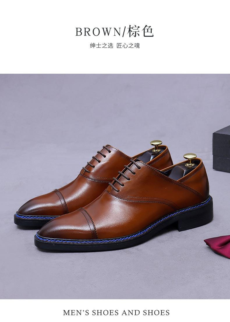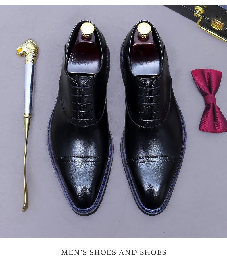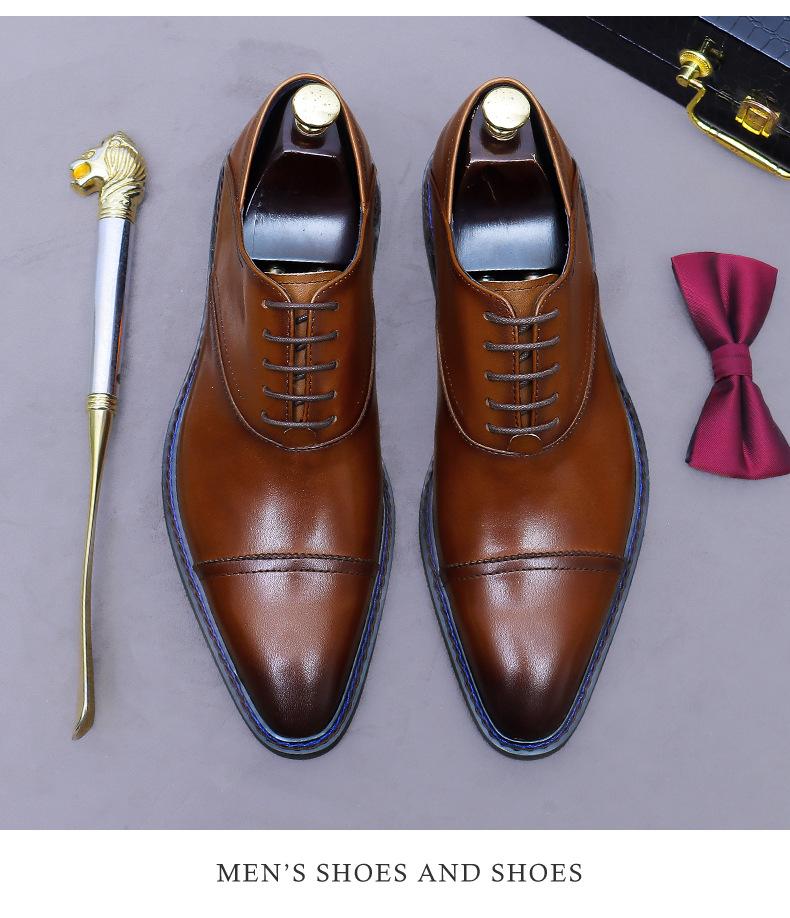 Zapatos de cuero formales de negocios de alta gama para hombre, zapatos de boda retro de moda para hombre de tres piezas de cuero vacuno genuino