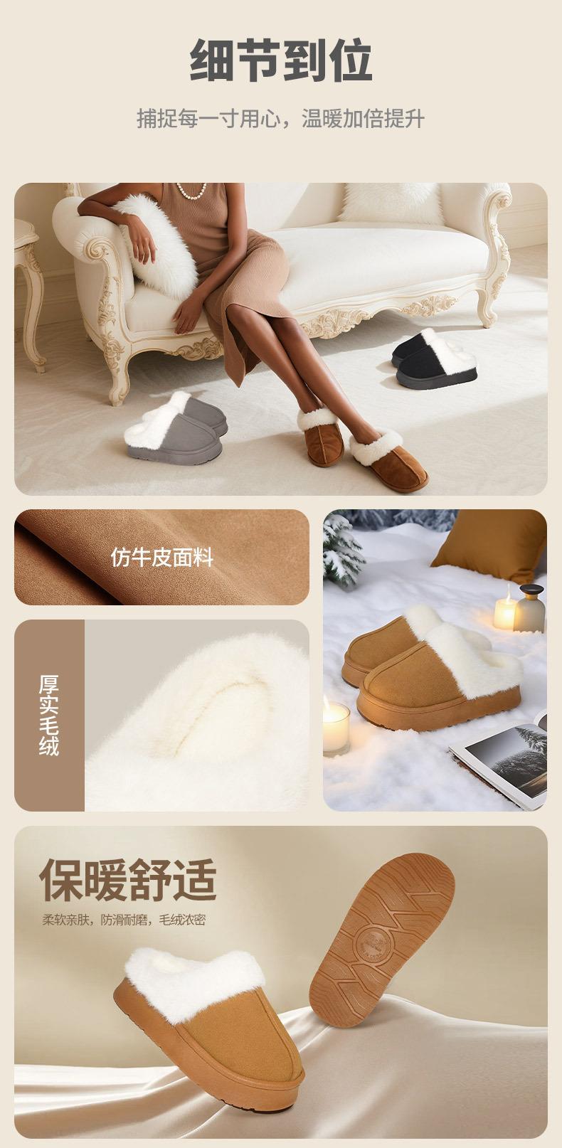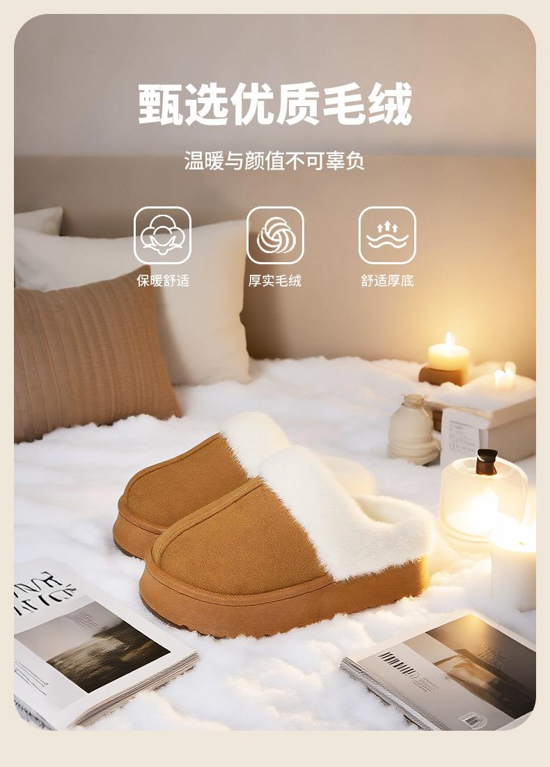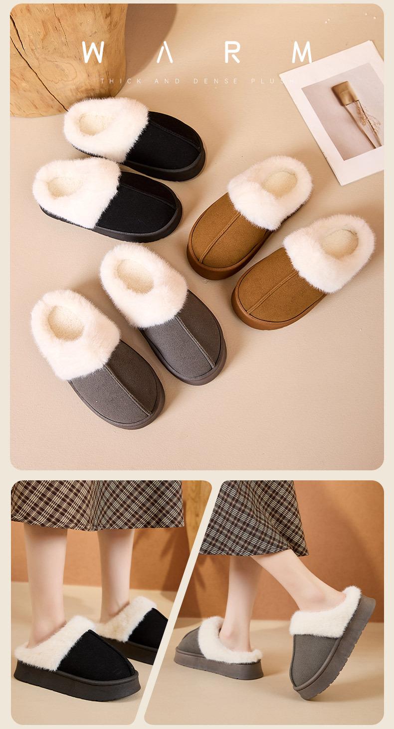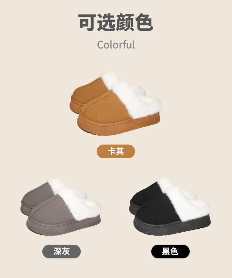 Pantuflas peludas al por mayor transfronterizas invierno suela gruesa antideslizantes pantuflas de felpa cálidas para el hogar pantuflas de algodón para mujer para uso en exteriores