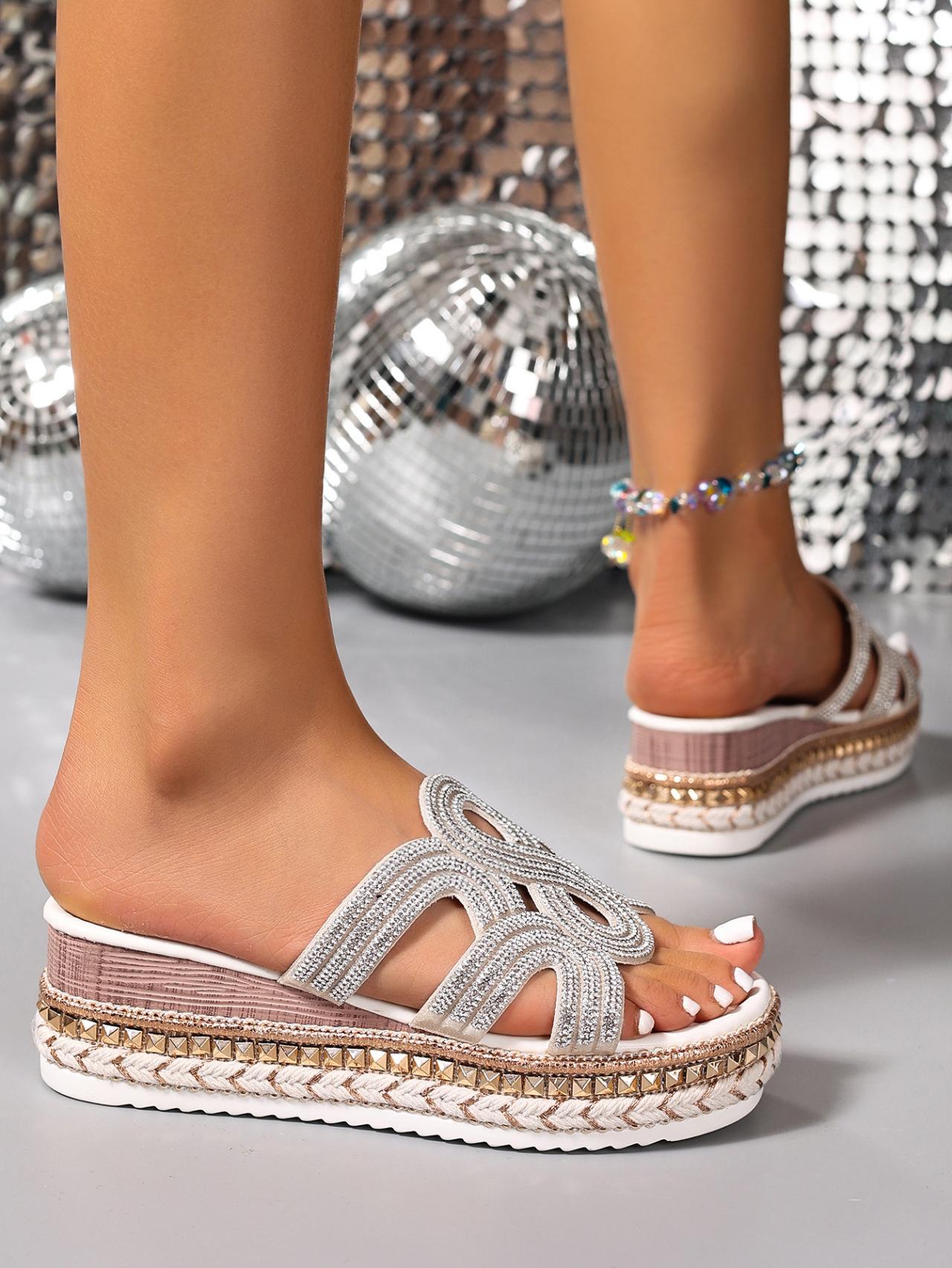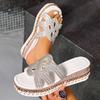 Exterior de primavera/verano para mujer con punta abierta 2025 nuevas sandalias de playa con pedrería de suela gruesa casual zapatillas de talla grande