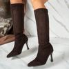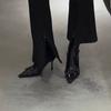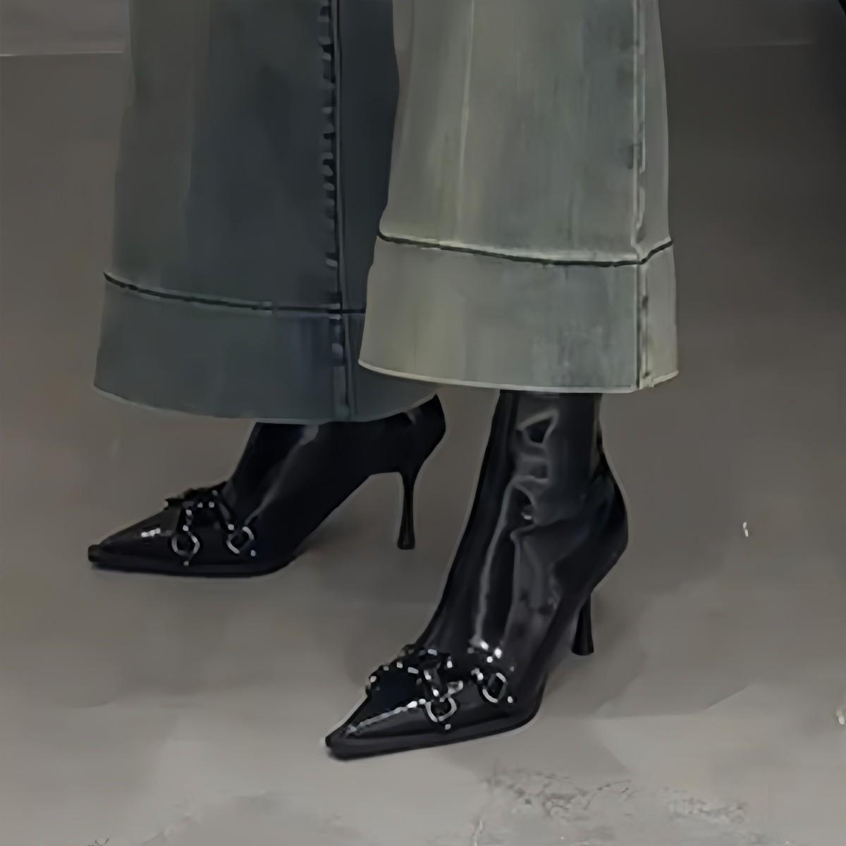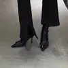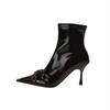 Botines de Tacón Alto con Punta Afilada para Mujer Tacón de Aguja Cierre Lateral 2024 Nuevo Otoño Invierno Cuero Patentado Negro Botas Adelgazantes de Alta Gama