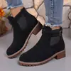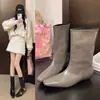 2025 Otoño/Invierno Nuevas Botas de Media Caña con Tacón de Cuña y Punta Cuadrada, Botas de Caballero Holgadas para Ponerse, Zapatos para Comercio Exterior Transfronterizo para Mujer