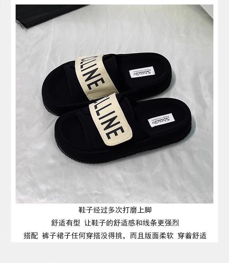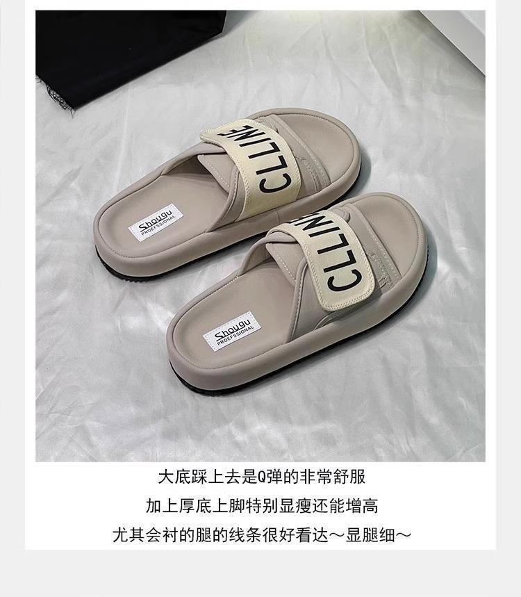 Pantuflas planas francesas súper calientes de suela gruesa versátiles sandalias para mujer ropa de verano moda combinan con falda 2025 nueva de una tira