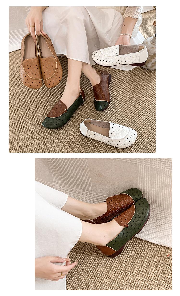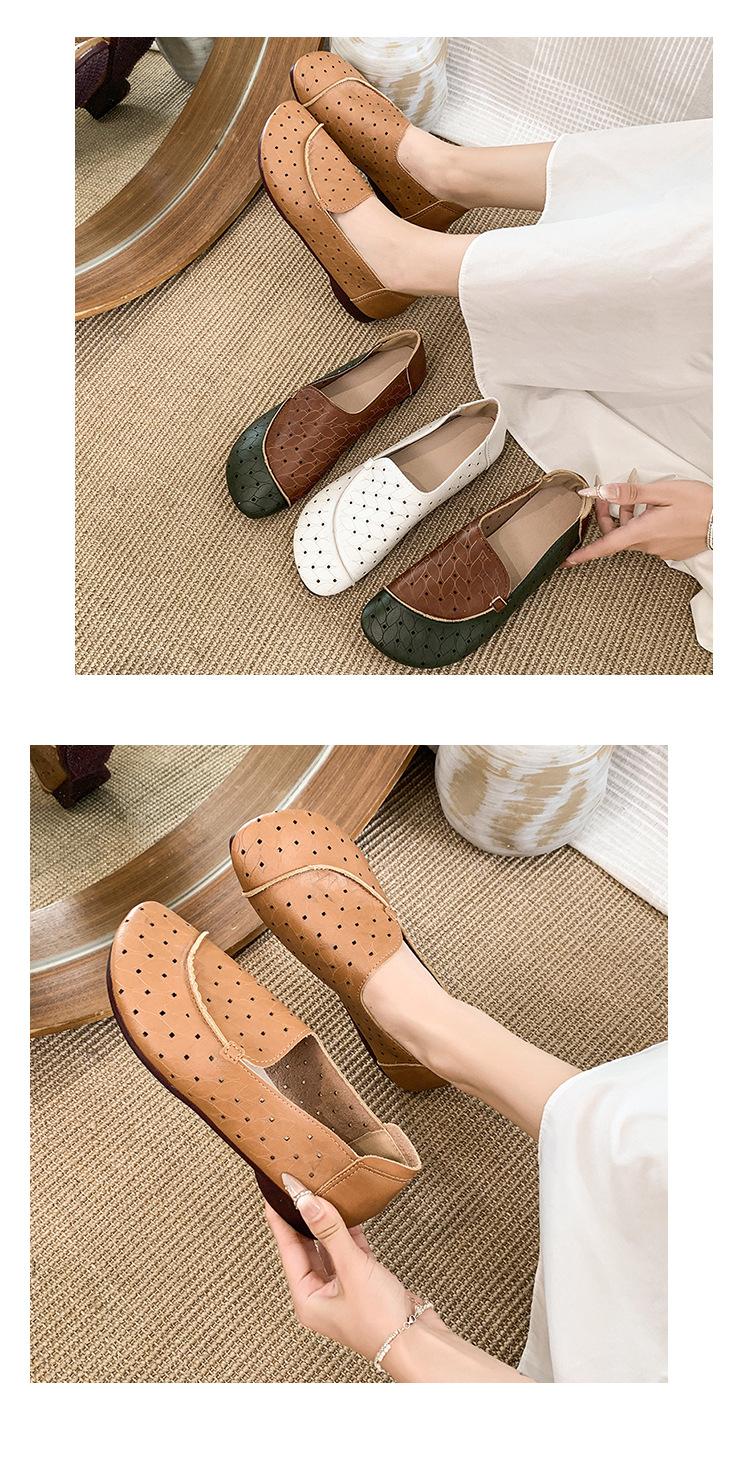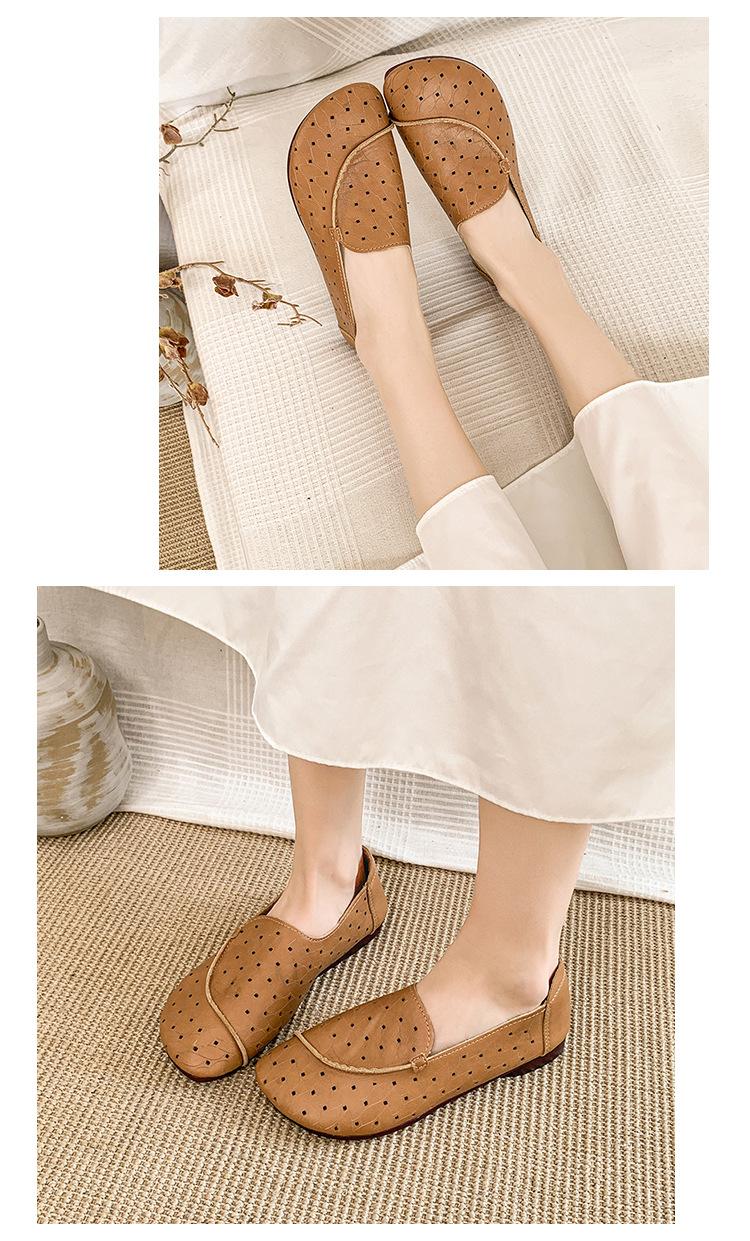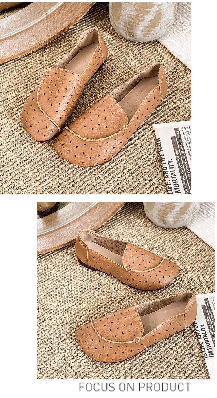 Zapatos de Mamá de Cuero Suave Suela Suave Sandalias Vintage Nuevos Planos Slip-on Zapatos de Agujeros Transpirables Zapatos Individuales para Mujeres de Mediana Edad y Ancianas