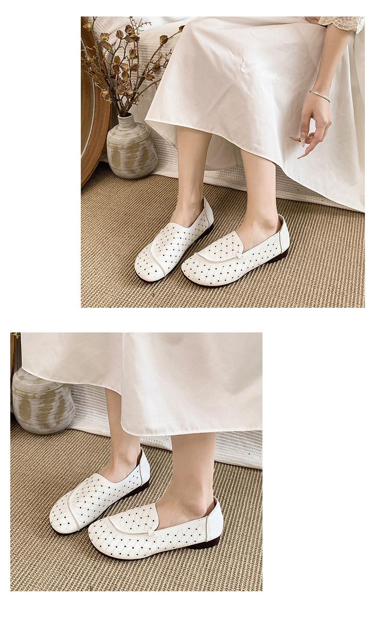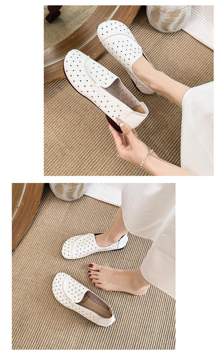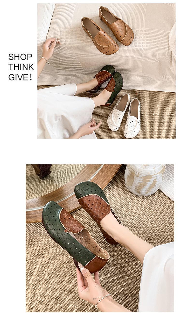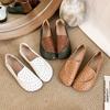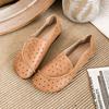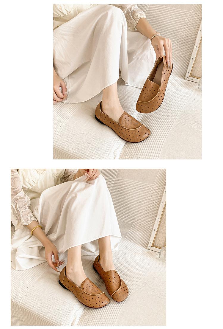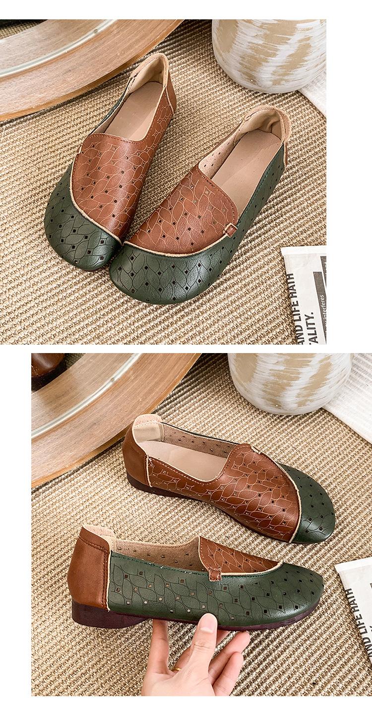 Zapatos de Mamá de Cuero Suave Suela Suave Sandalias Vintage Nuevos Planos Slip-on Zapatos de Agujeros Transpirables Zapatos Individuales para Mujeres de Mediana Edad y Ancianas