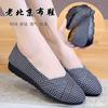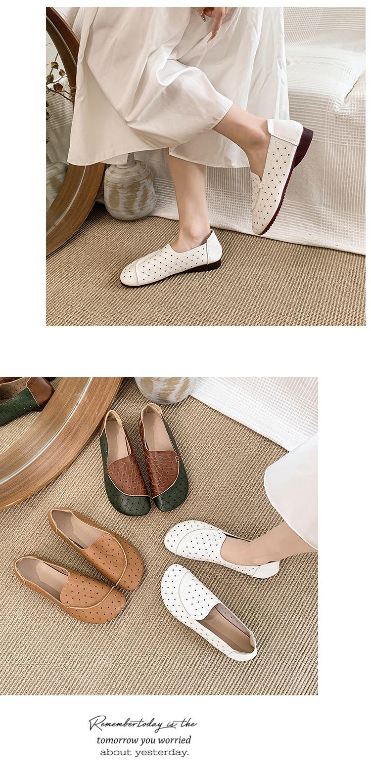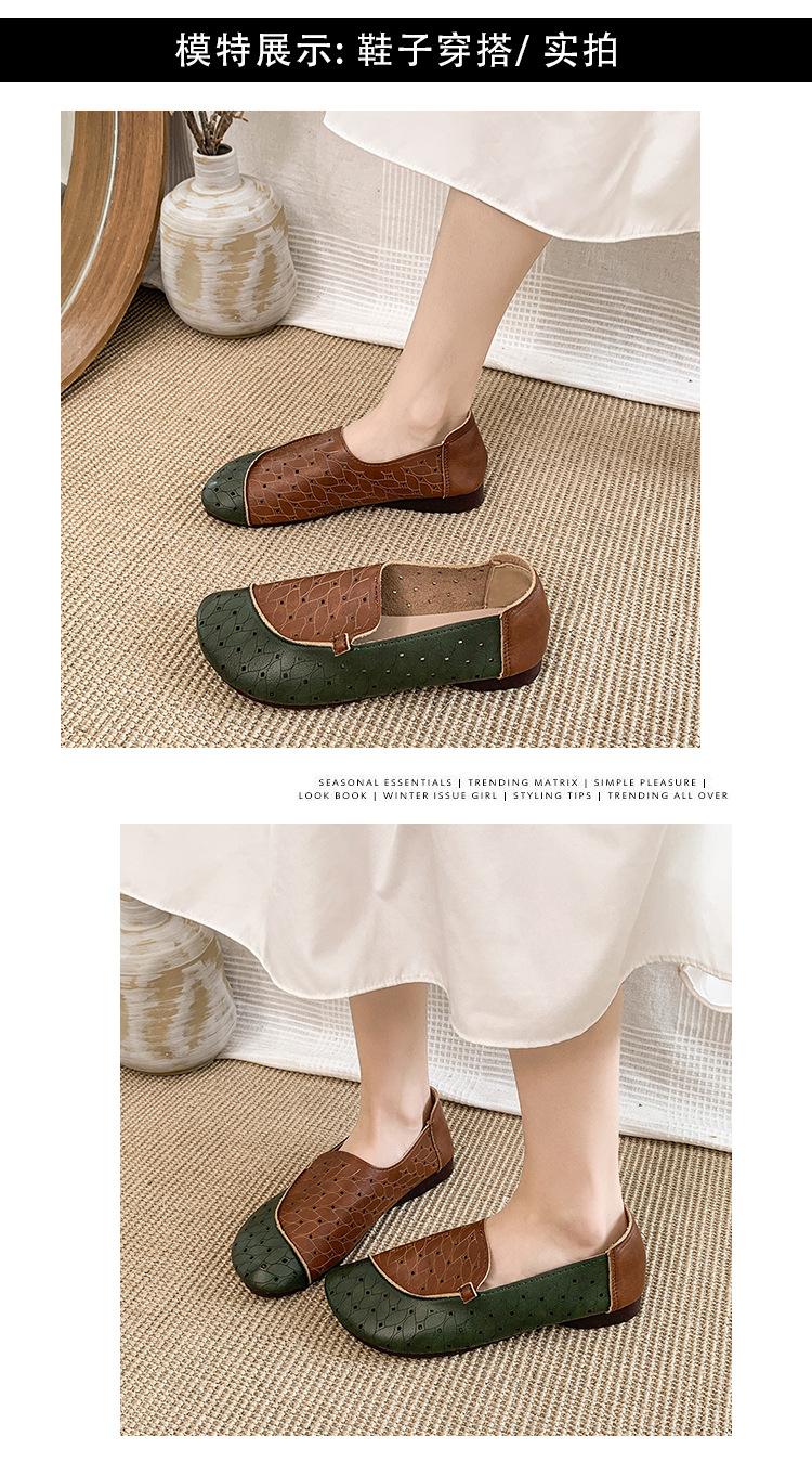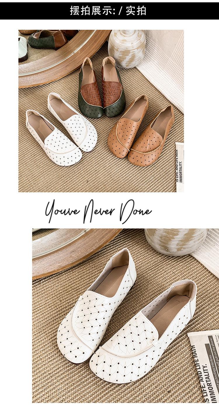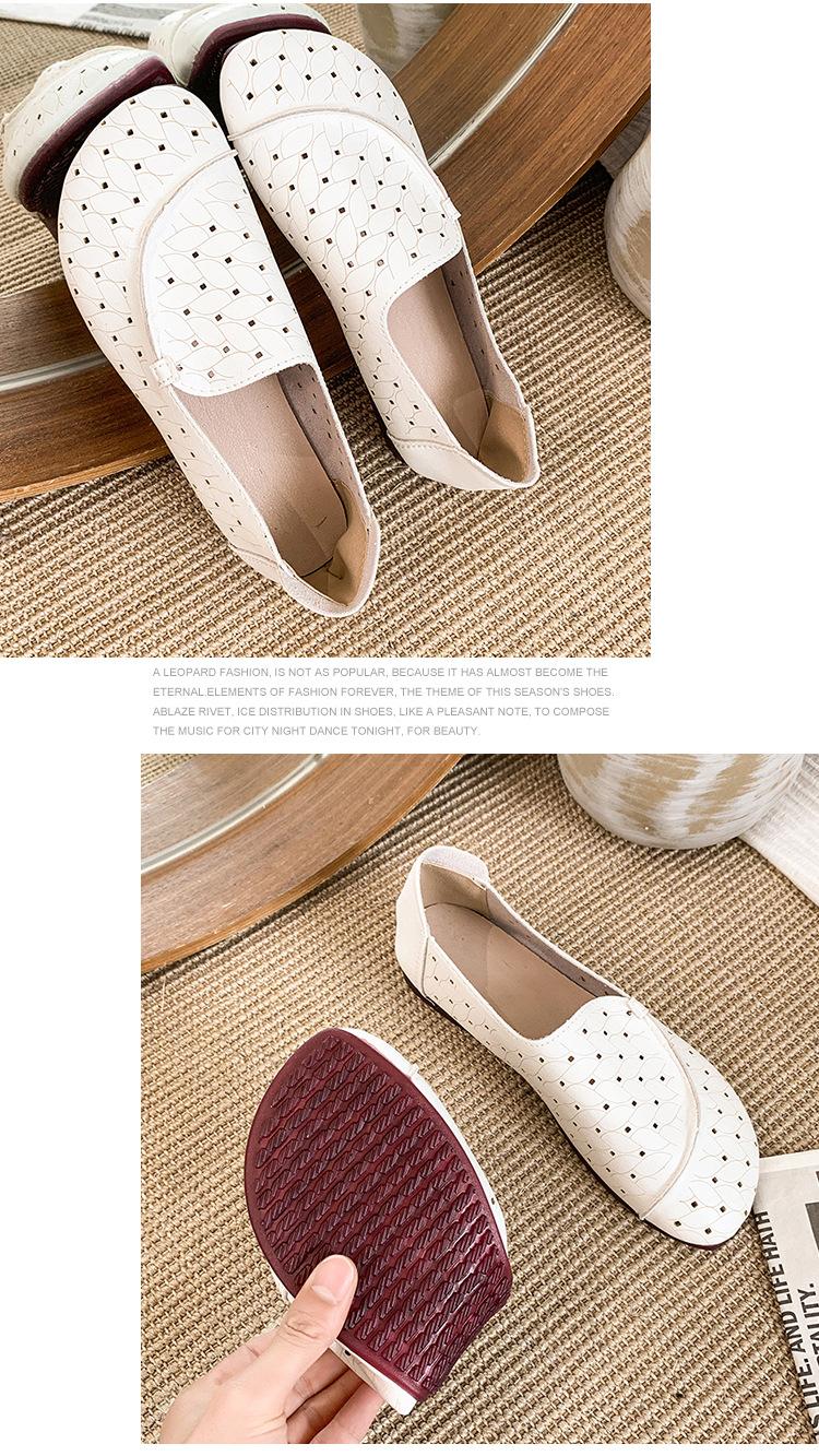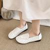 Zapatos de Mamá de Cuero Suave Suela Suave Sandalias Vintage Nuevos Planos Slip-on Zapatos de Agujeros Transpirables Zapatos Individuales para Mujeres de Mediana Edad y Ancianas