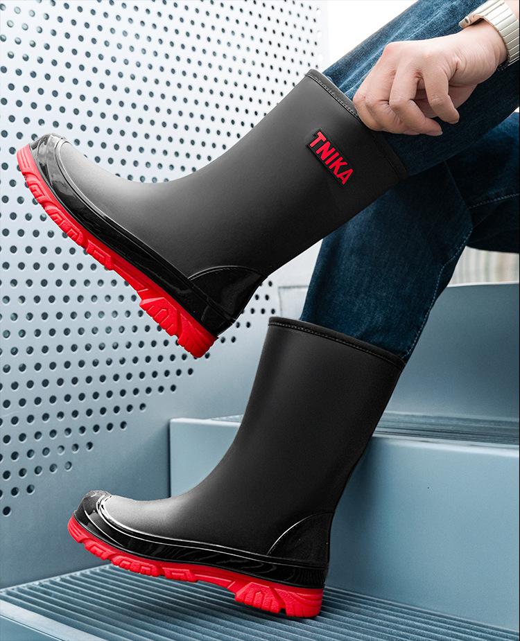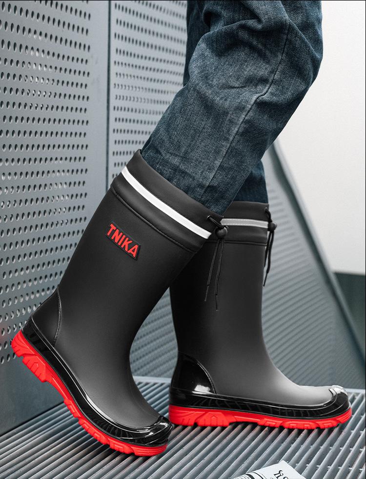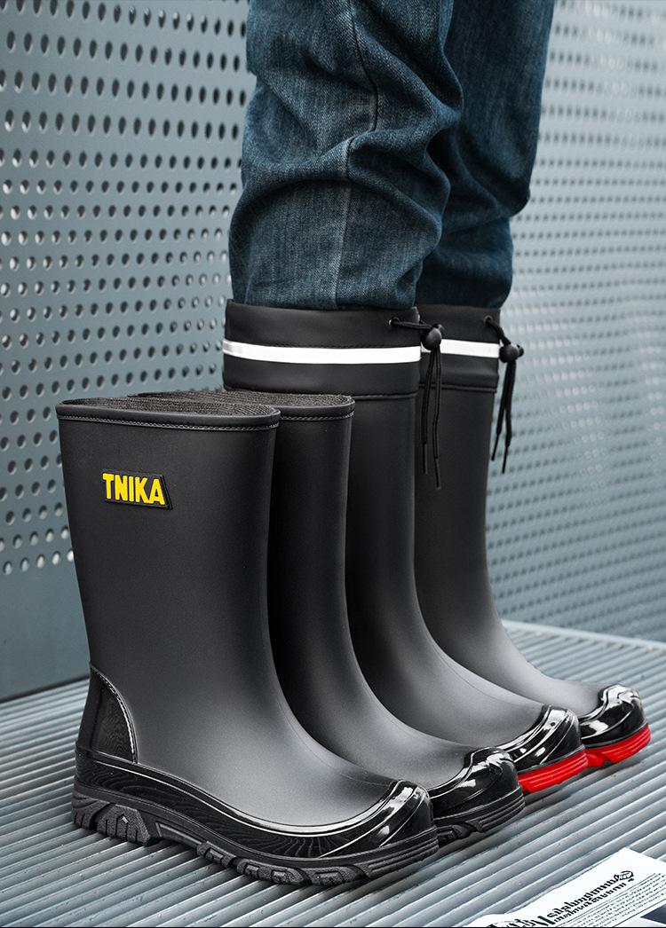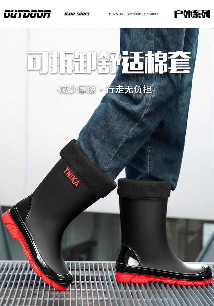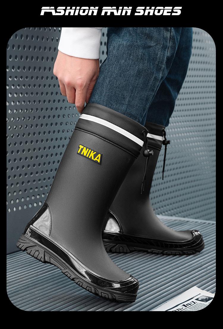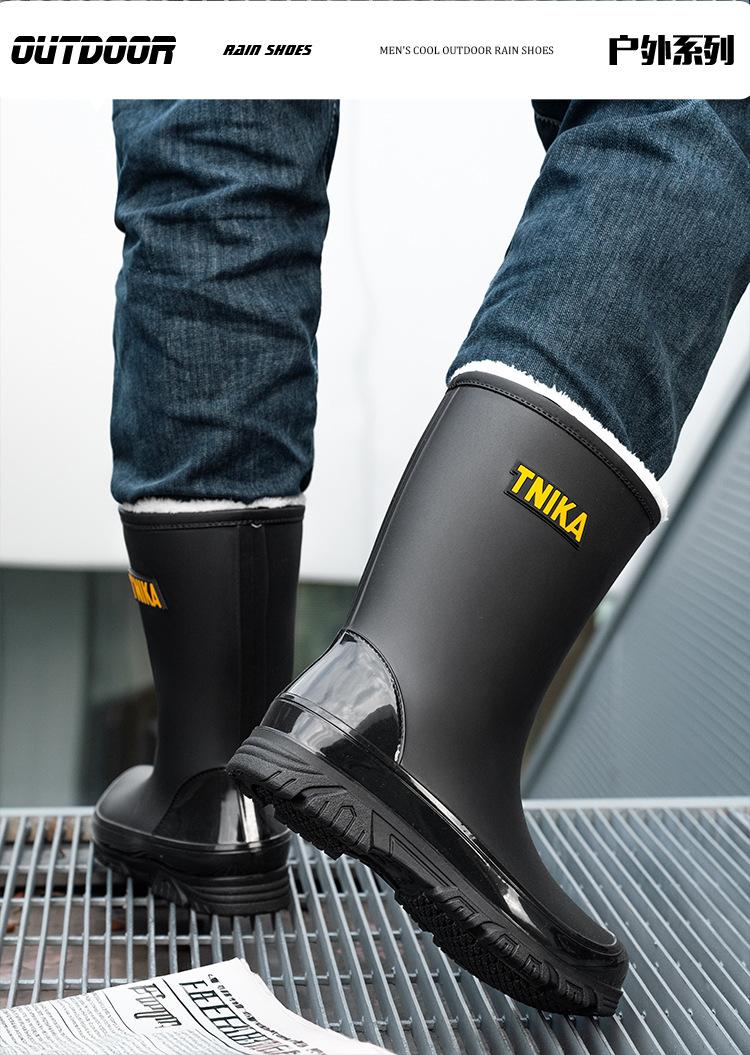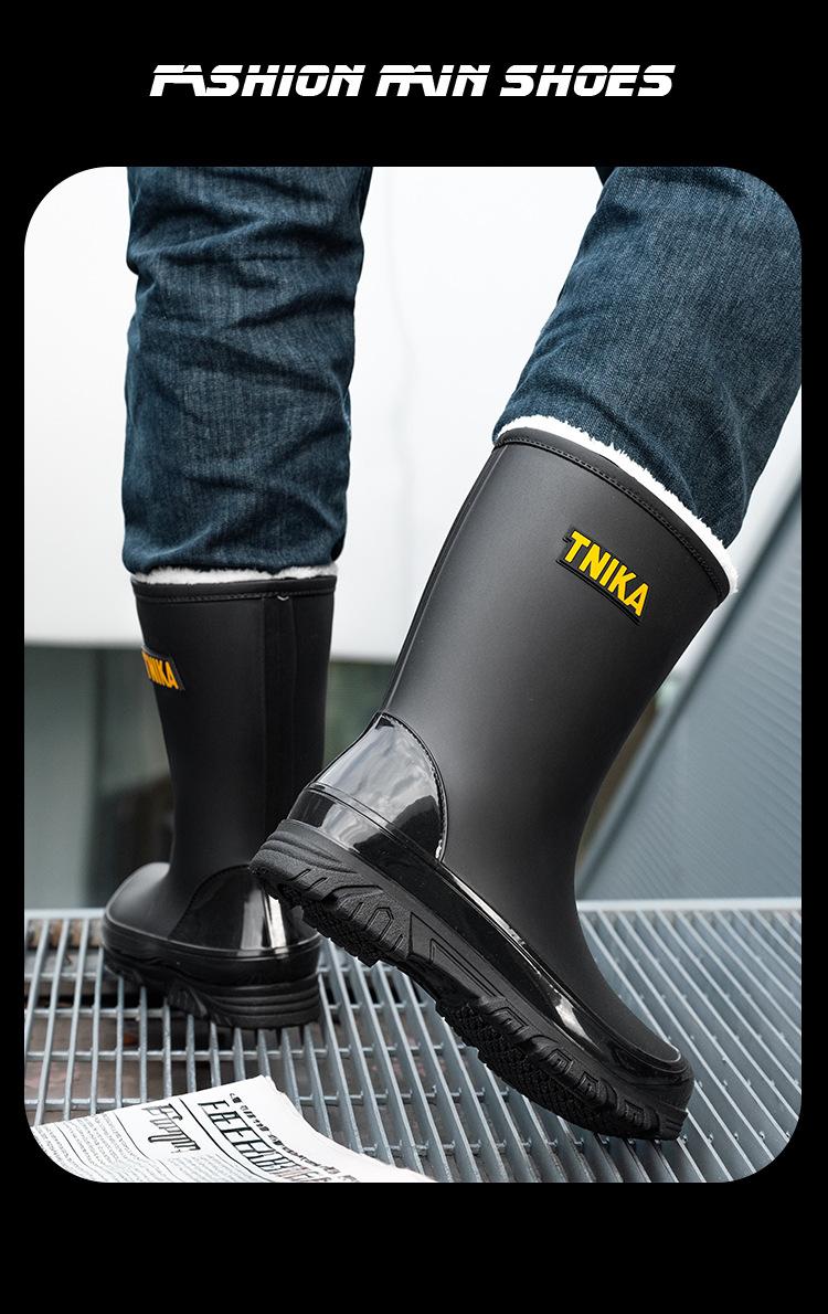 Botas de Lluvia de Moda para Hombre Comercio Exterior Zapatos para Agua Media Caña Impermeables Botas de Lluvia con Forro Polar Antideslizantes Zapatos de Goma Impermeables para Adulto