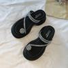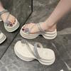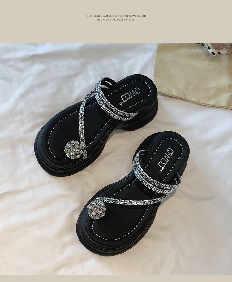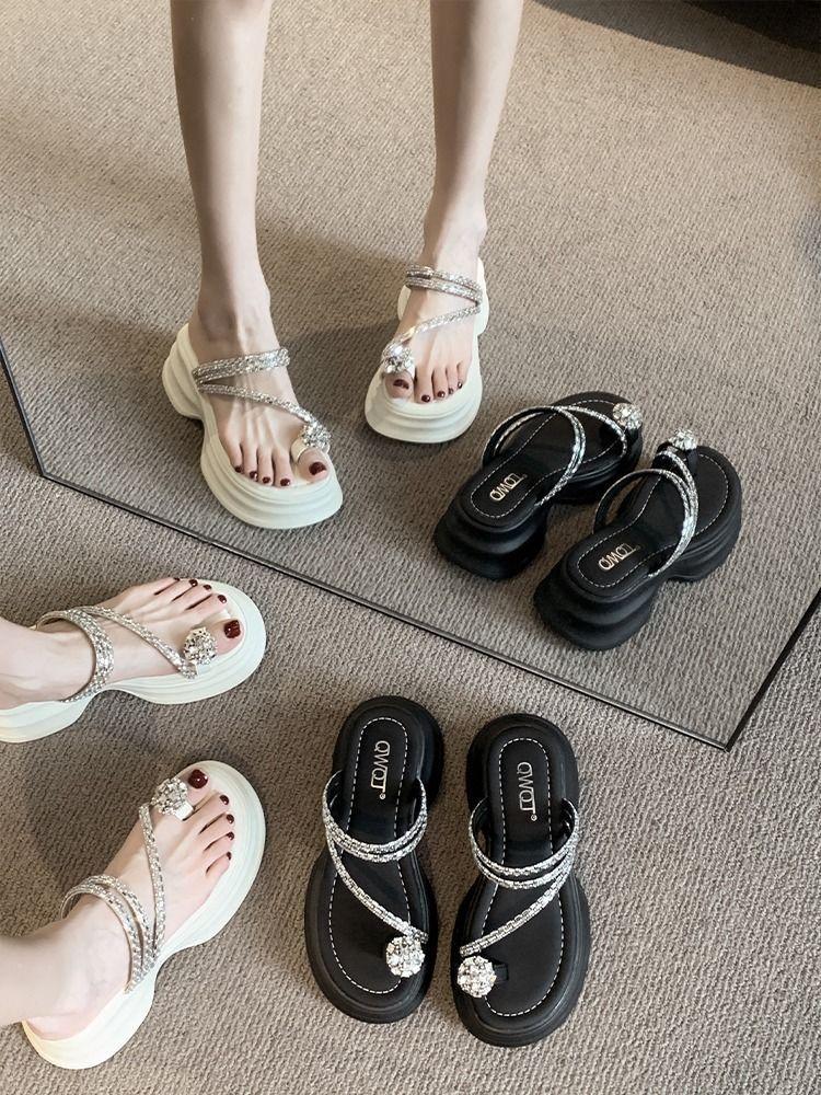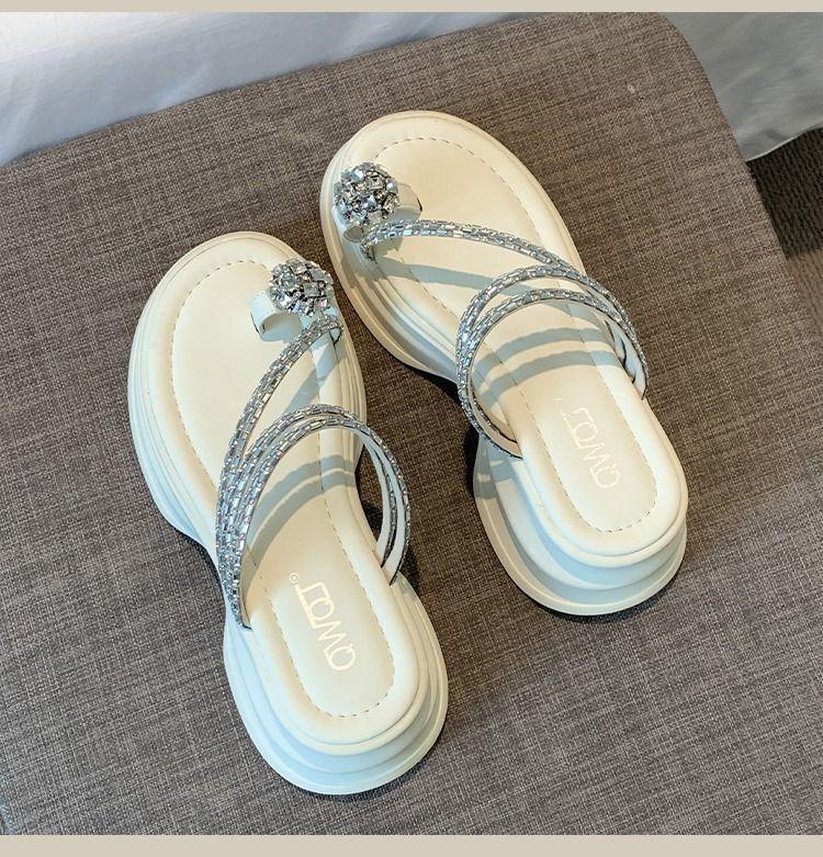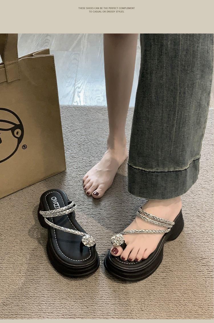Sandalias de verano con anillo para el dedo del pie, pedrería, suela gruesa, moda, realzantes de la altura, estilo coreano, versátiles para exteriores, diarias, petite, nuevo