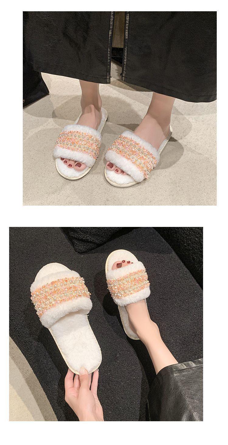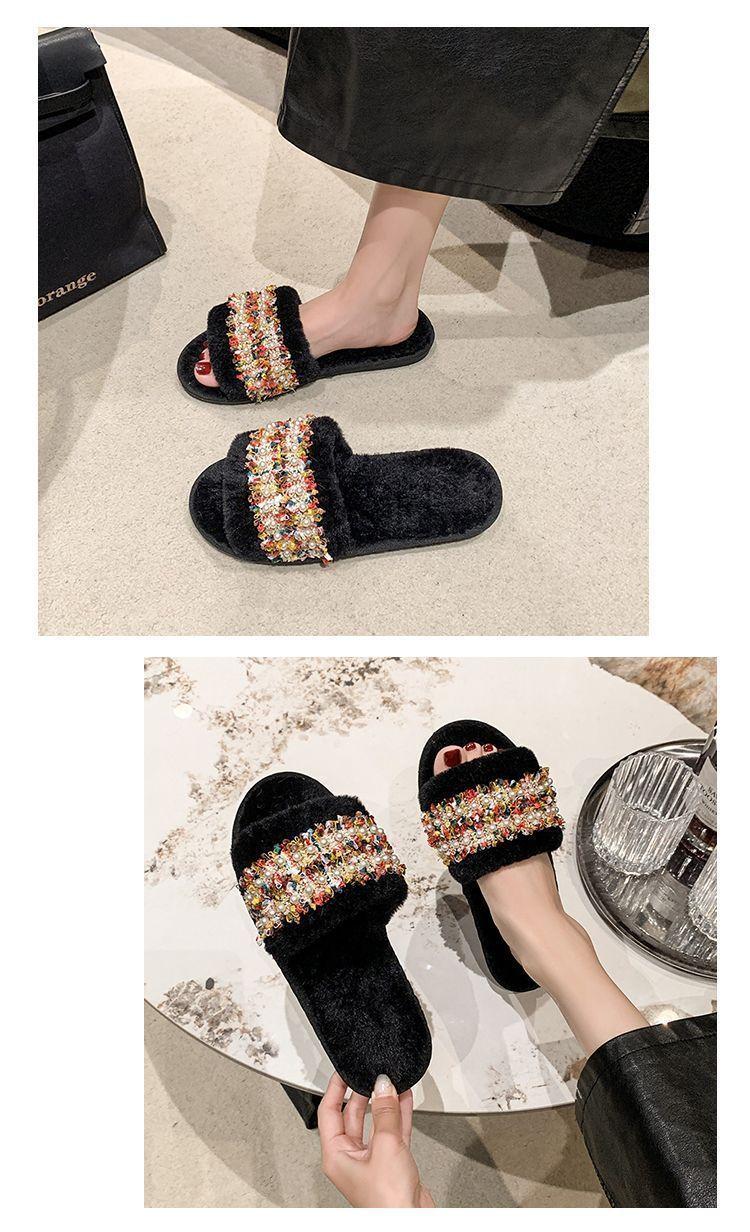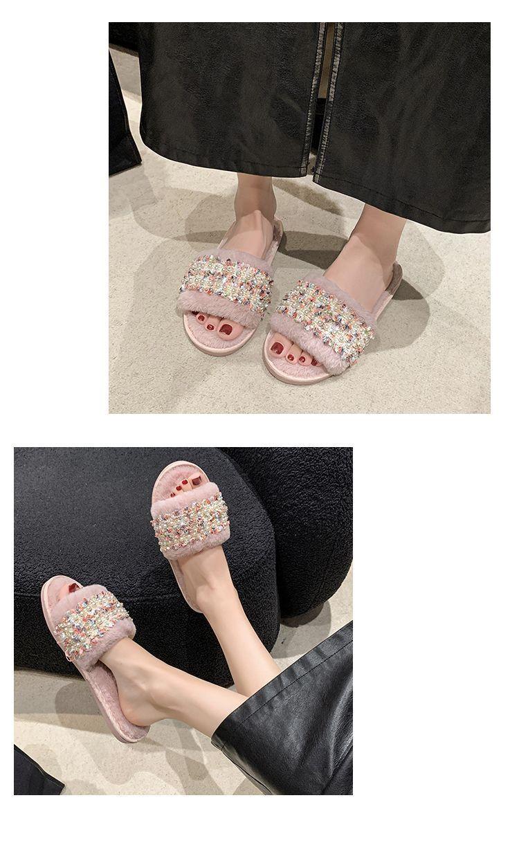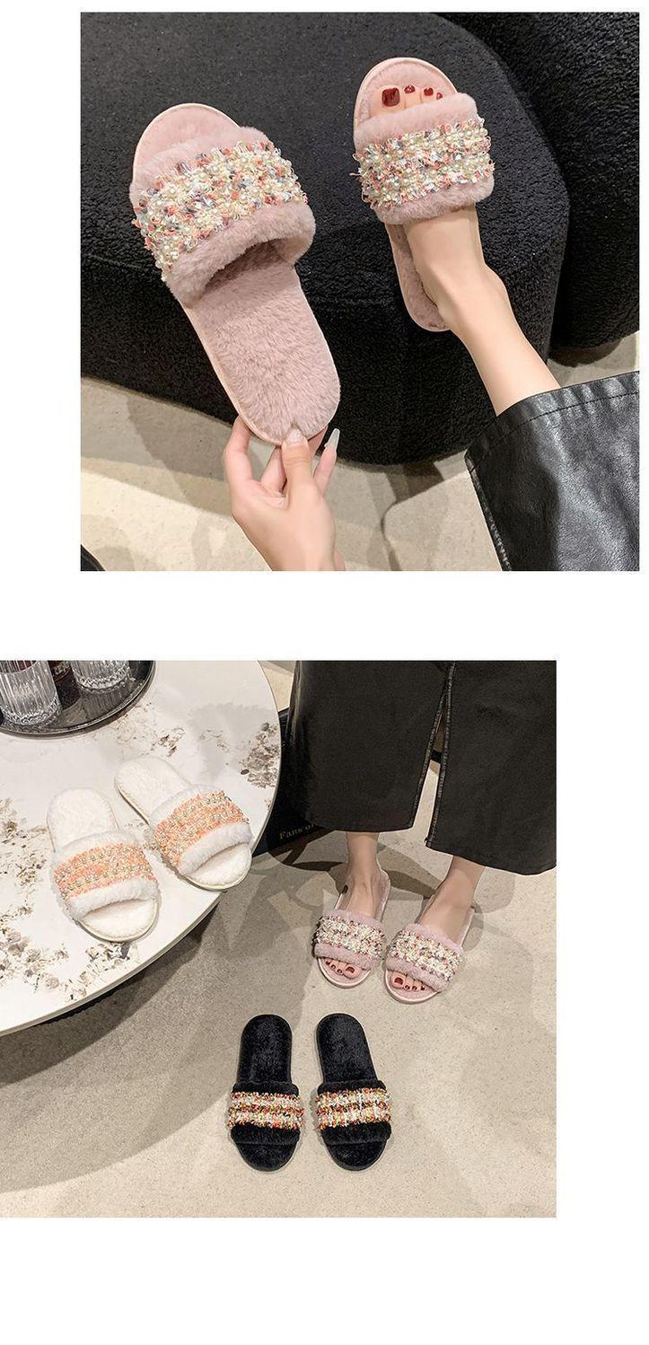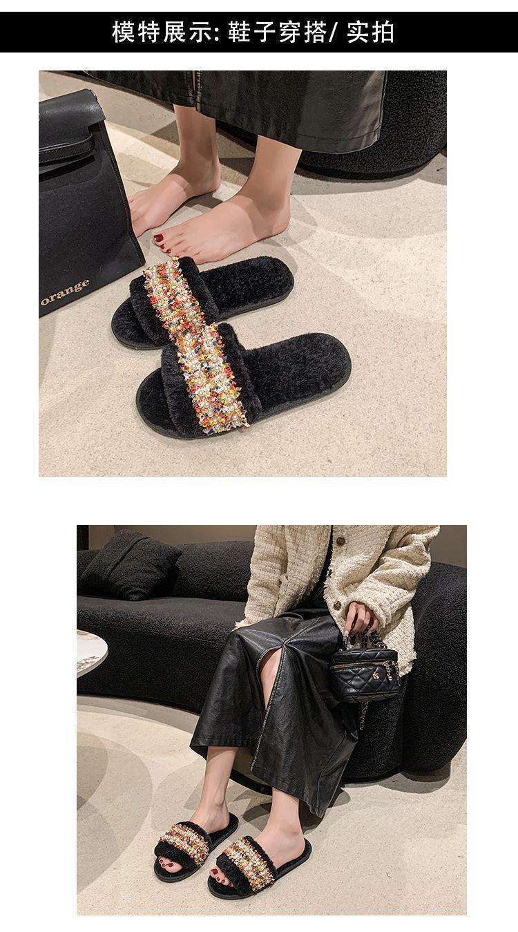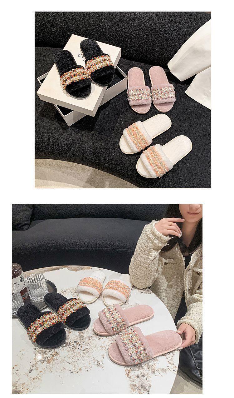 Pantuflas Casuales Planas de Algodón con Una Tira de Forro Polar 2025 Nueva Moda de Celebridad de Internet Otoño/Invierno Versátiles para Casa Pantuflas Peludas para Mujer