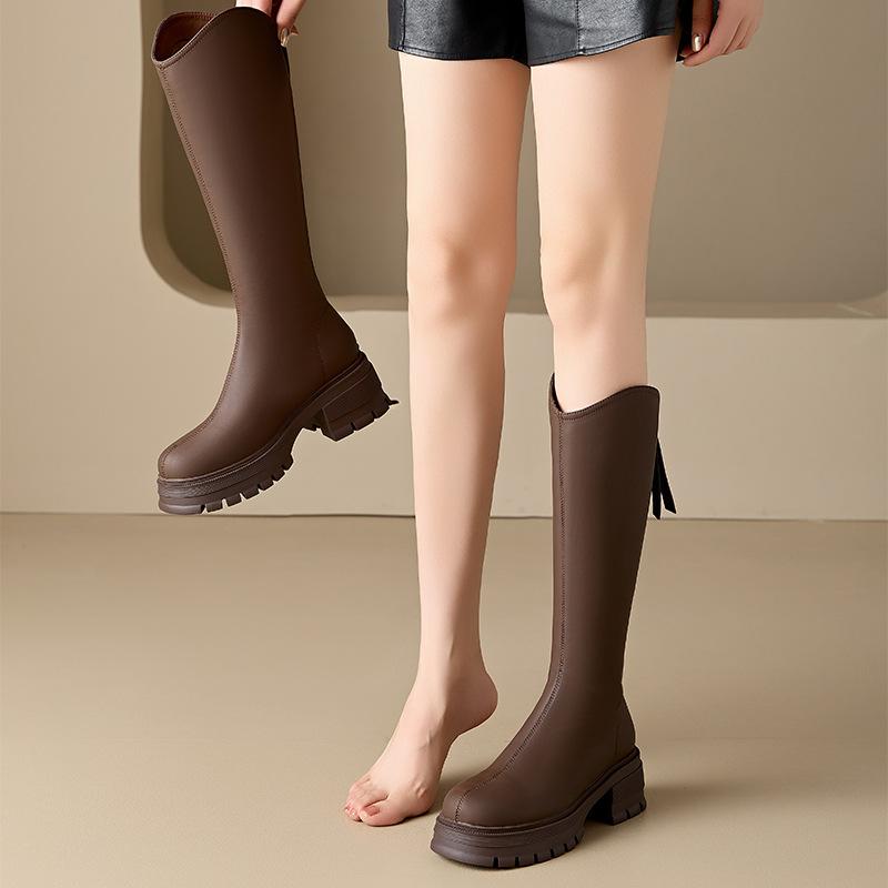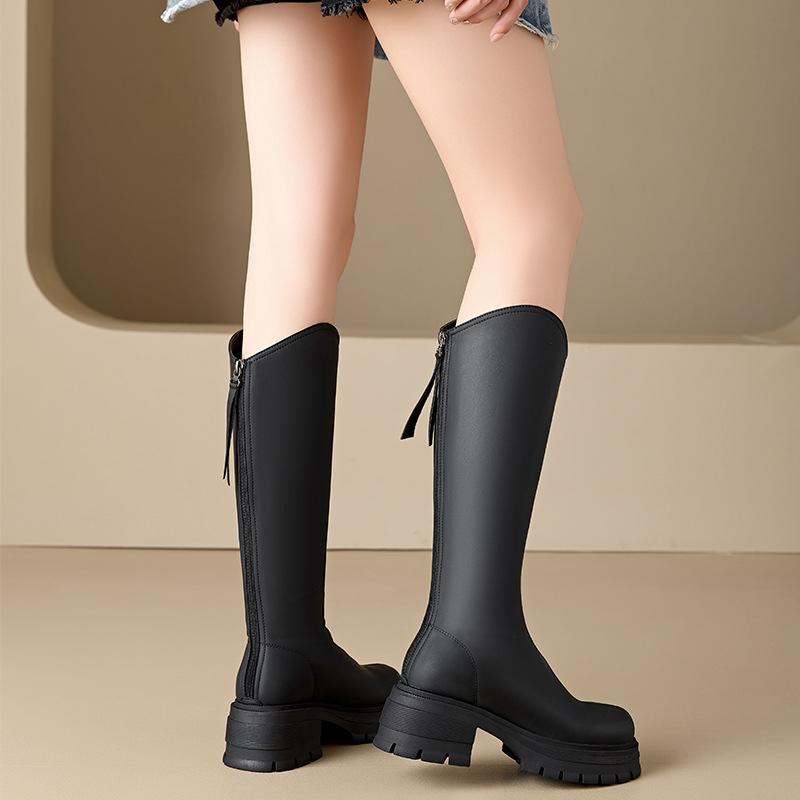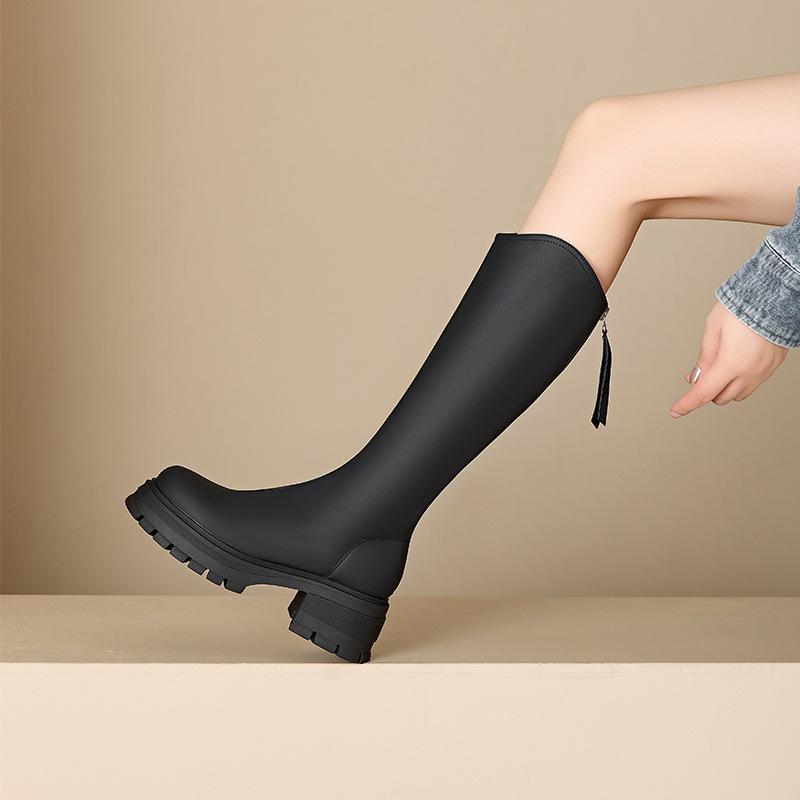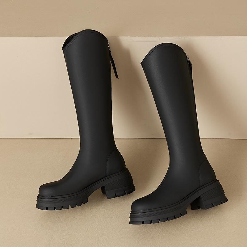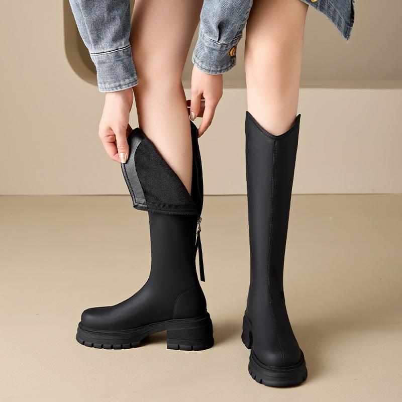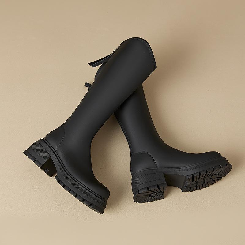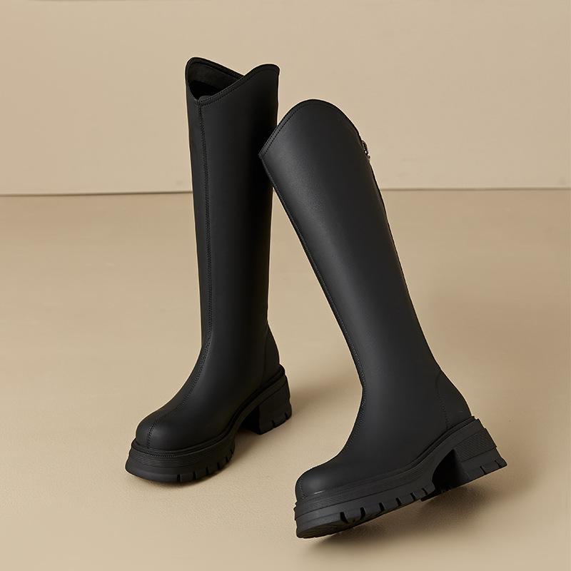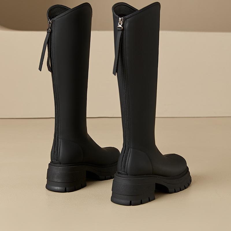 Moda Coreana Botas Largas Sobre la Rodilla Mujer Negro Suela Gruesa Aumento de Altura Botas de Caballero Punta Redonda Tacón Grueso Botas Versátiles Venta al por Mayor