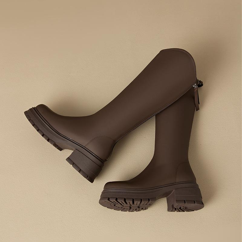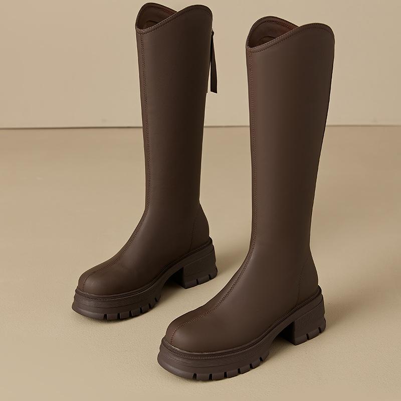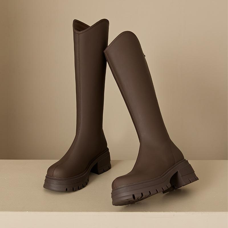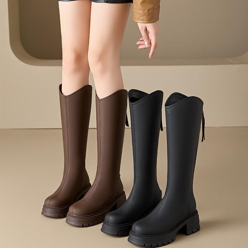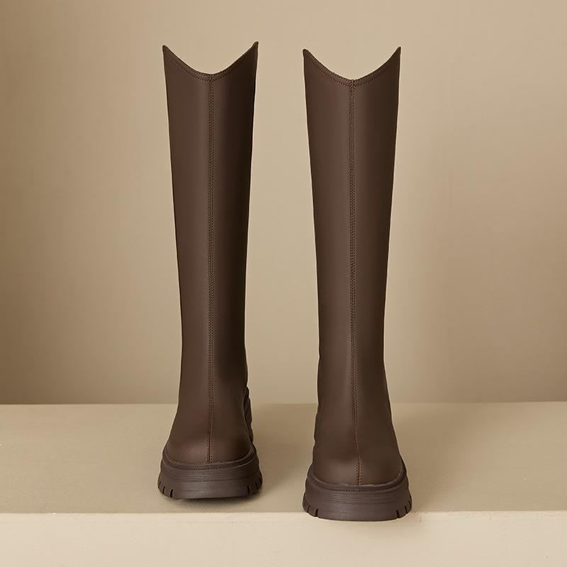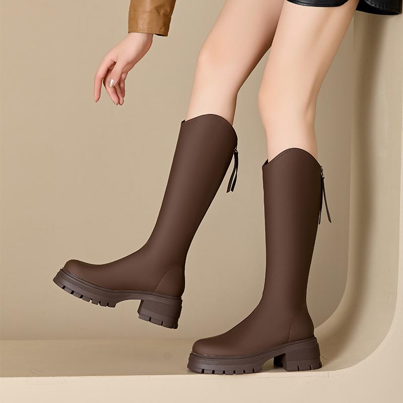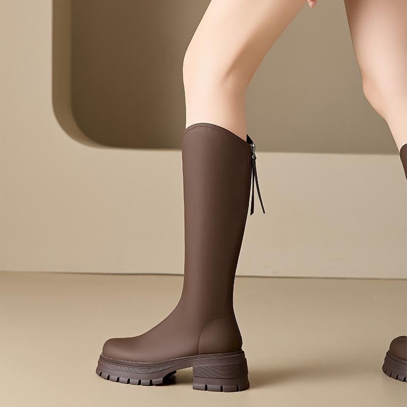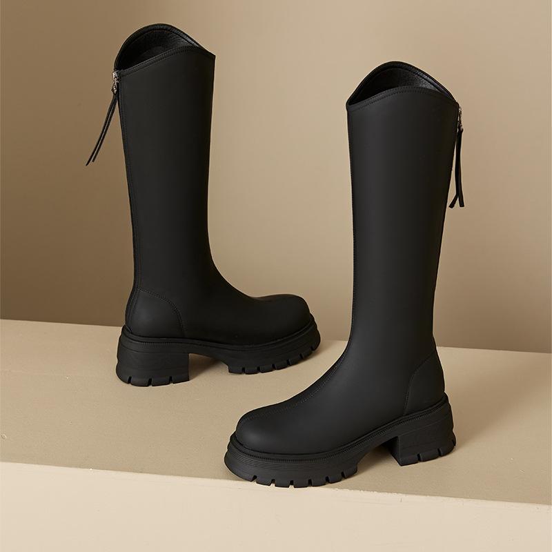 Moda Coreana Botas Largas Sobre la Rodilla Mujer Negro Suela Gruesa Aumento de Altura Botas de Caballero Punta Redonda Tacón Grueso Botas Versátiles Venta al por Mayor