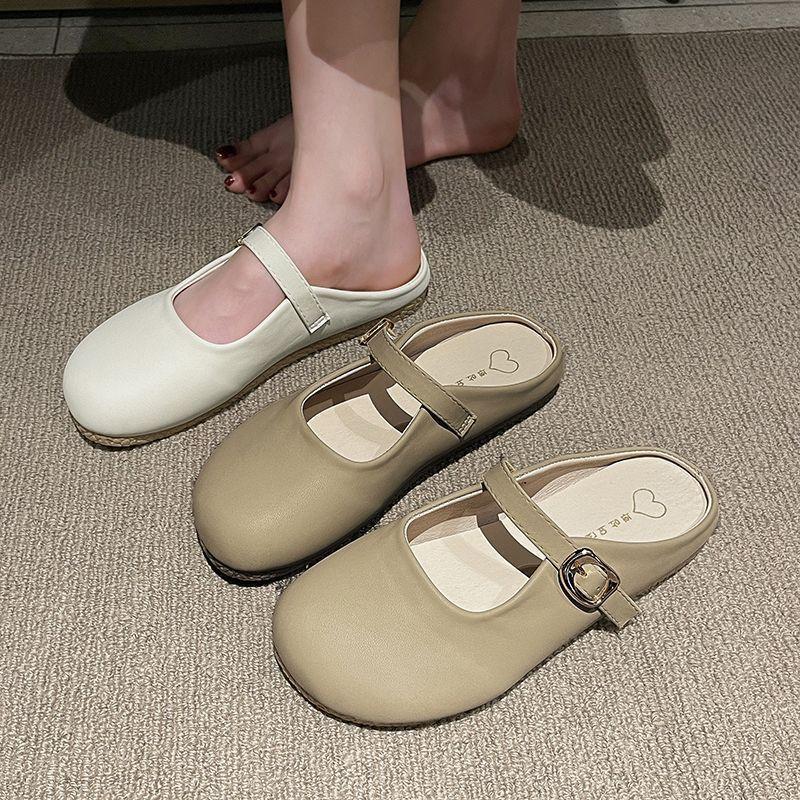 Verano 2025 Nuevas Sandalias Planas Antideslizantes de Moda Versátil Suela Suave para Mujeres Embarazadas Punta Francesa Zapatillas Medias para Mujer para Uso Exterior
