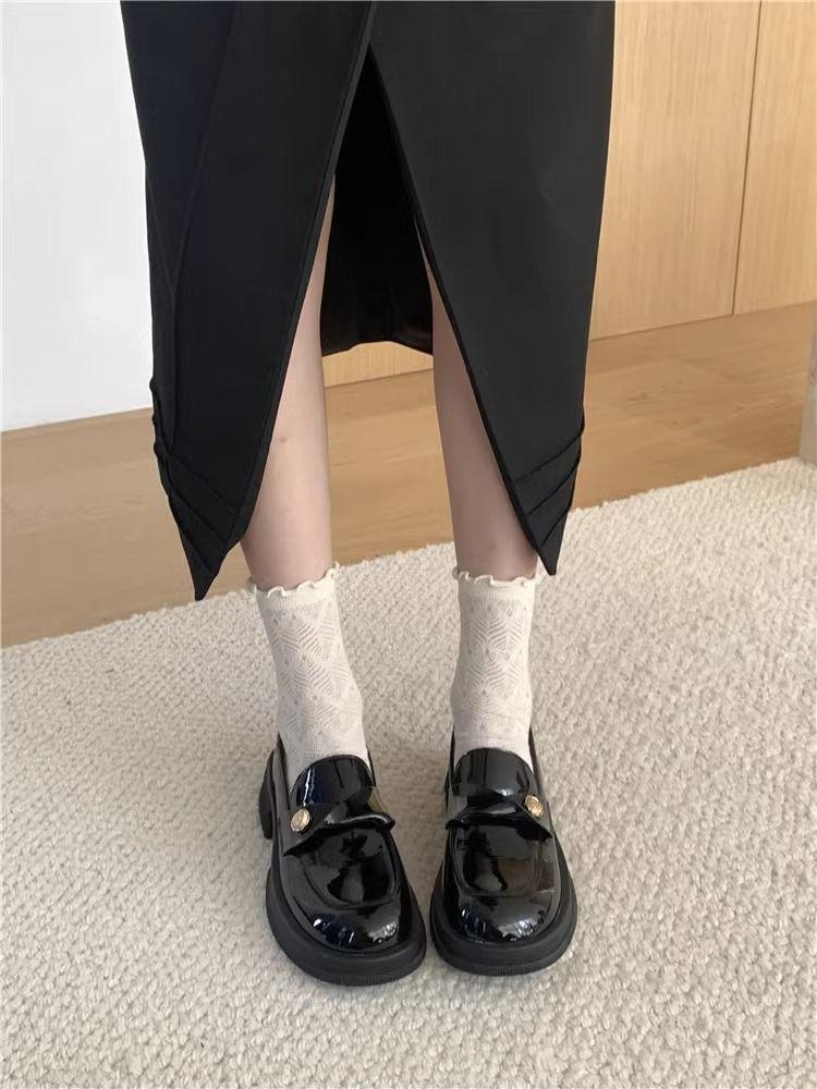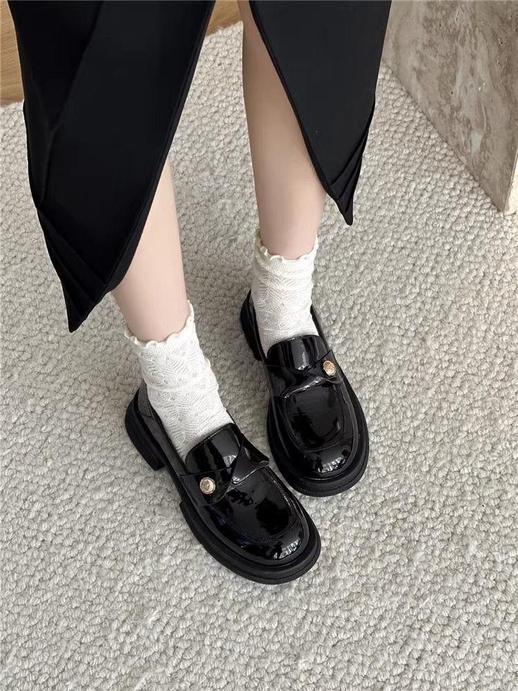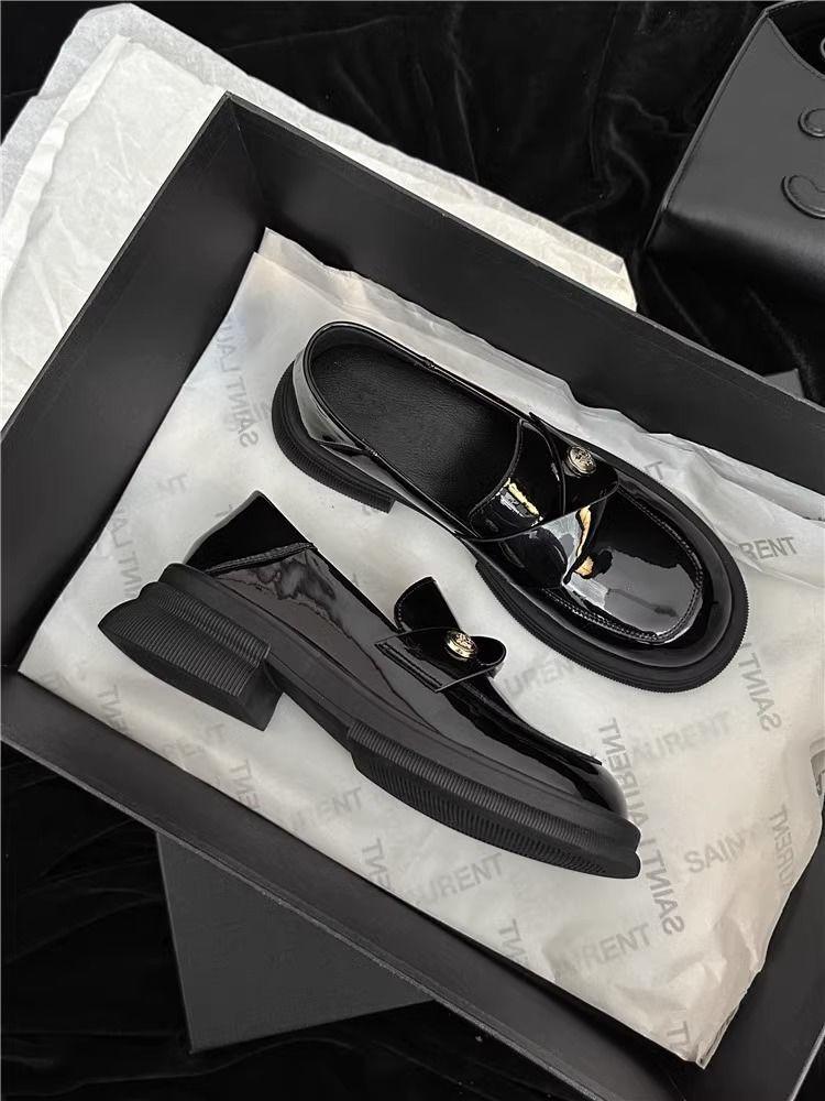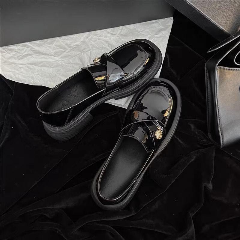 Zapatos de cuero británicos 2023 otoño nuevos zapatos de guisantes con moneda de oro aumentados mocasines de plataforma slip-on moda ins para mujer