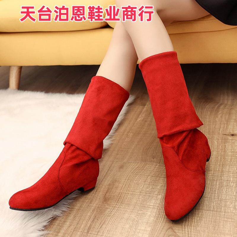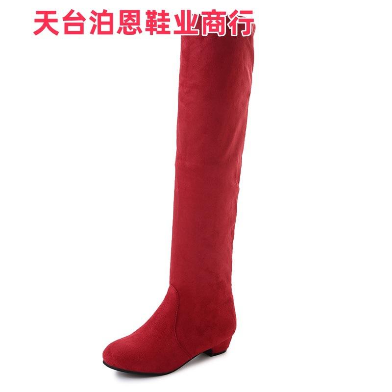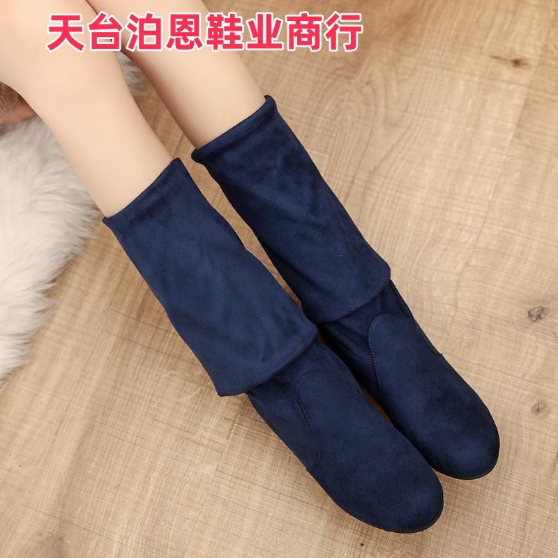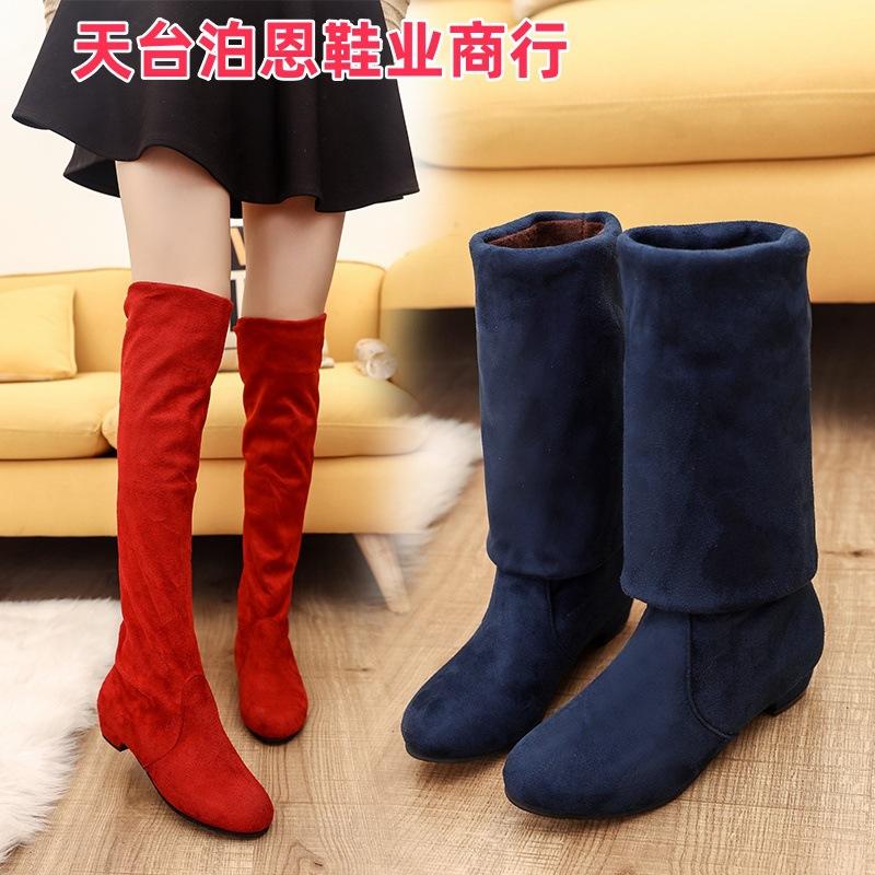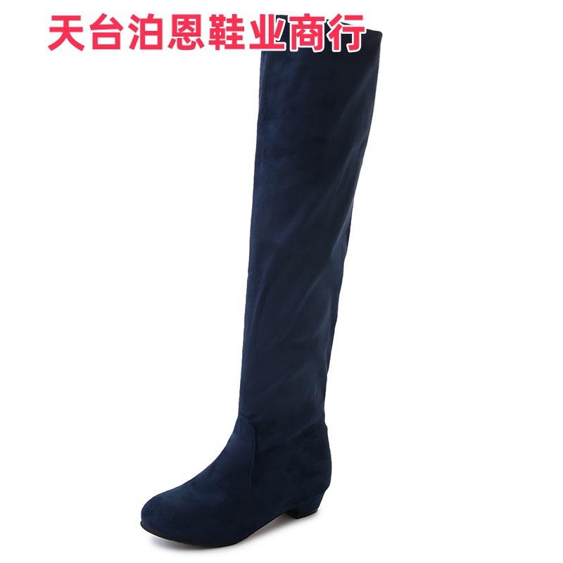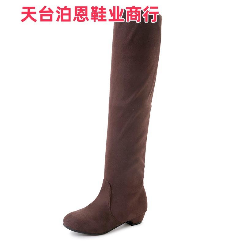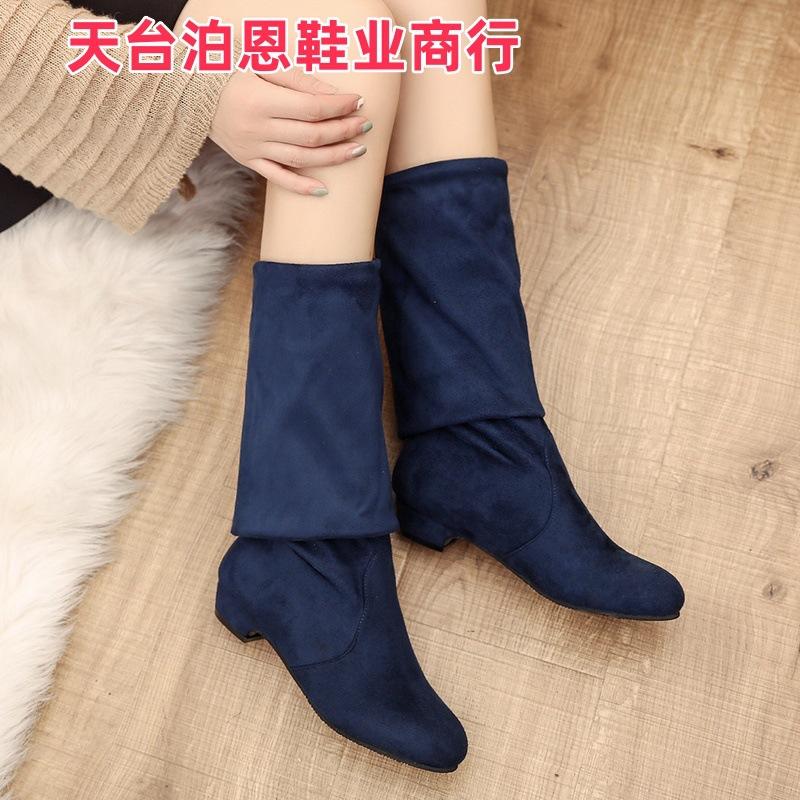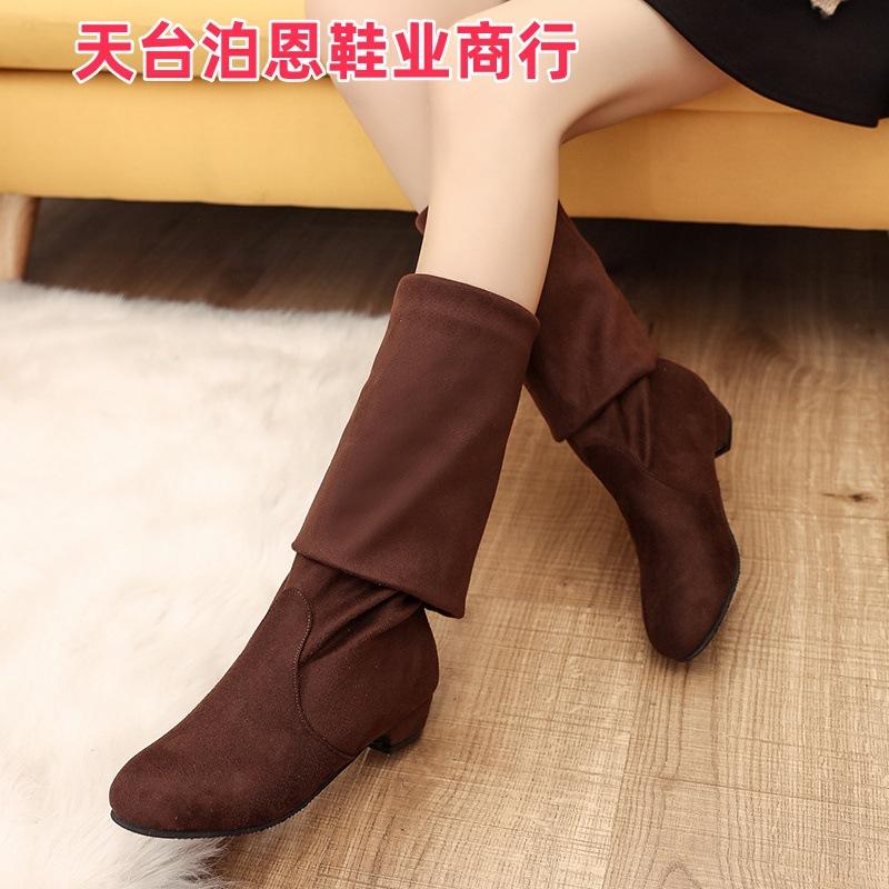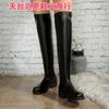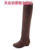 Comercio Exterior Transfronterizo Moda Actual Punta Redonda Botas Nuevas de Cuero para Mujer Otoño Invierno Slip-on 2 Vías Talla Grande Tacón Bajo Botas por Encima de la Rodilla