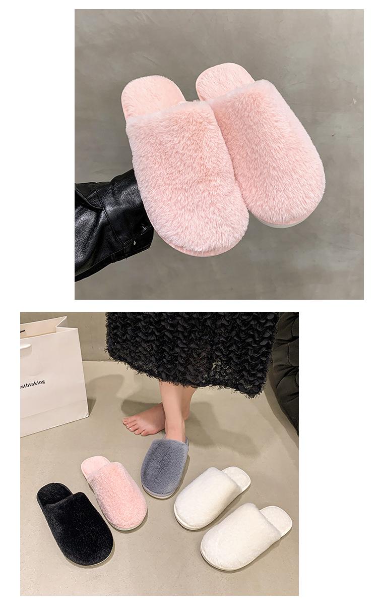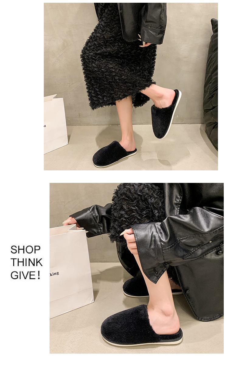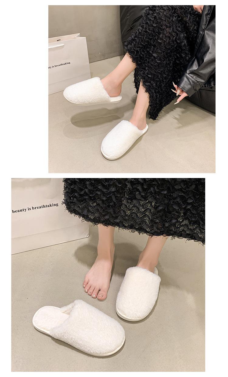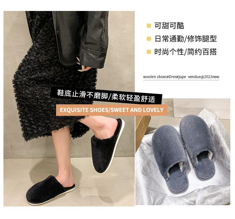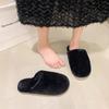 Pantuflas de Lana Simples de Color Sólido con Punta Cerrada para Mujer 2025 Otoño/Invierno Nuevas Hogar Oficina Cómodas Perezosas Casual Algodón