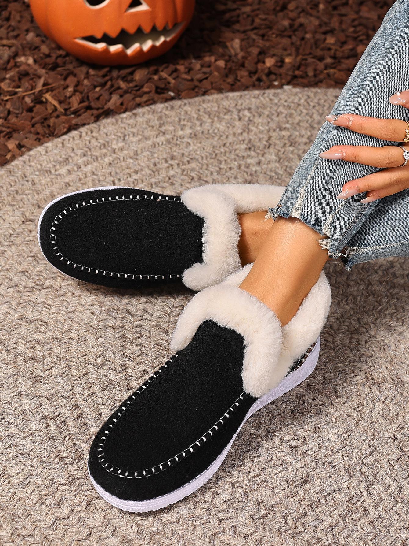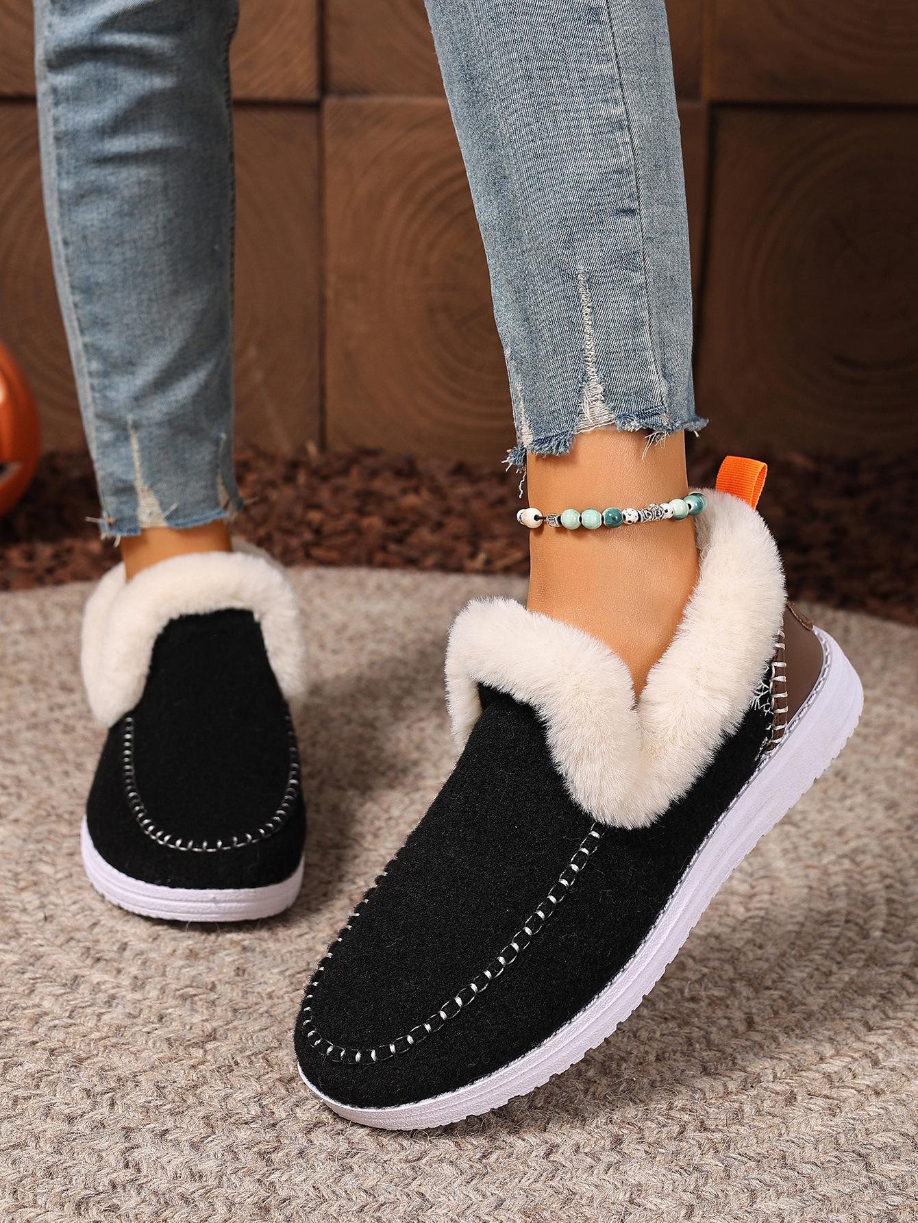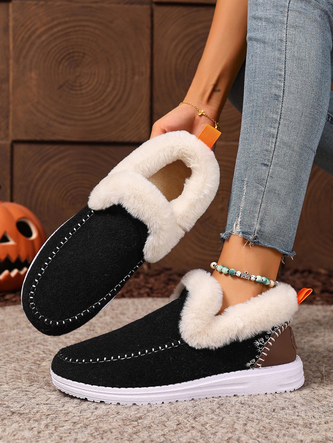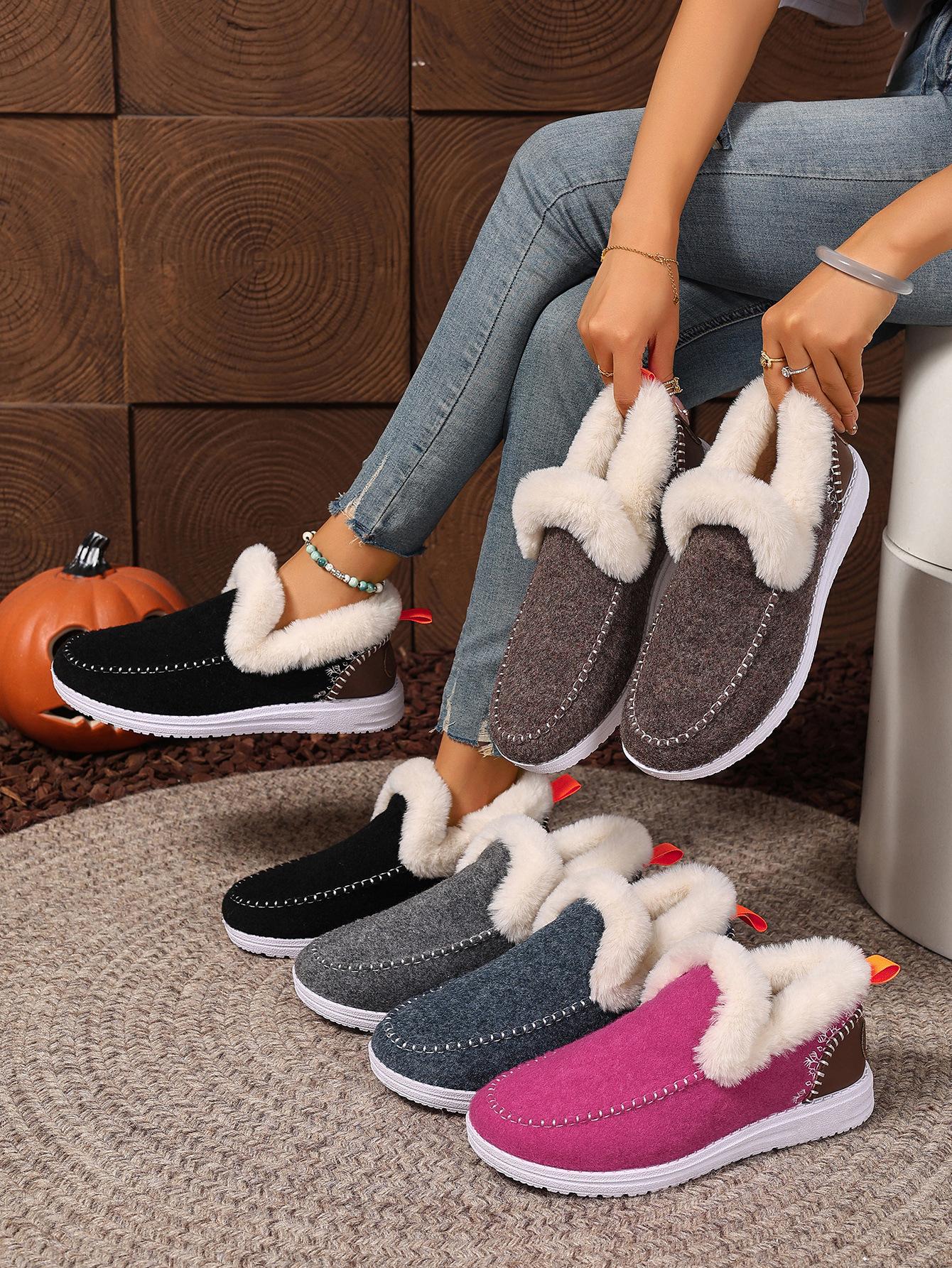 2025 Nuevos Zapatos de Algodón de Invierno para Mujer para Exportación Transfronteriza con Forro Polar Engrosado de Borde Crudo Cálidos Planos Slip-On Zapatos de Algodón para Mujer