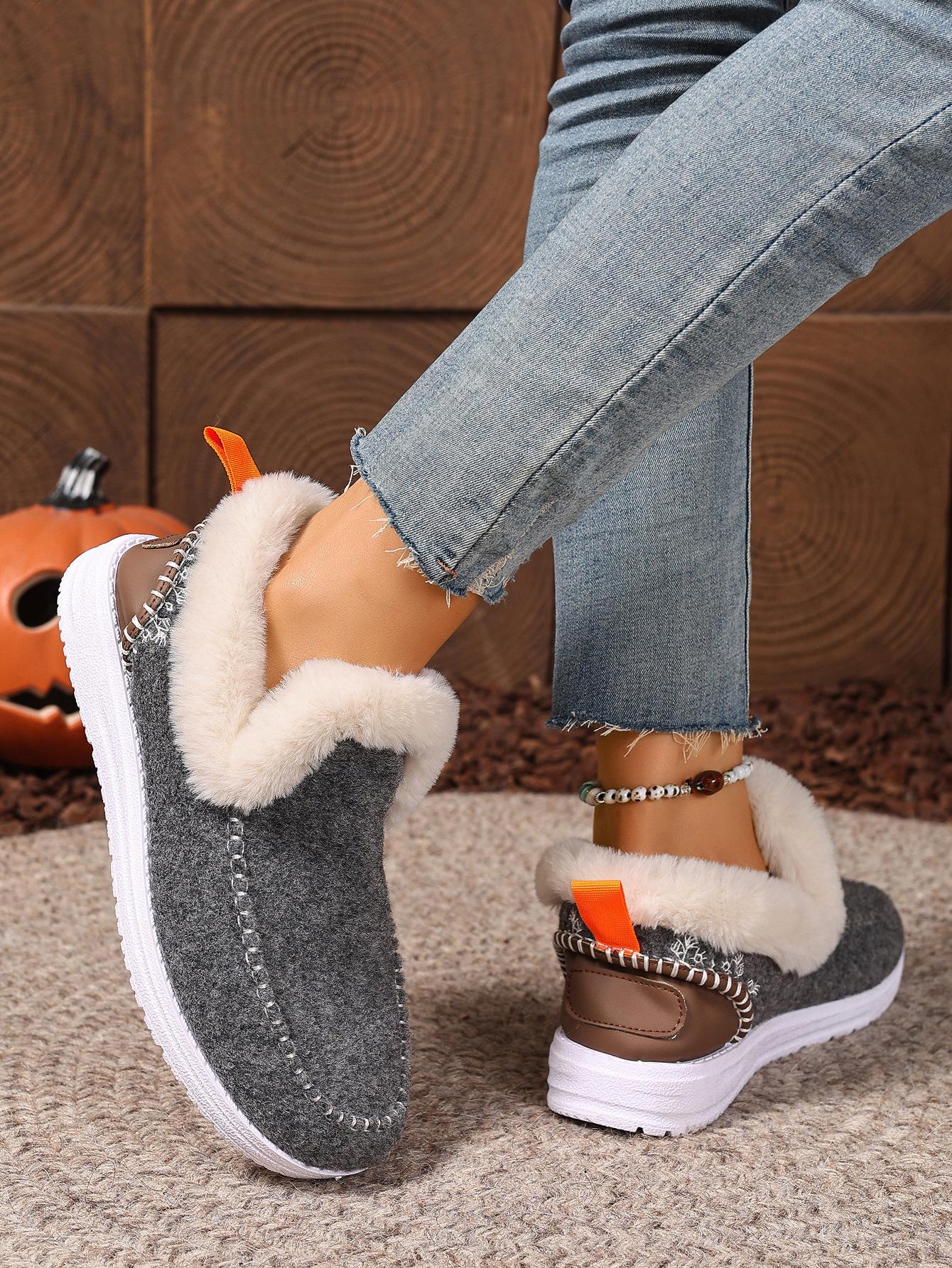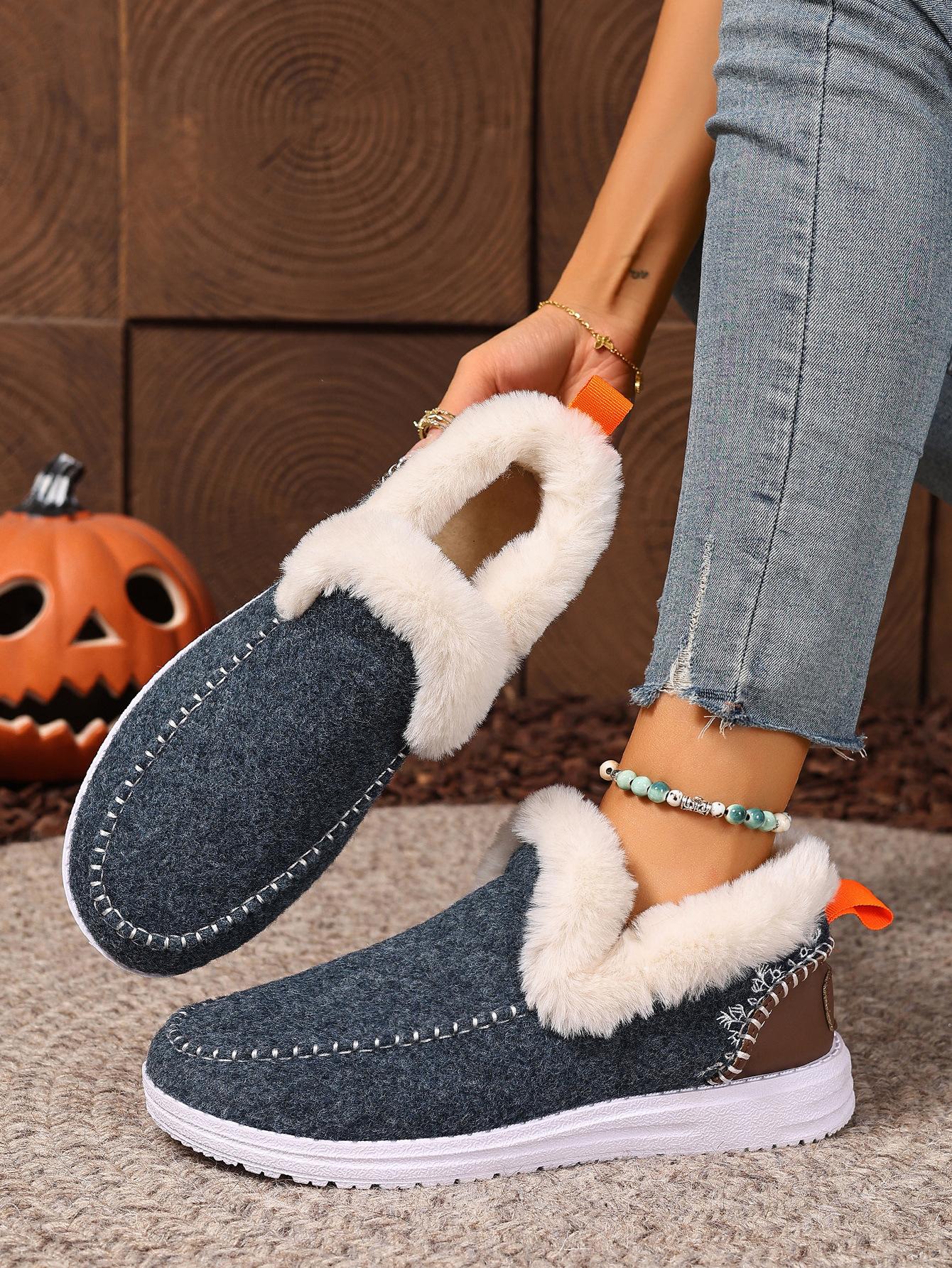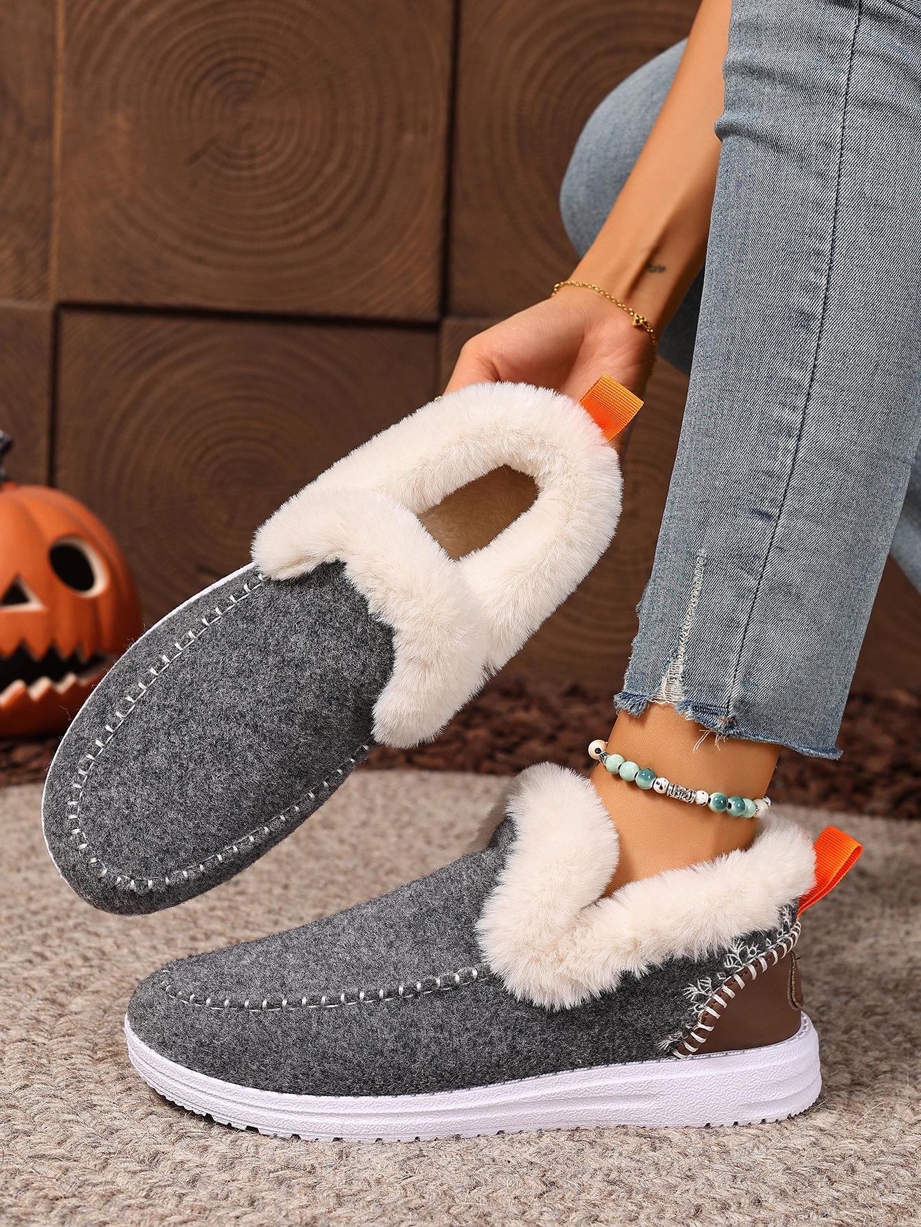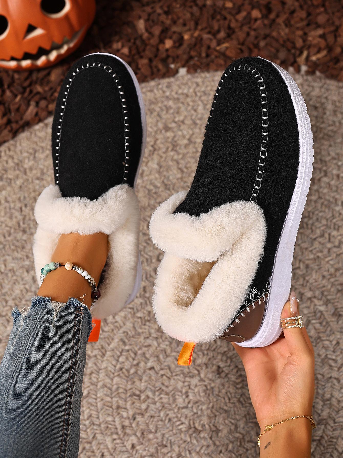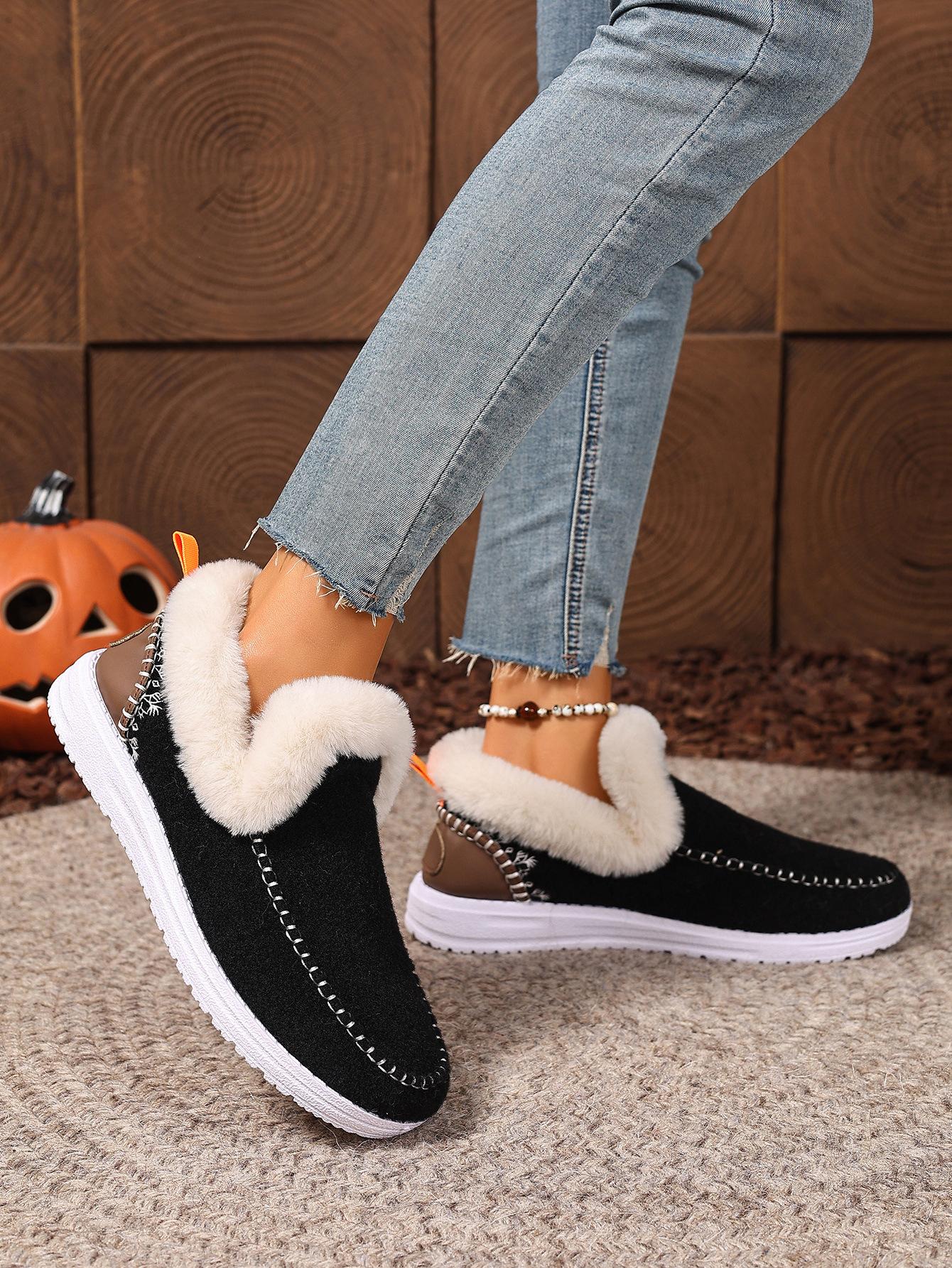 2025 Nuevos Zapatos de Algodón de Invierno para Mujer para Exportación Transfronteriza con Forro Polar Engrosado de Borde Crudo Cálidos Planos Slip-On Zapatos de Algodón para Mujer