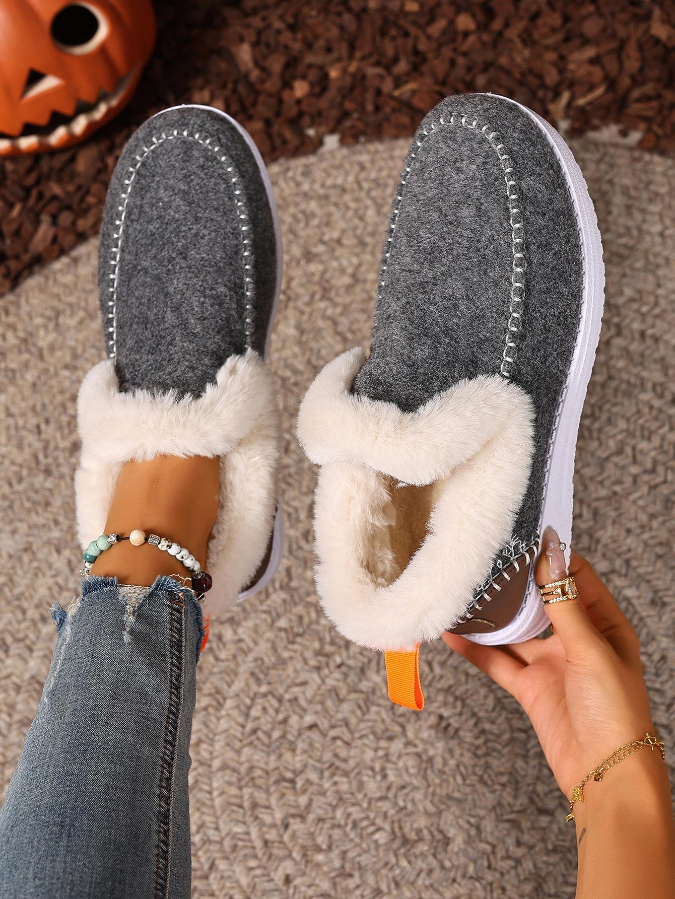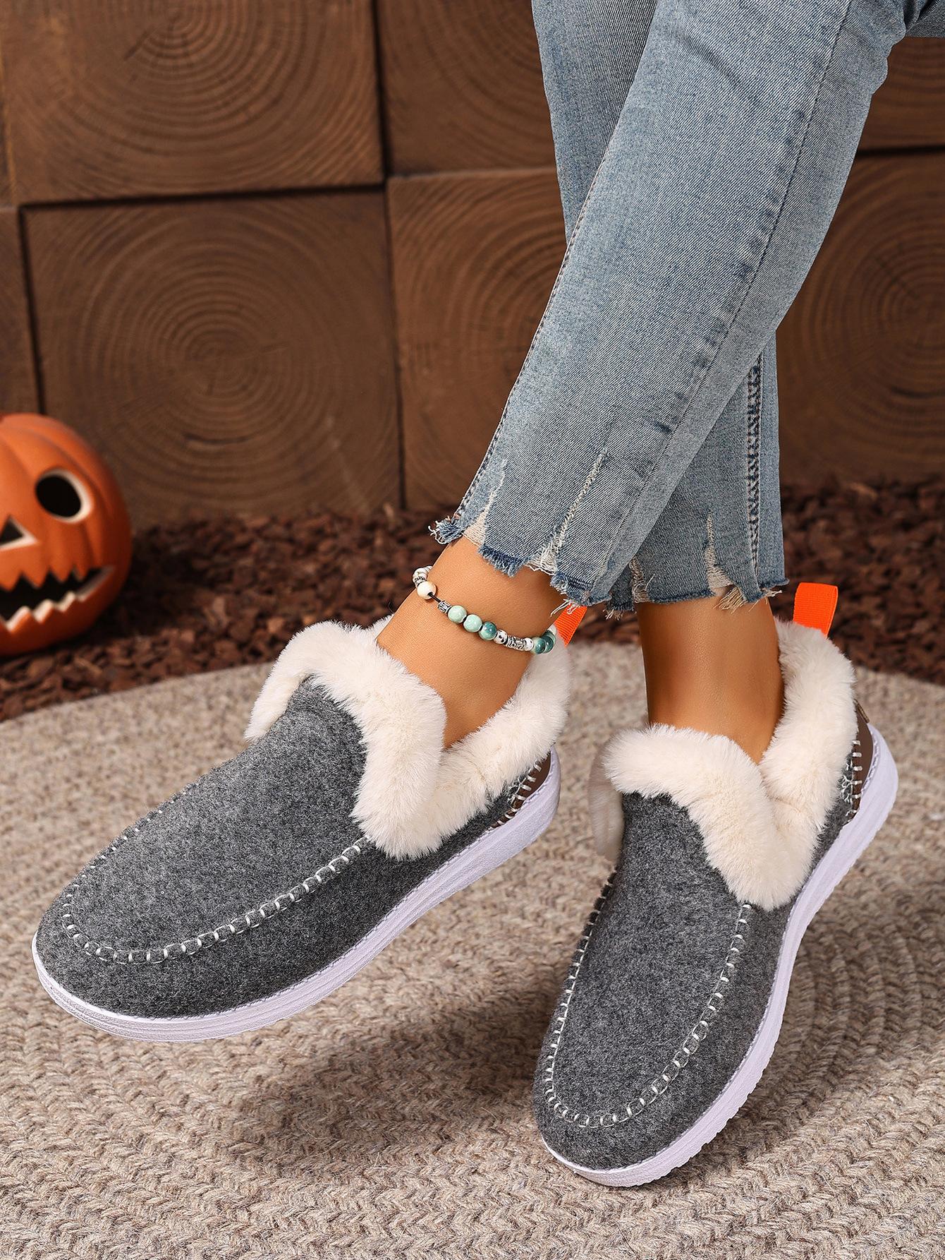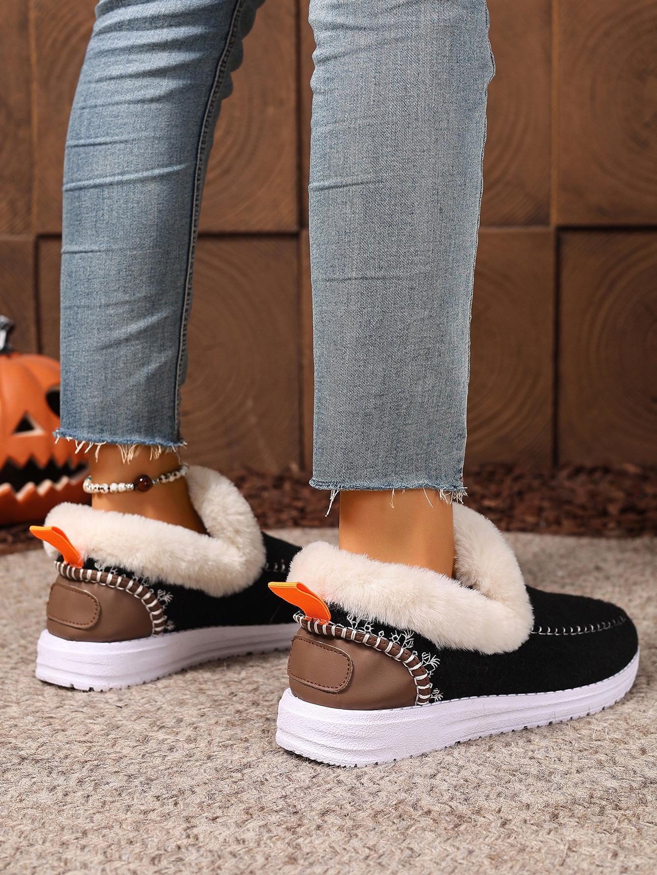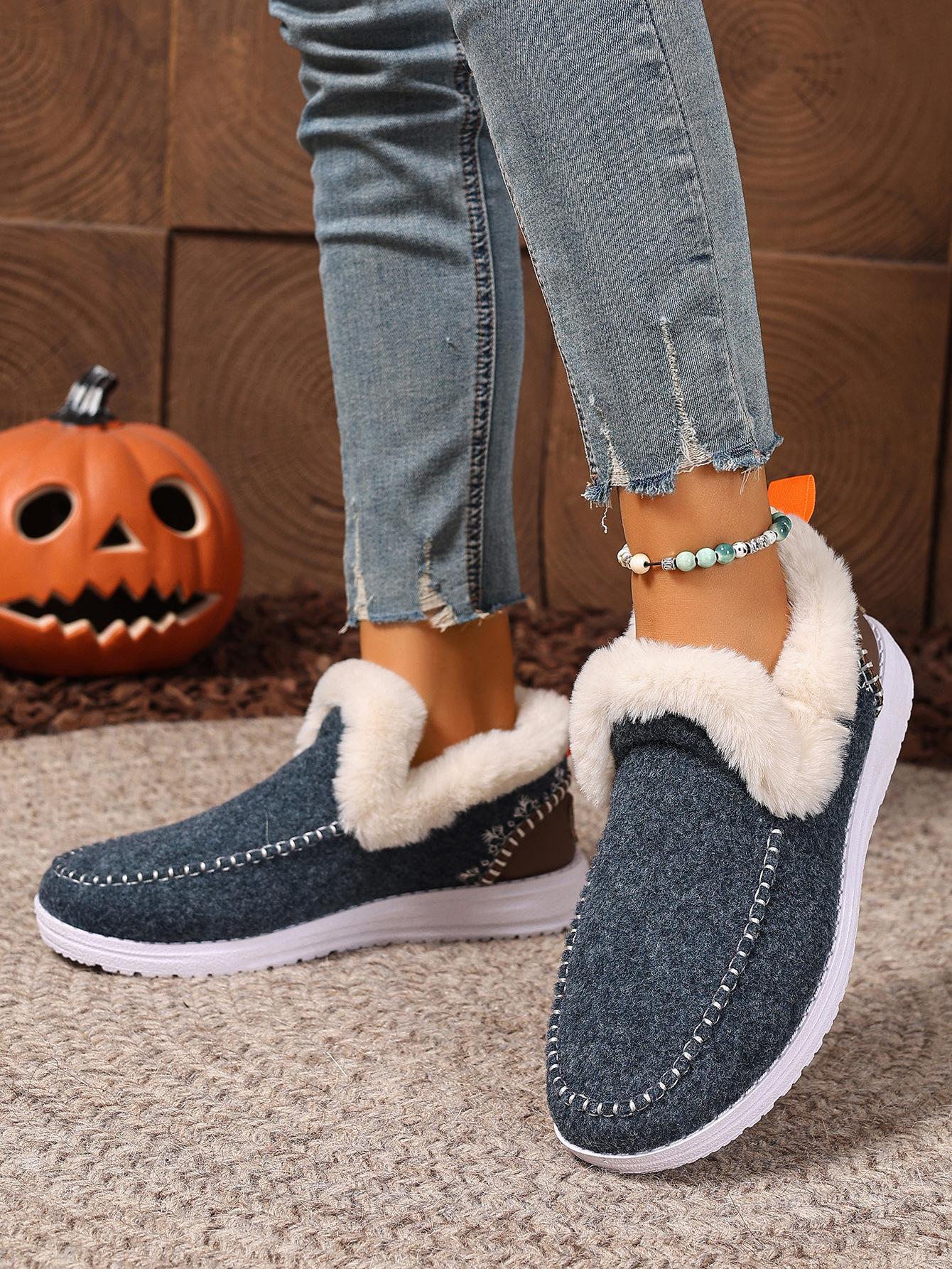 2025 Nuevos Zapatos de Algodón de Invierno para Mujer para Exportación Transfronteriza con Forro Polar Engrosado de Borde Crudo Cálidos Planos Slip-On Zapatos de Algodón para Mujer
