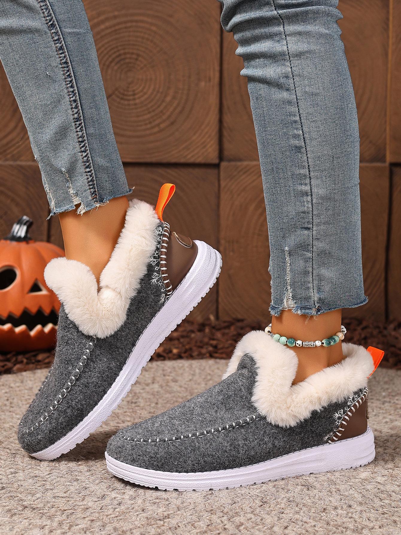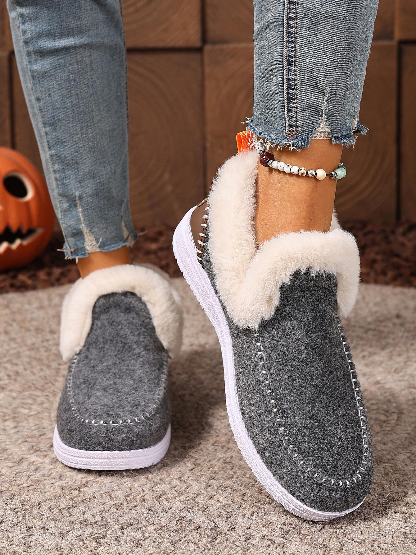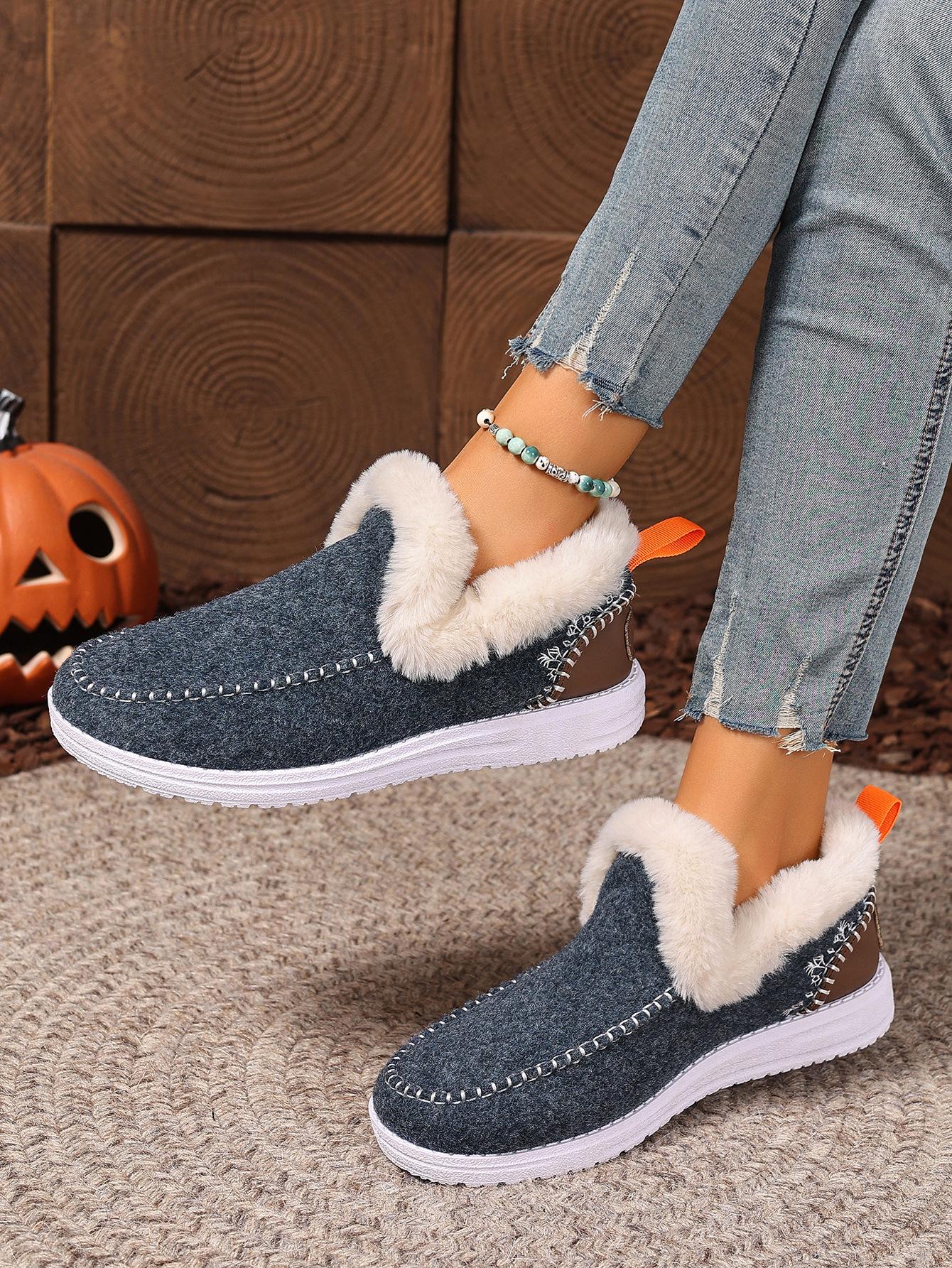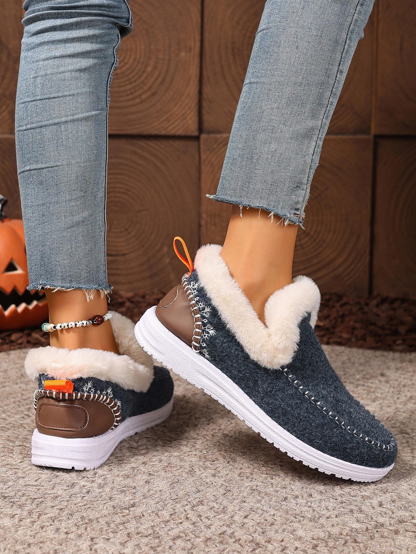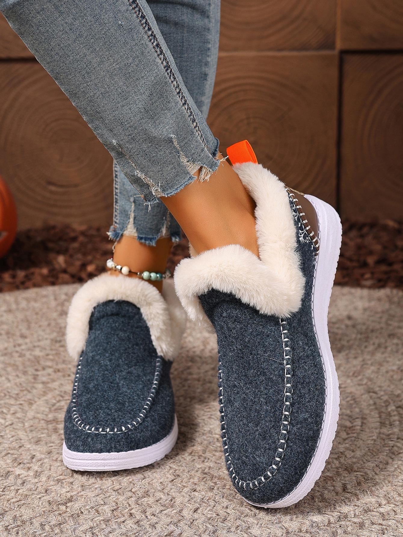 2025 Nuevos Zapatos de Algodón de Invierno para Mujer para Exportación Transfronteriza con Forro Polar Engrosado de Borde Crudo Cálidos Planos Slip-On Zapatos de Algodón para Mujer