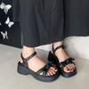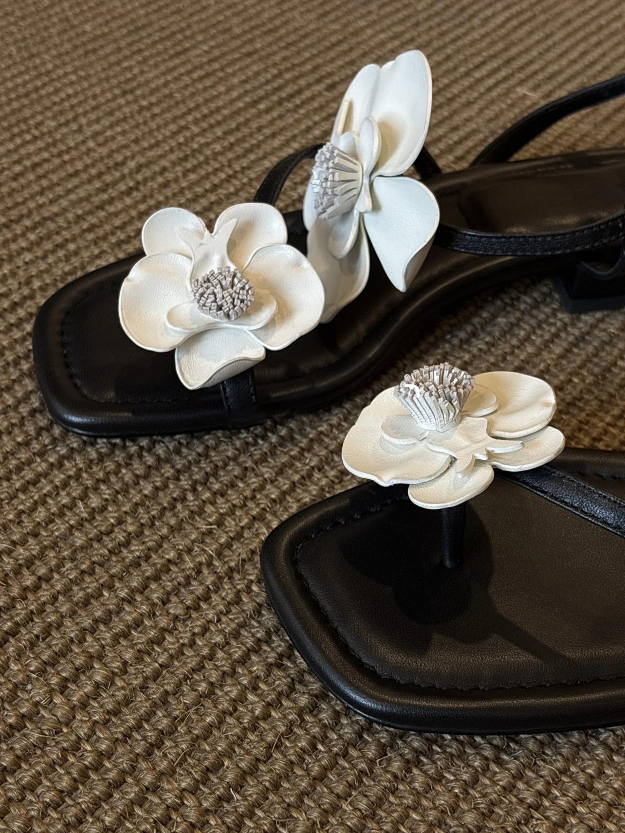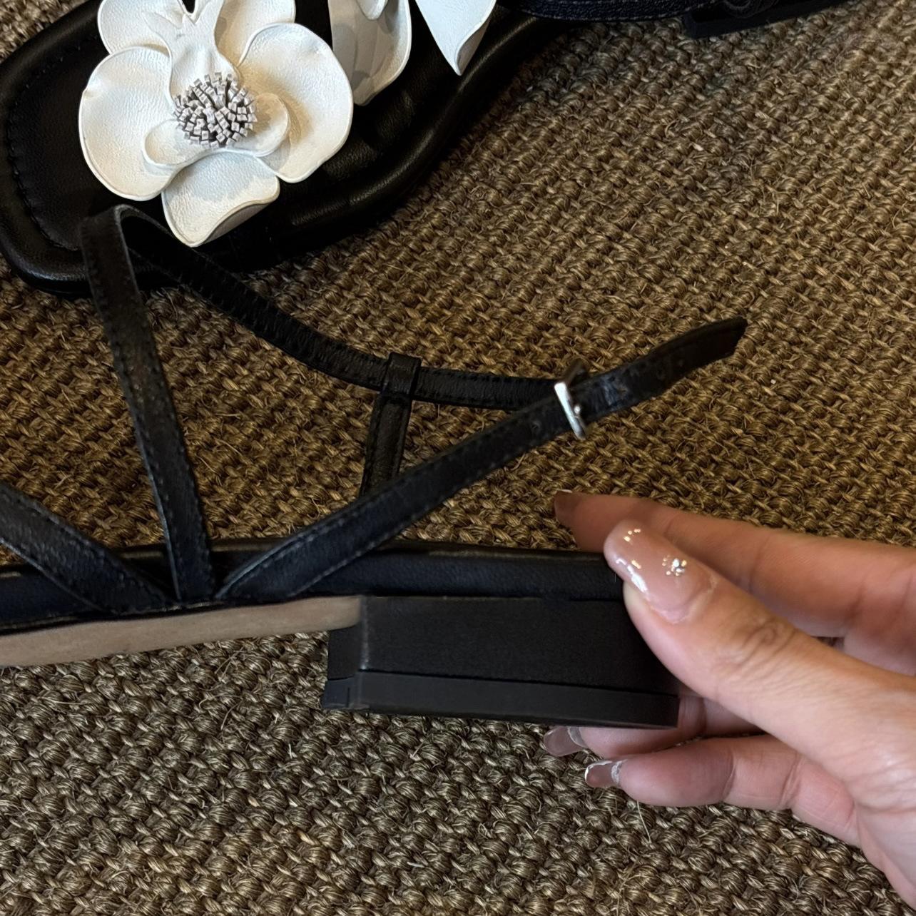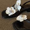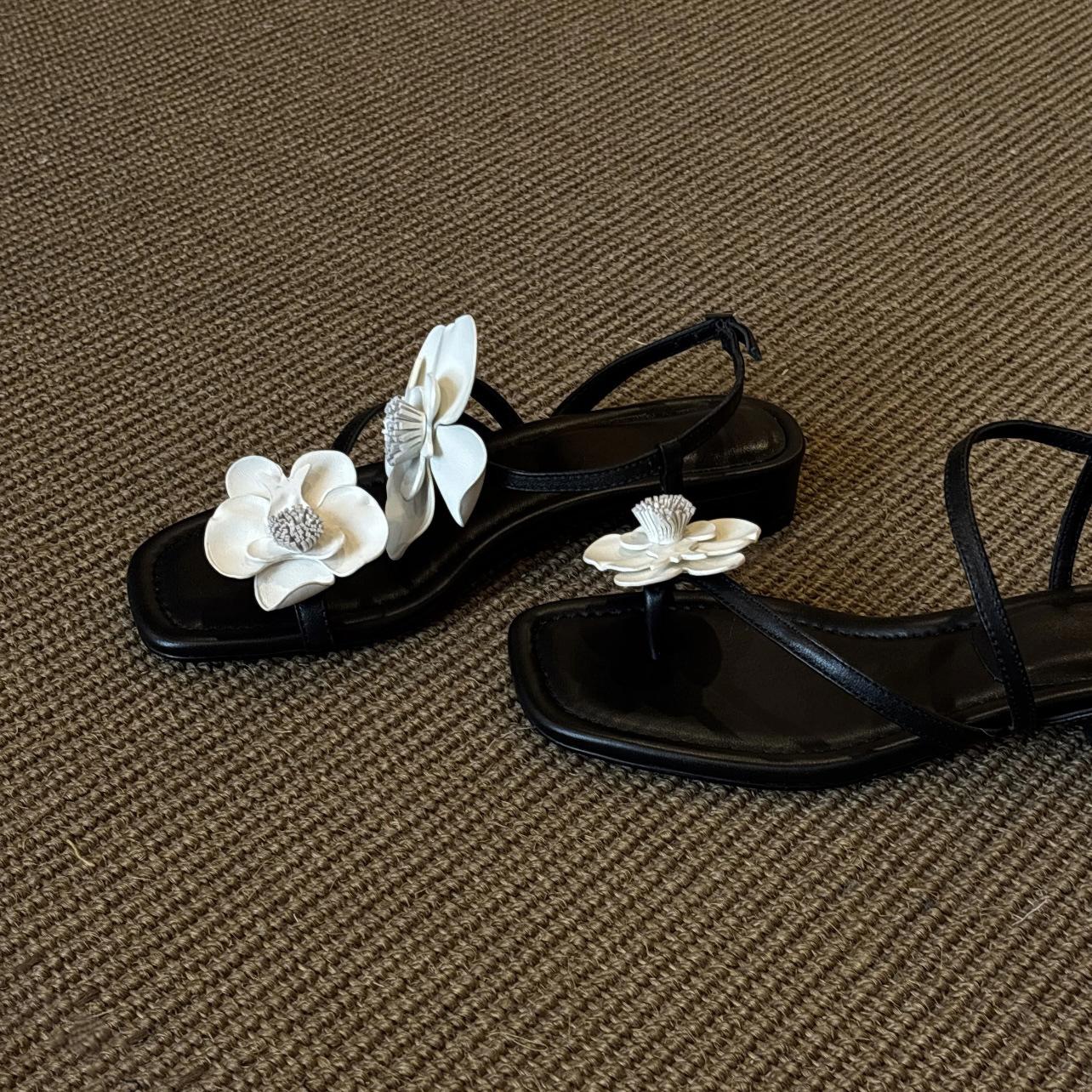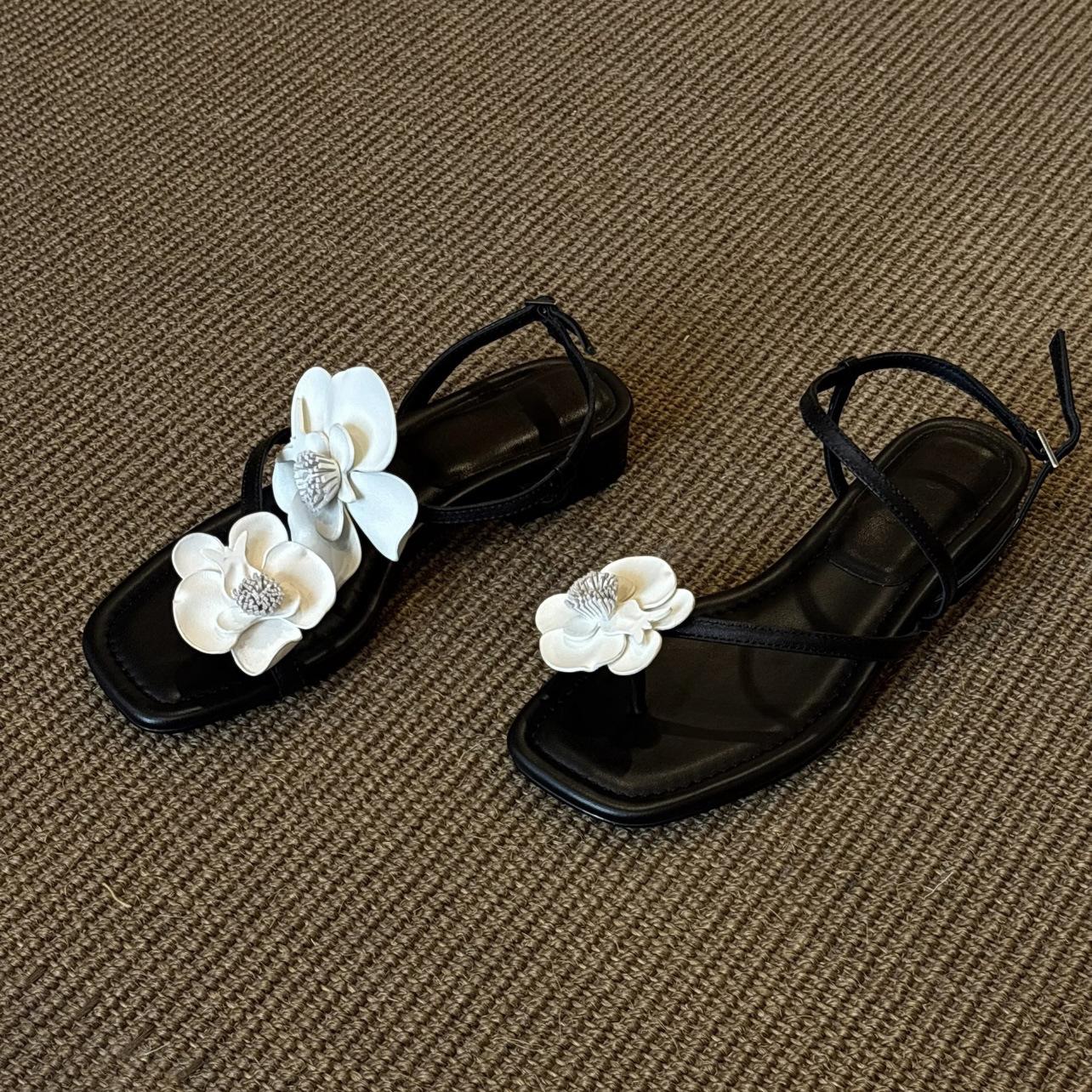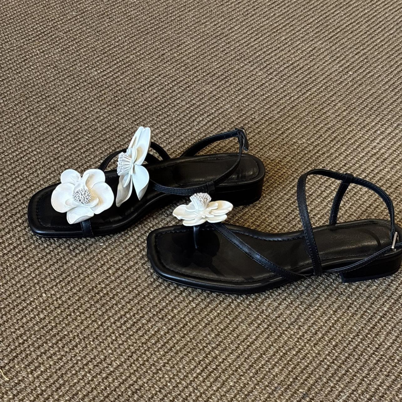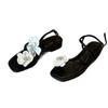 Verano Nuevo Estilo Estilo Fragante Punta Abierta Cabeza Cuadrada Hebilla Camelia Sandalias Sandalias Planas de Mujer
