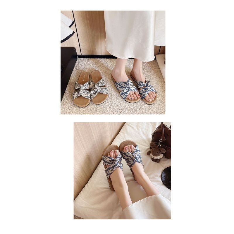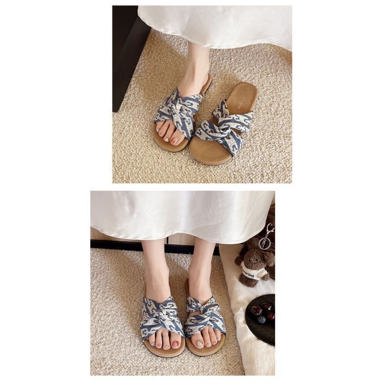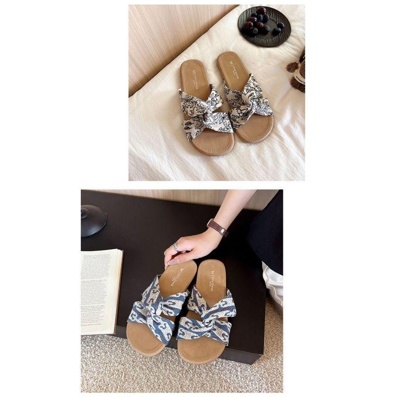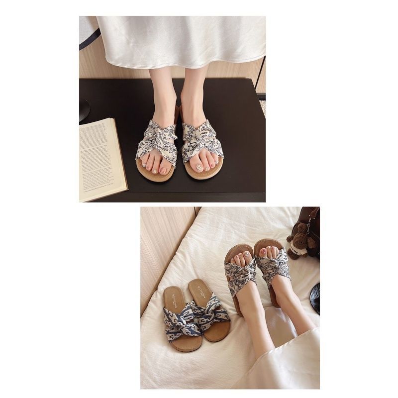 Sandalias planas francesas de una tira cruzada para mujer 2025 nuevo verano estilo hada combinar falda pantuflas de playa