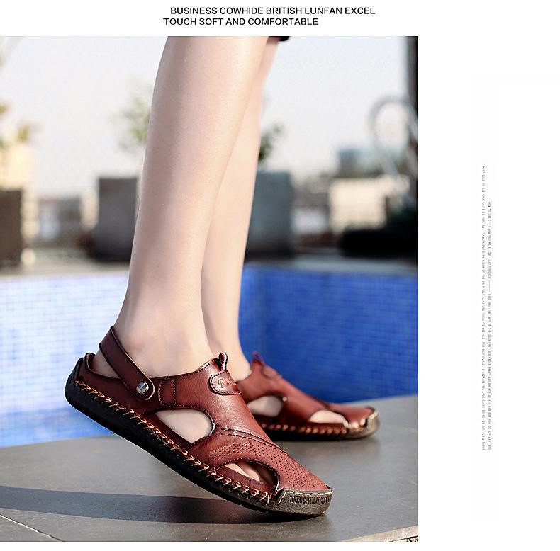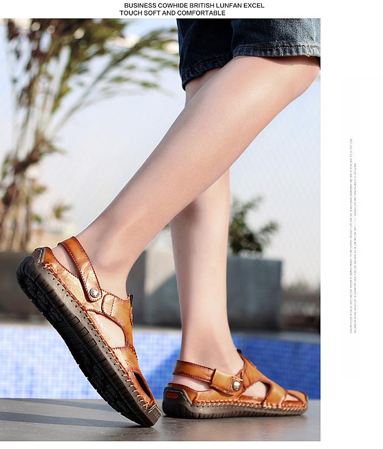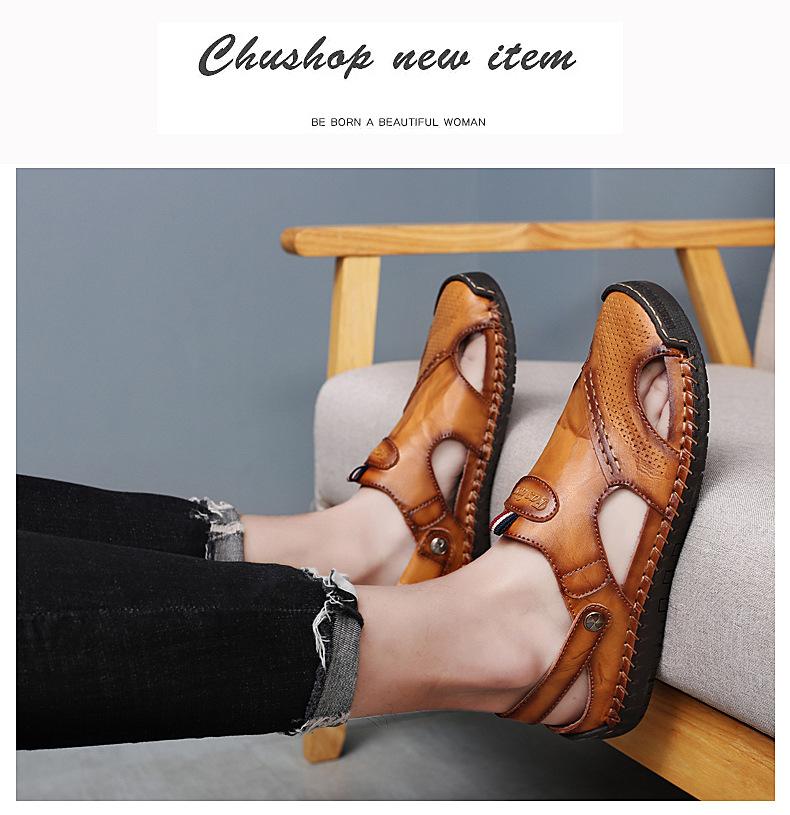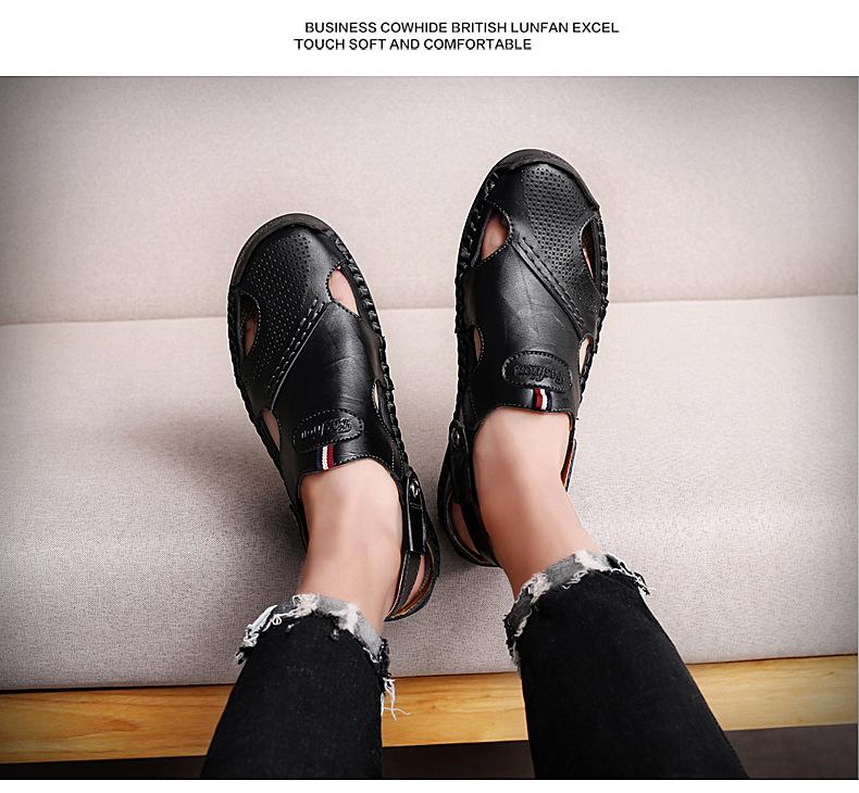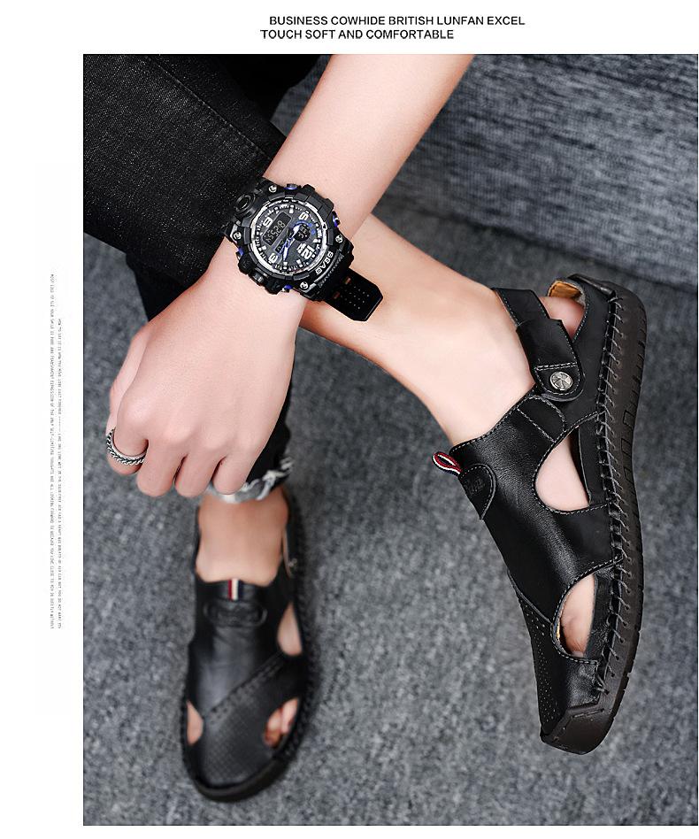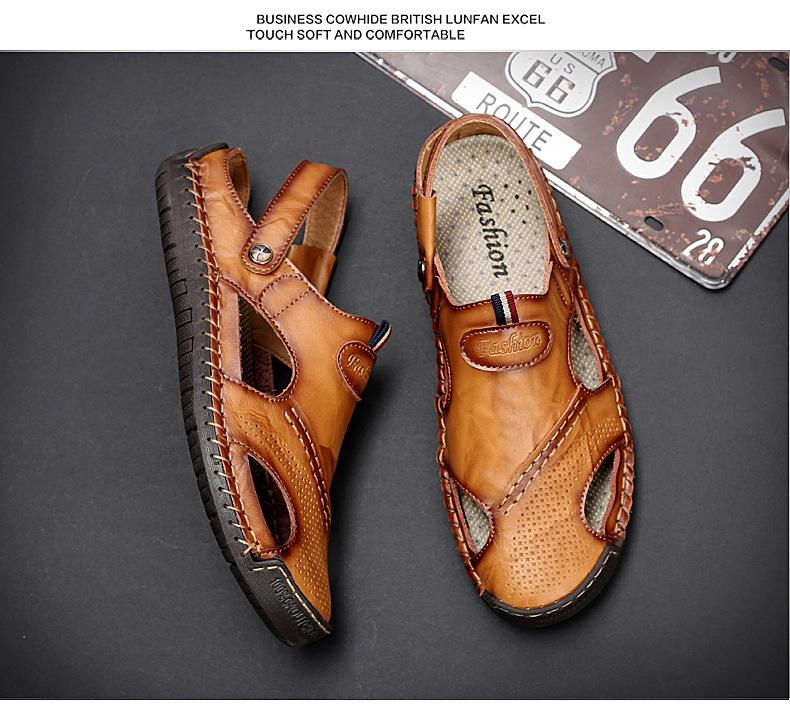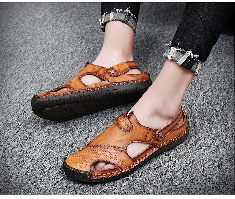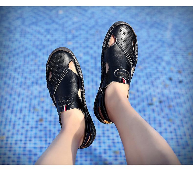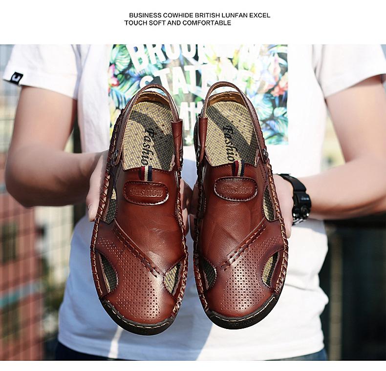 Compra Sandalias de verano para hombre de piel genuina, suela suave, antideslizantes, zapatos de playa 2023 Nuevo talla grande casual moderno sandalias para exteriores al por mayor en Joom.pro