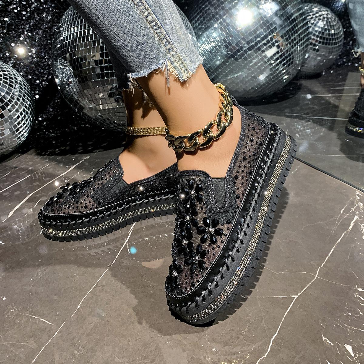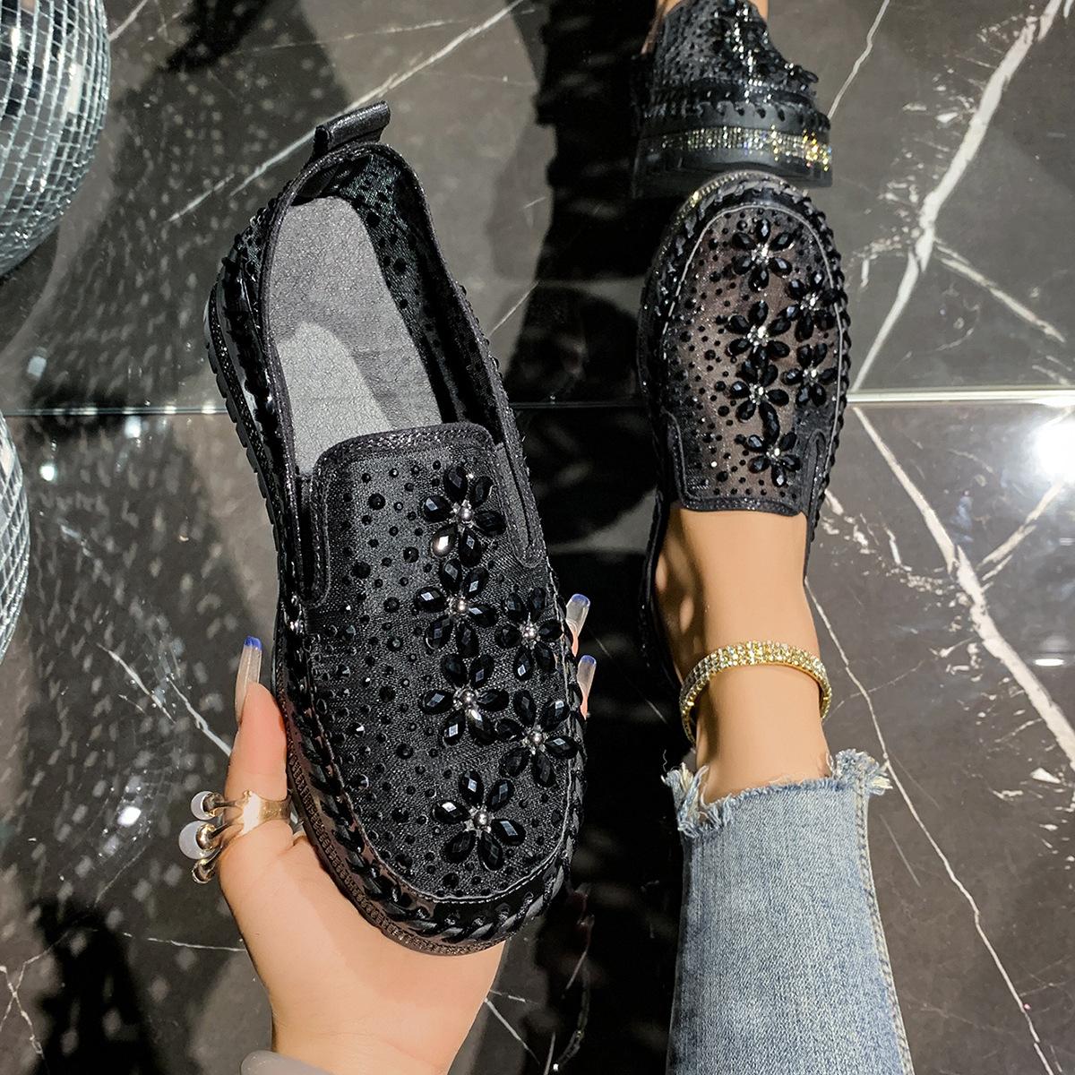 Mocasines de Corte Bajo de Talla Grande Verano Nuevo Malla Transpirable Plano Casual Versátil Slip-On Zapatos Perezosos